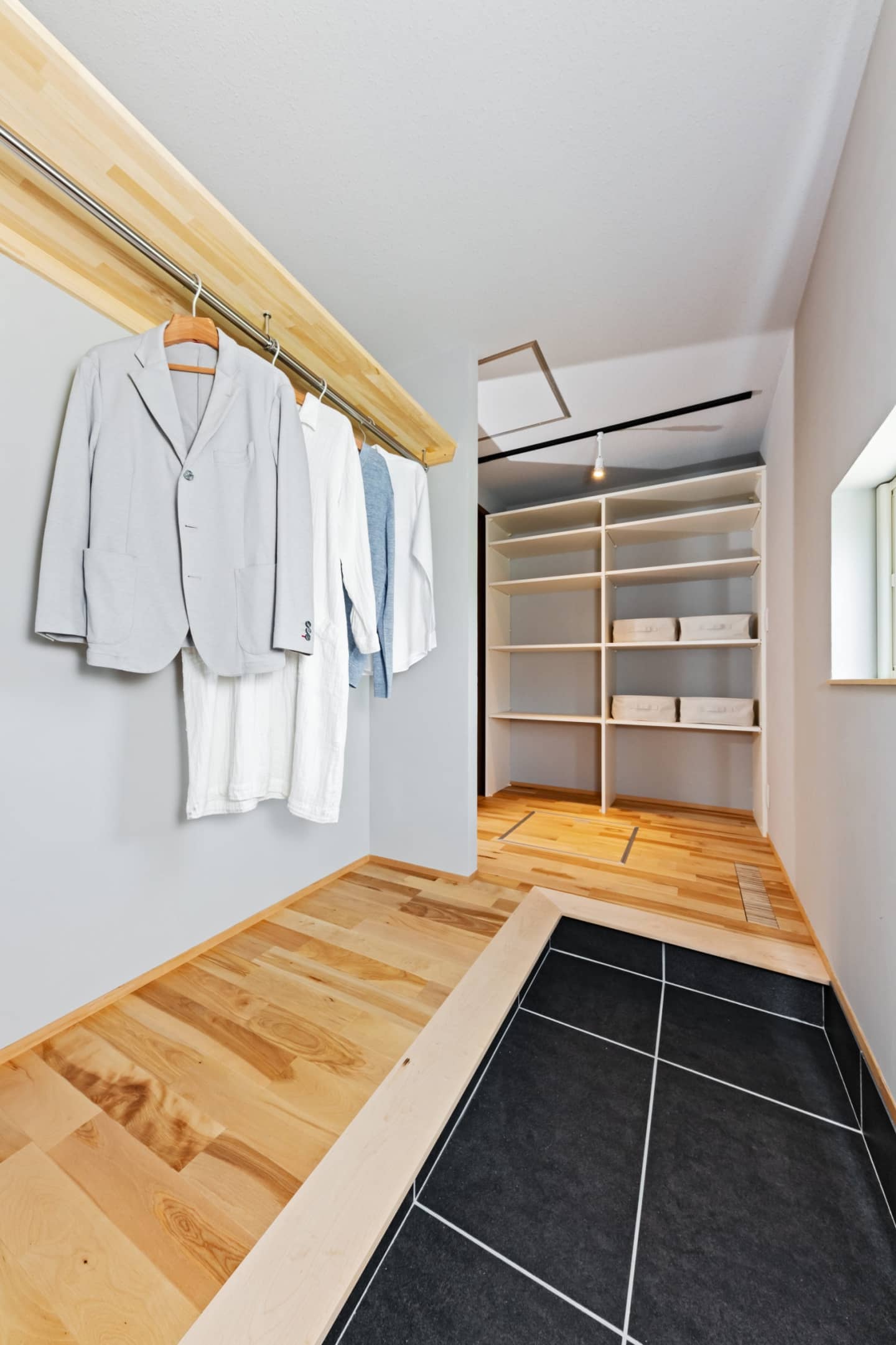また、階段下を利用したクローゼットのたたみ台は洗濯物をアイロンがけ、畳んですぐにしまうことができます。