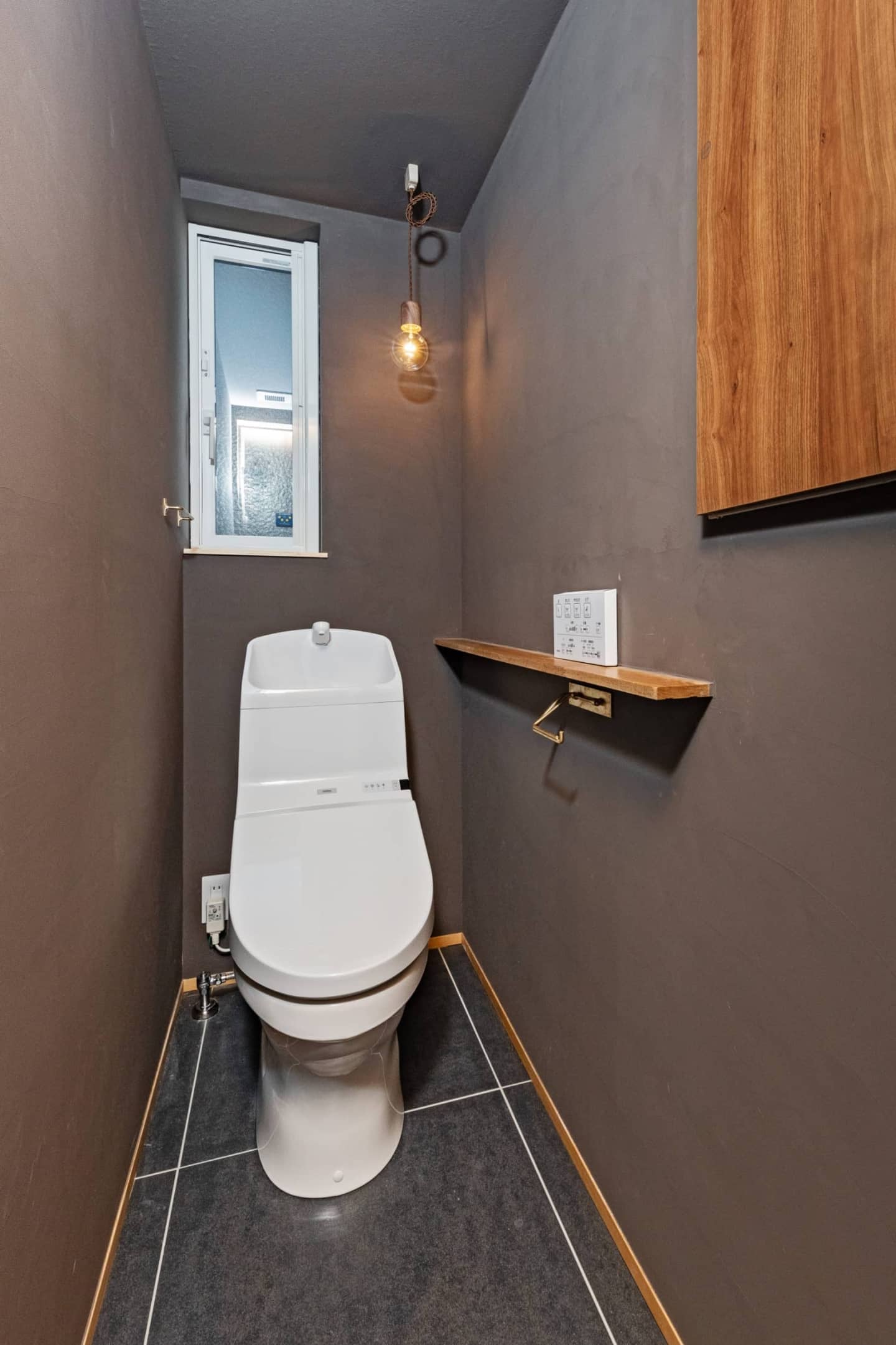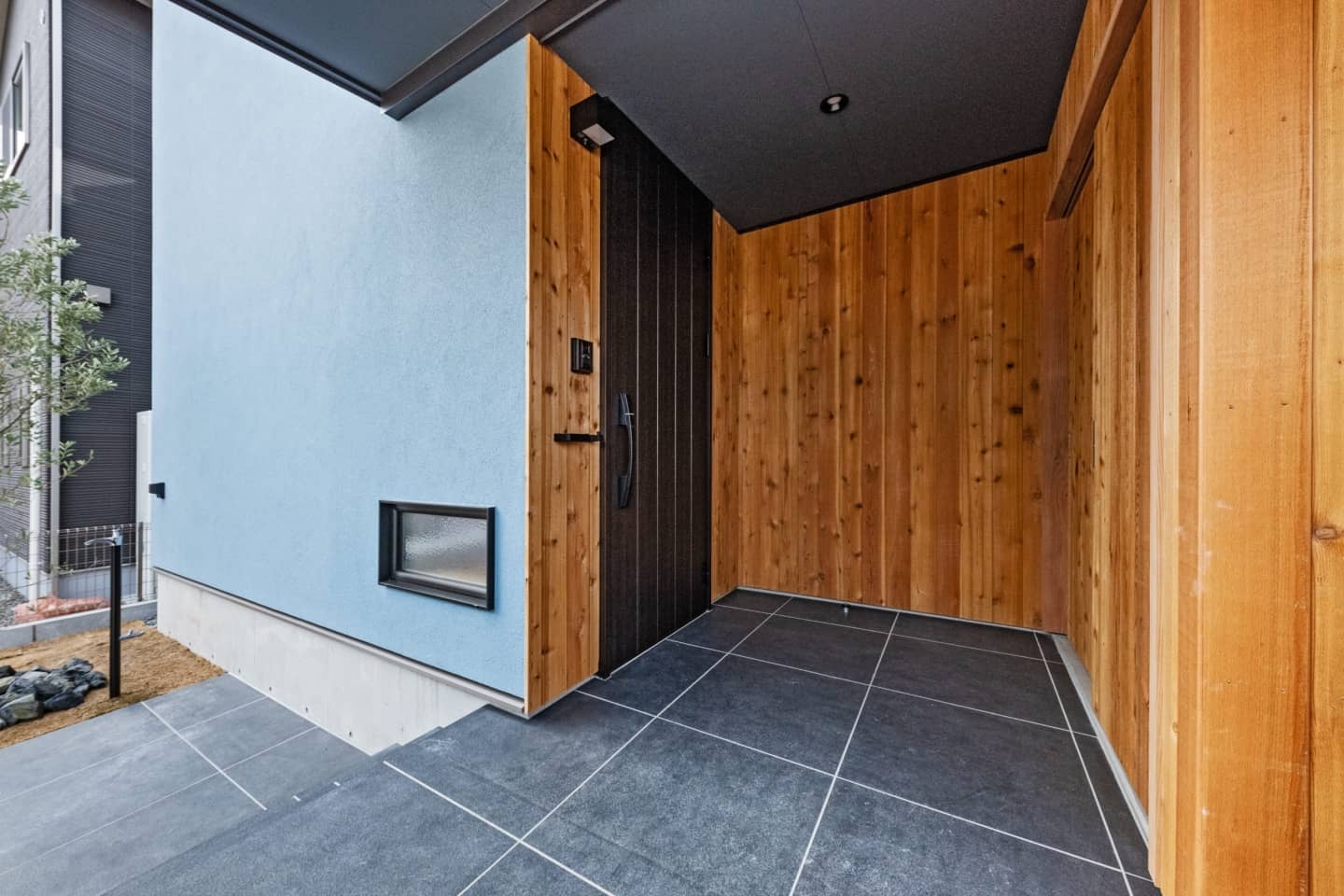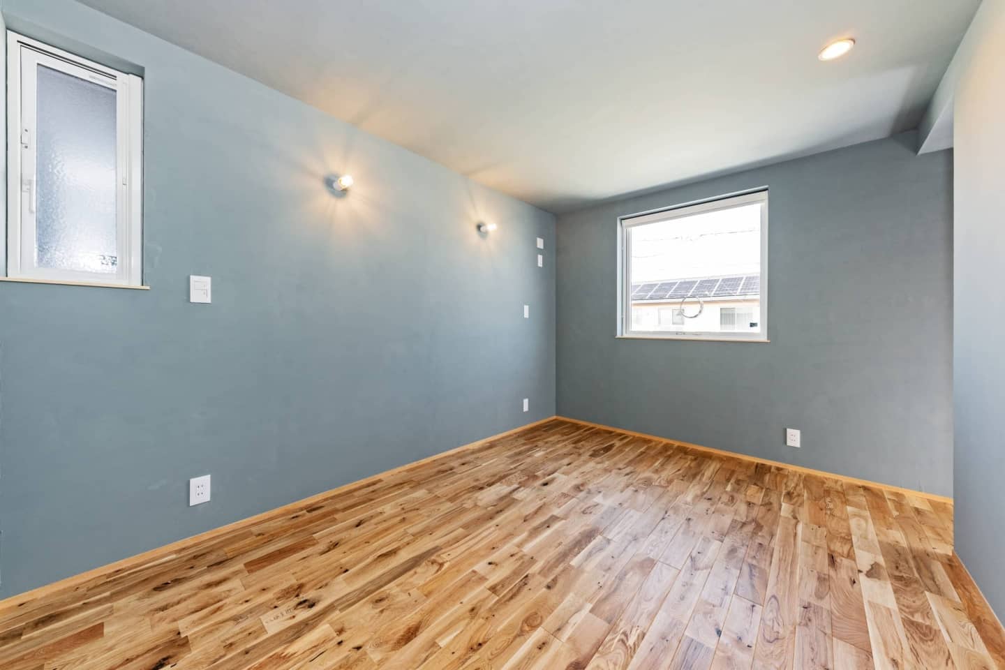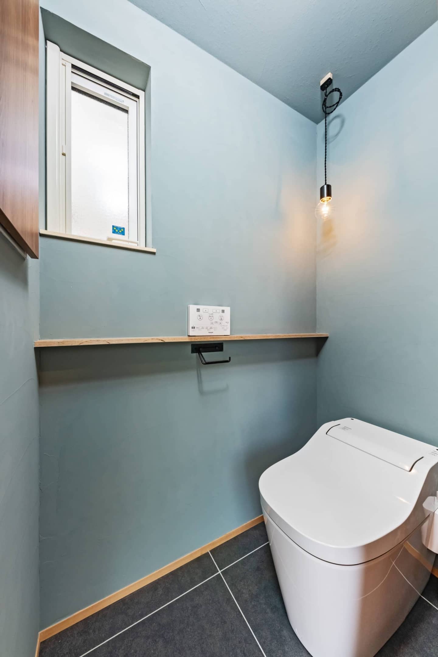 ブルーを基調としたシンプルな外観同様、屋内はグレーを基調としたシンプルな仕上がりで、こだわりの造作キッチンをLDKに配置。
