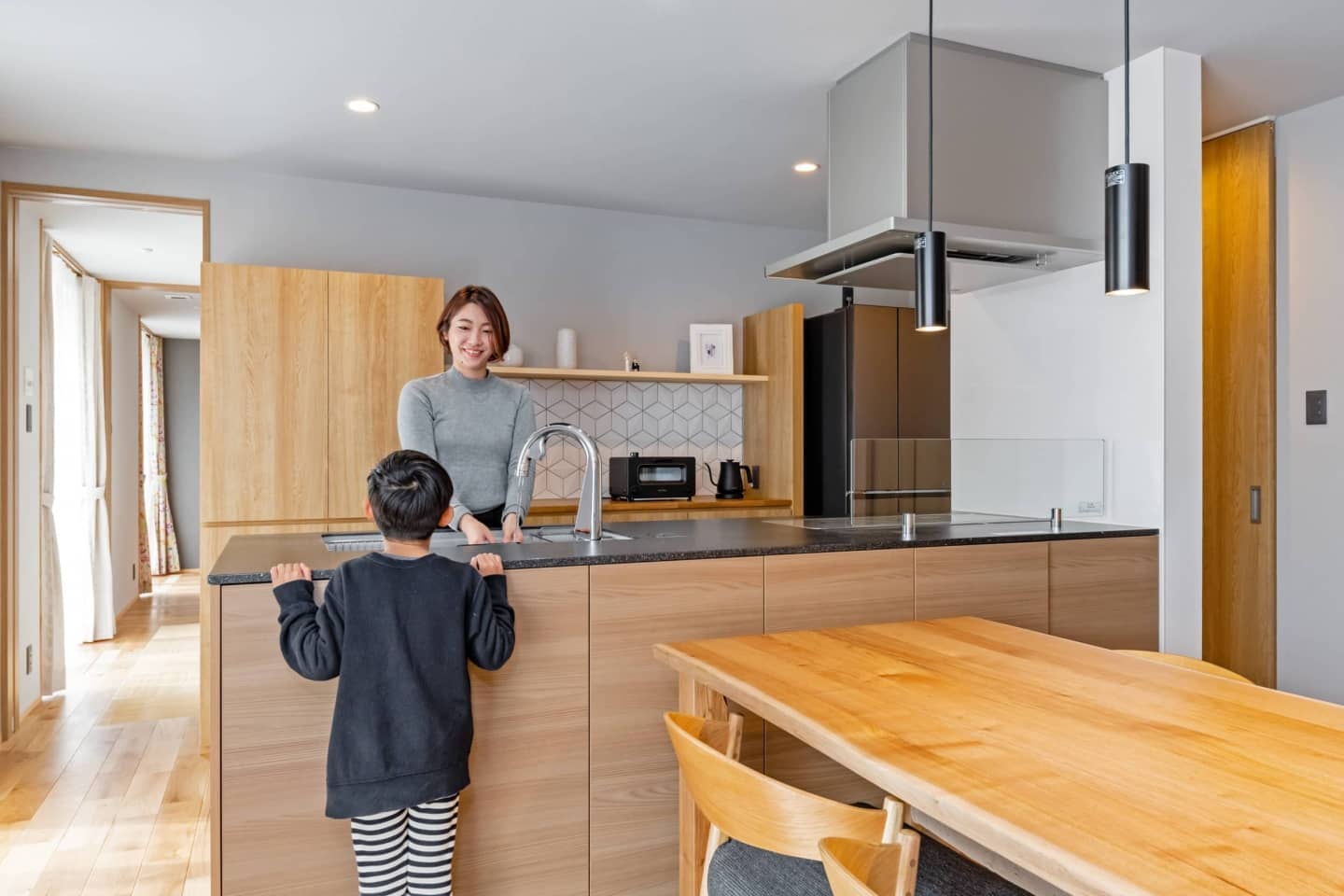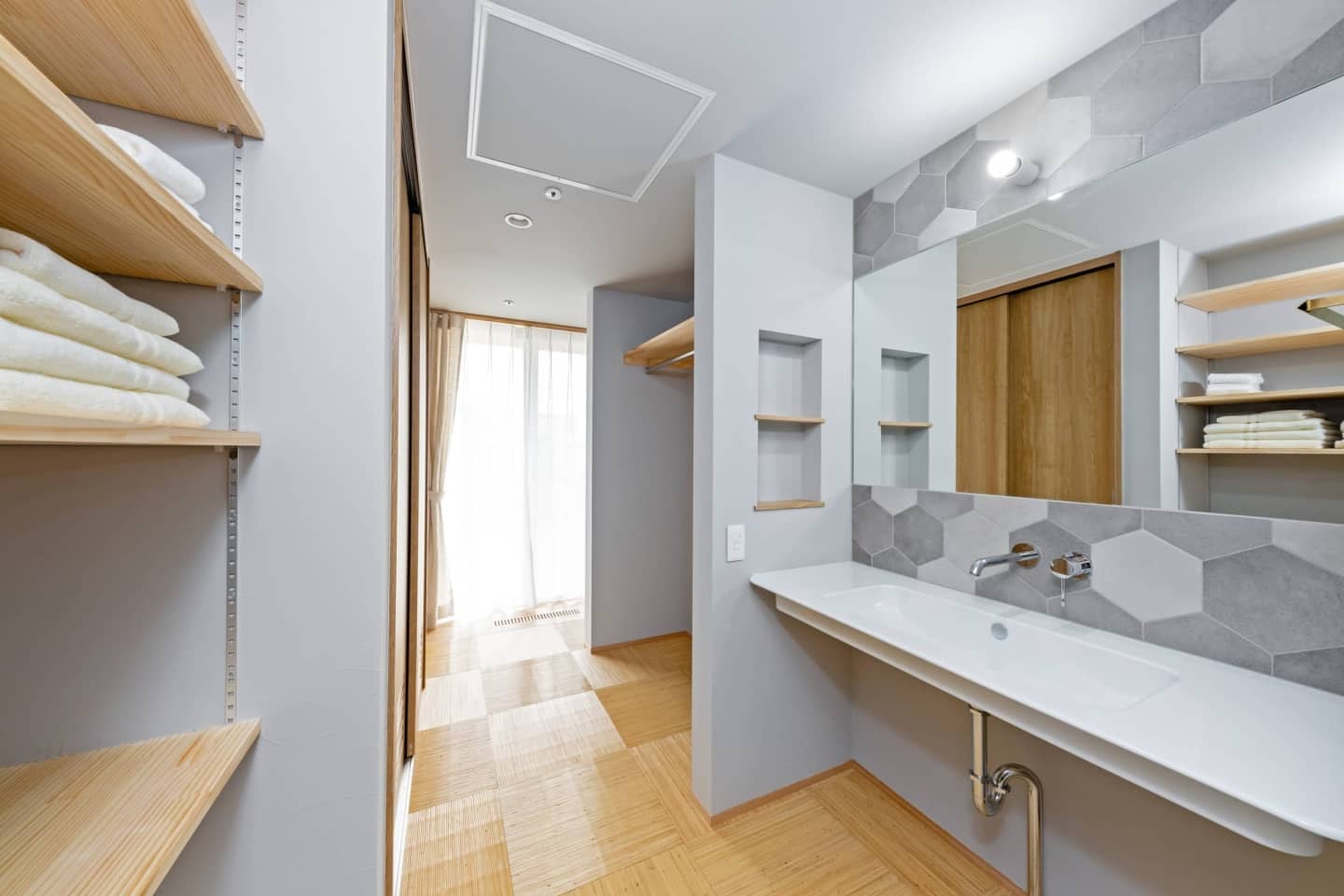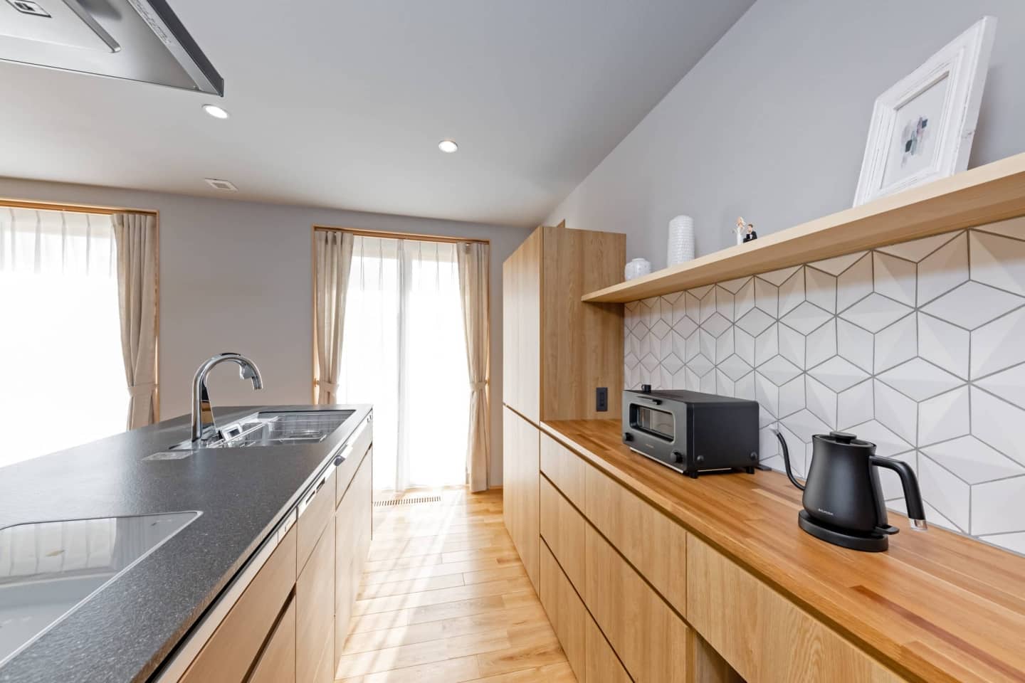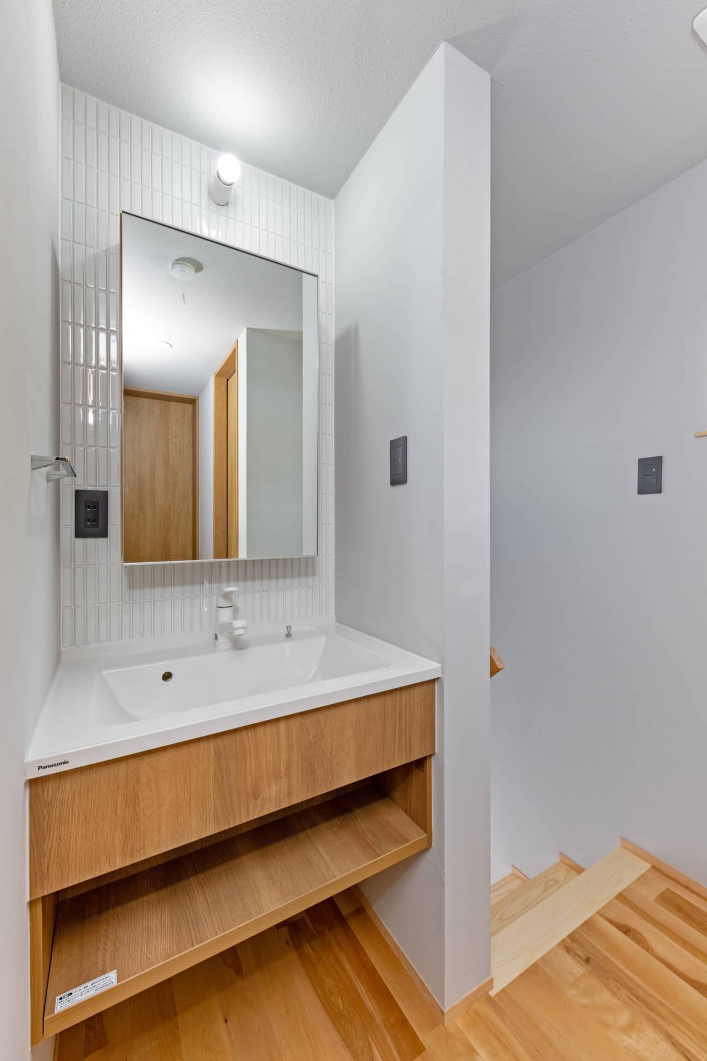 また、洗面台やキッチンの壁はこだわりのおしゃれなタイルで飾っています。