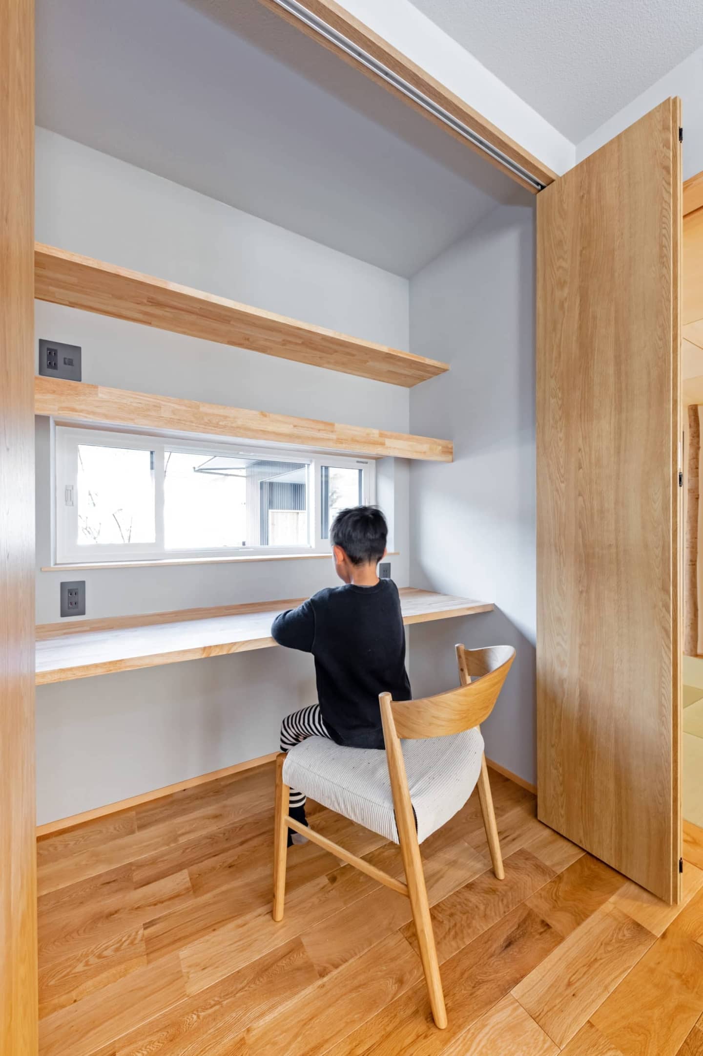 リビングにあるスタディコーナーは扉付きで、普段使用しない時は閉じておくことができます。