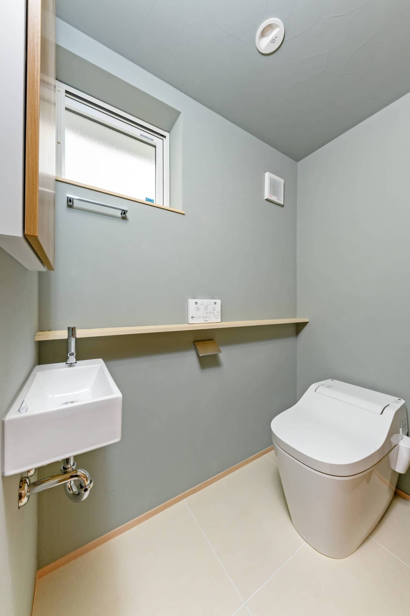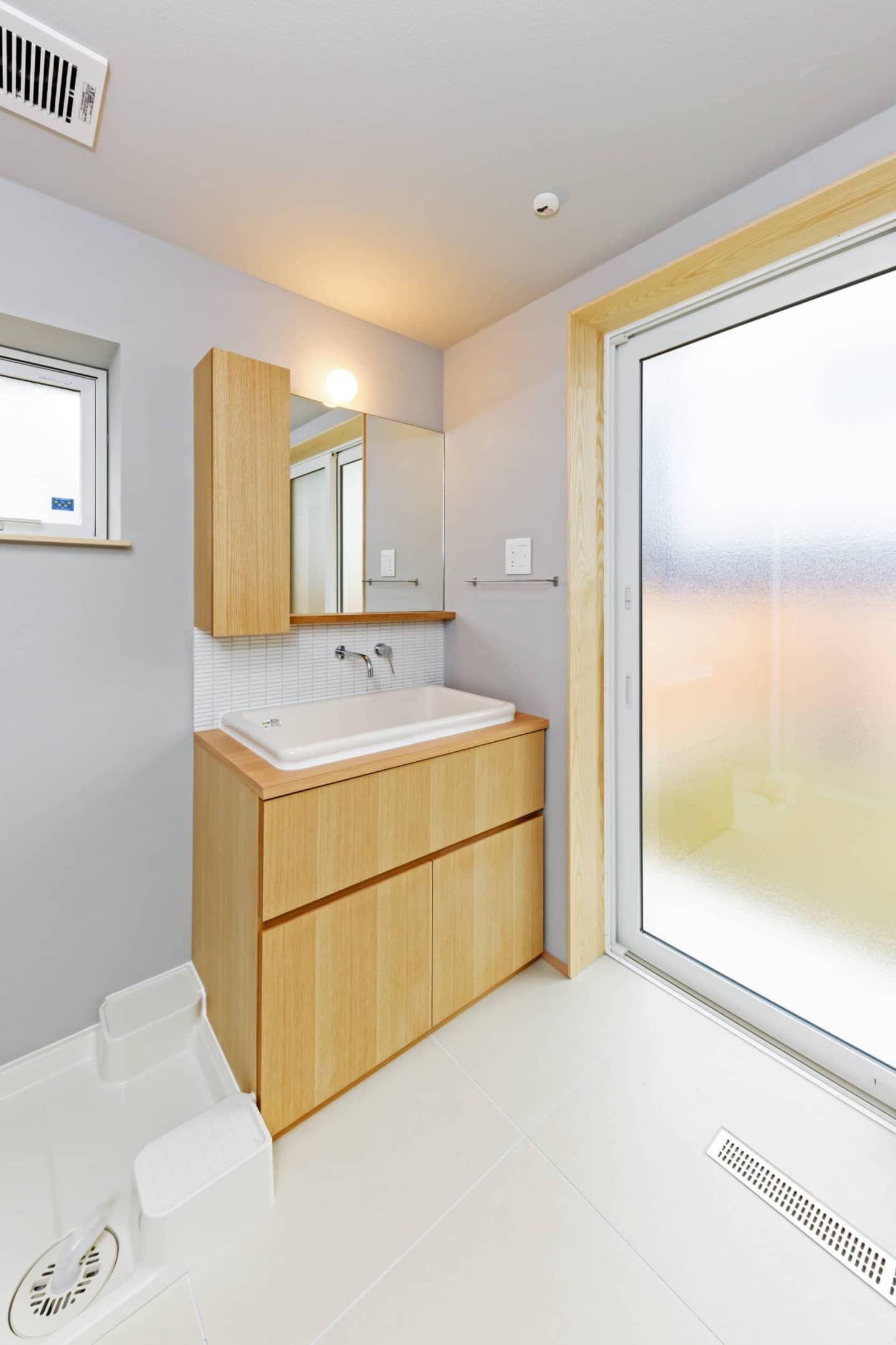室内の塗り壁はグレーで落ち着いた雰囲気になっています。UBは1.25坪とゆったり入ることができます。