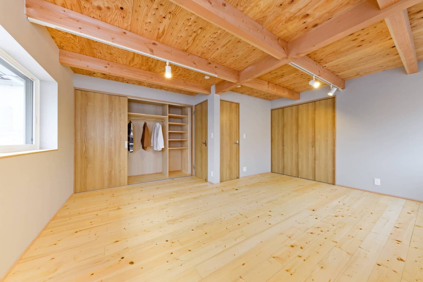2階は将来間仕切り予定の12.5帖スペースを今はそのまま広々使用します。