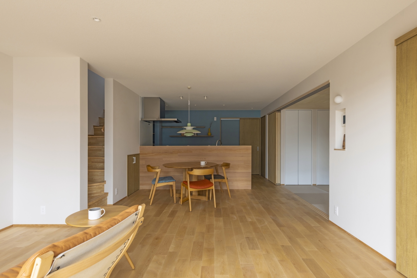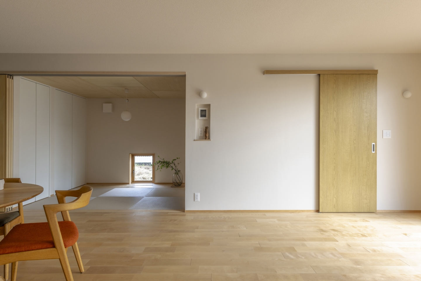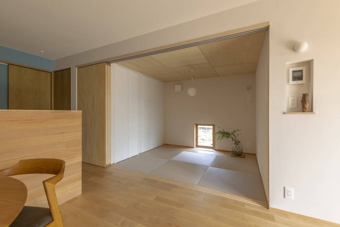 和室は客間や寝室としても利用できるように扉を付け、扉を開放するとLDKと一体となった広々とした空間になります。