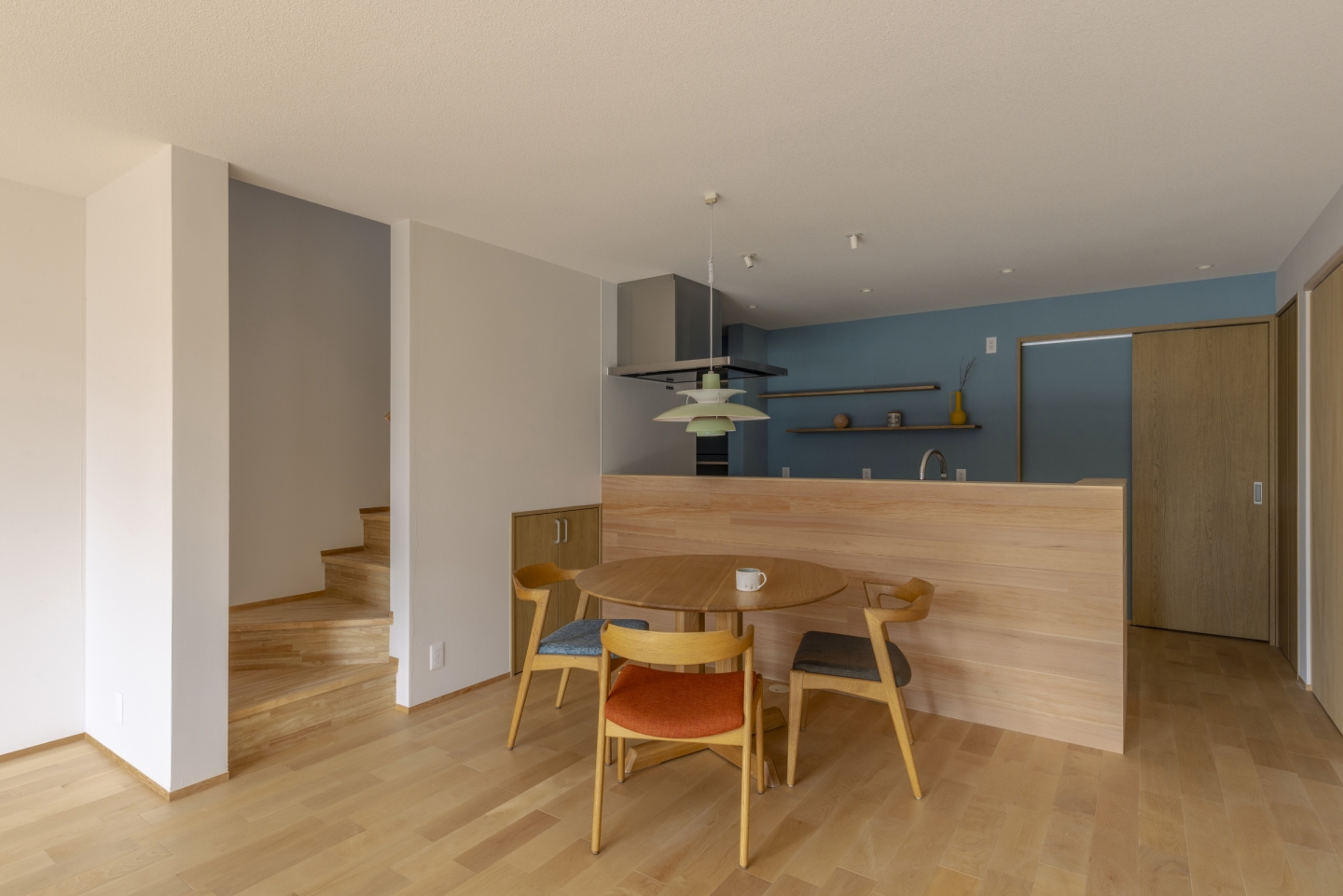 階段下にも収納や、こだわりのお酒を収納する木板パントリーを設け、デッドスペースも有効活用しました。