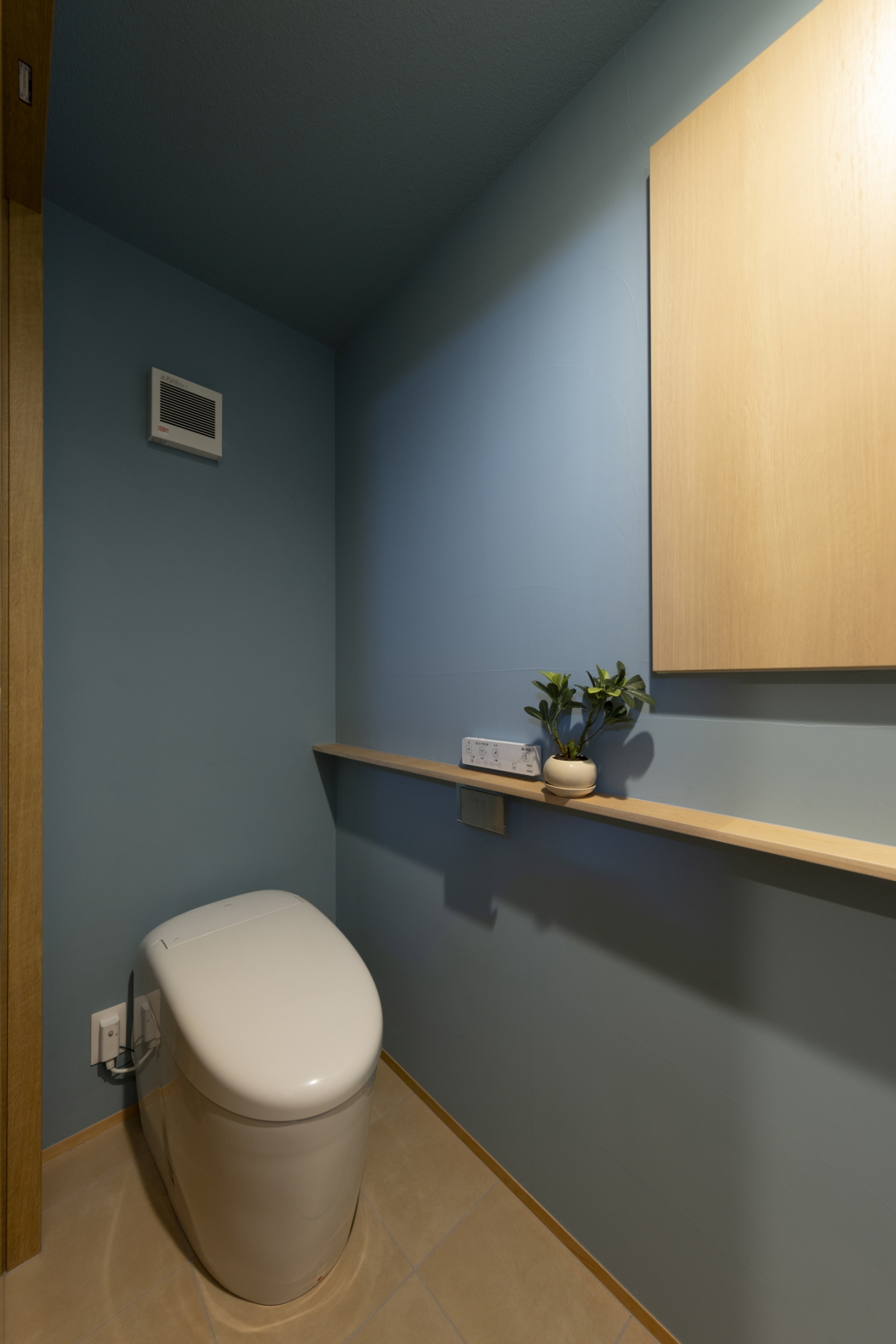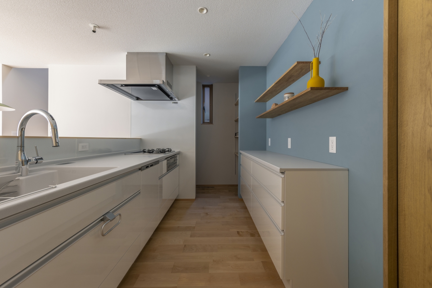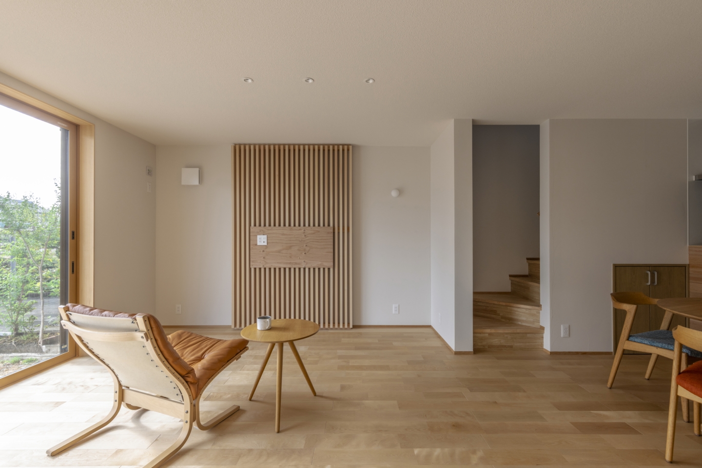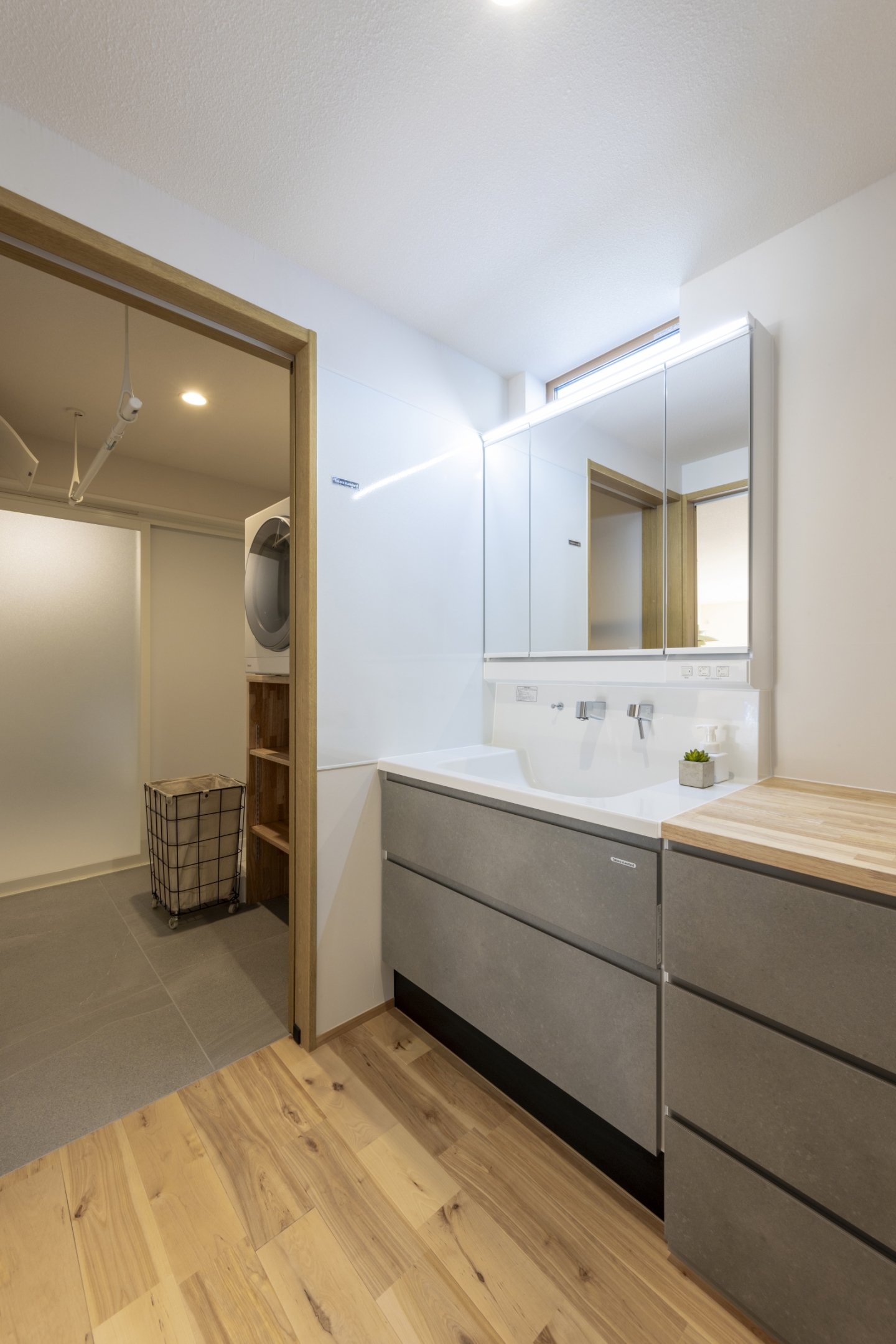 洗面室に隣接してウォークインクローゼットを設けたので、短い動線で楽に家事を行うことができます。来客時などはロールスクリーンを下すと目線を遮ることができます。