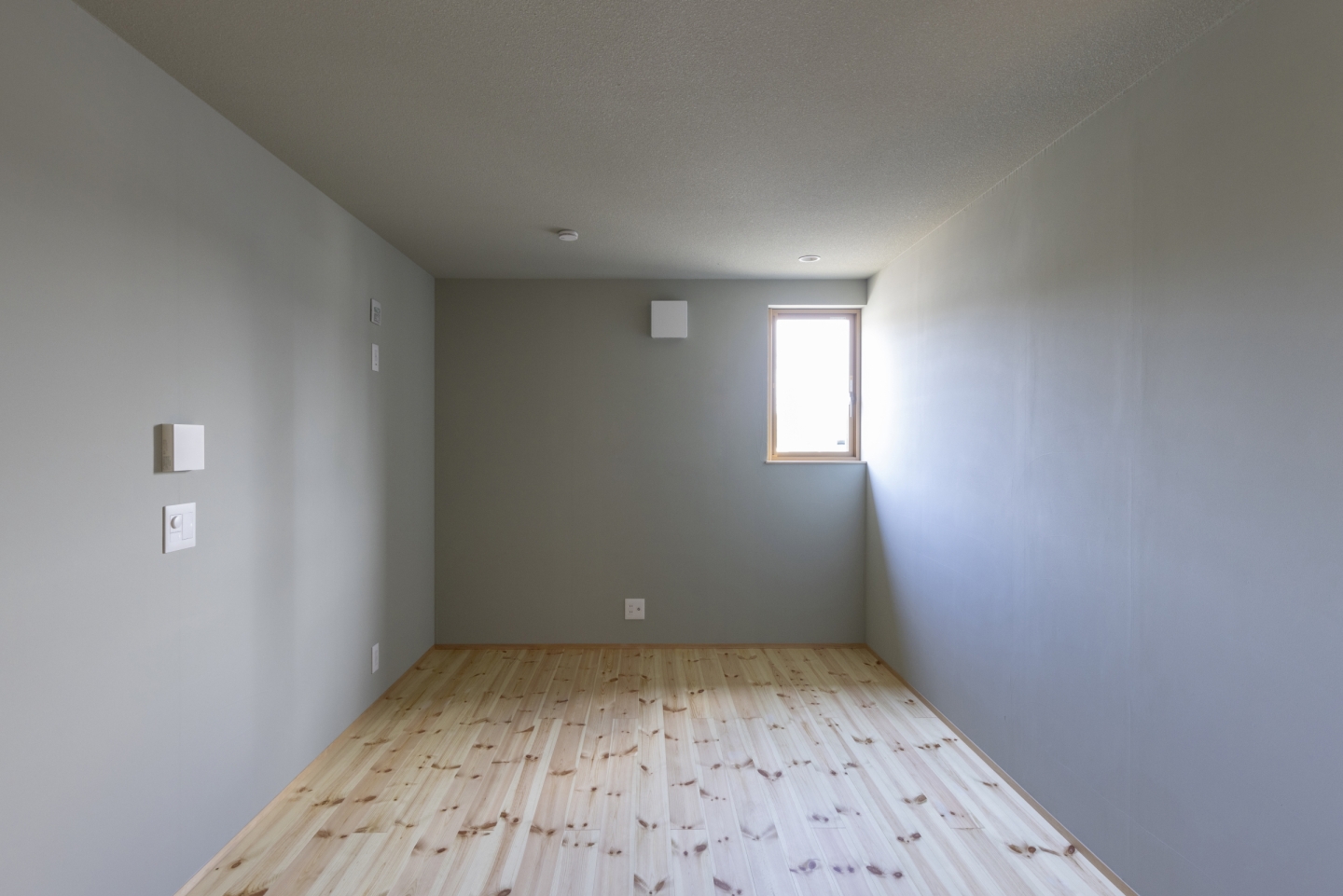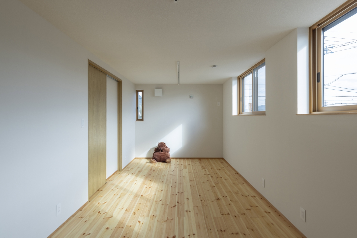 個室は広々とした約10帖のワンルームなので家族全員で寝ることができる寝室にもなり、将来お部屋を間仕切ることもできる臨機応変な個室計画としました。