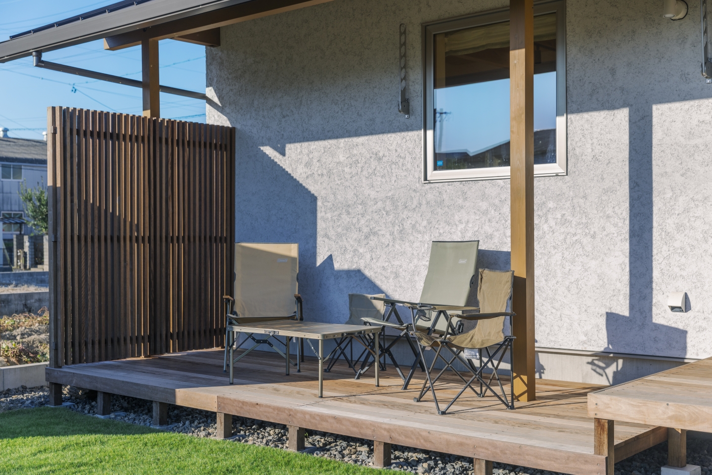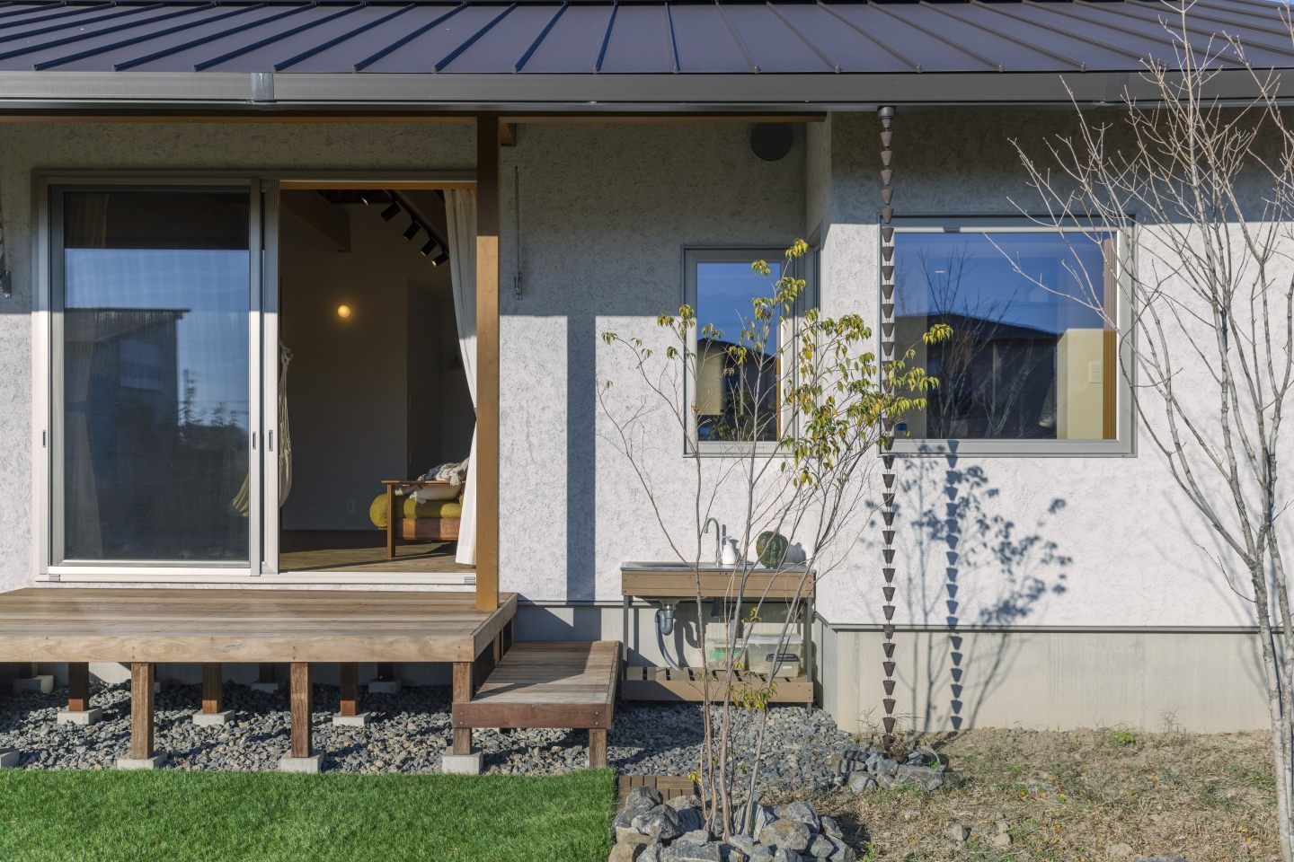 軒下空間を大きく確保したので、日差しが強い日や雨の日にも外での活動ができます。