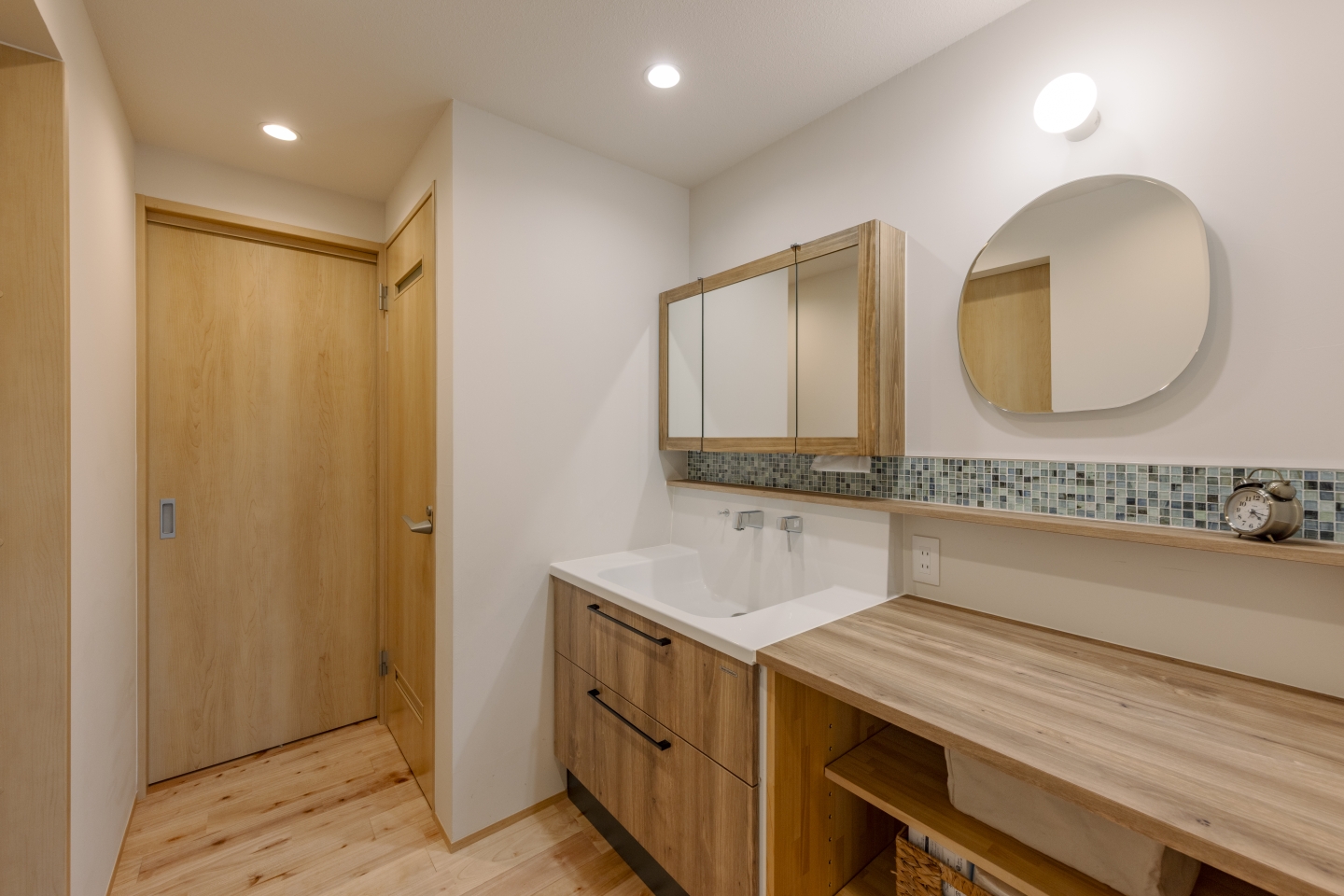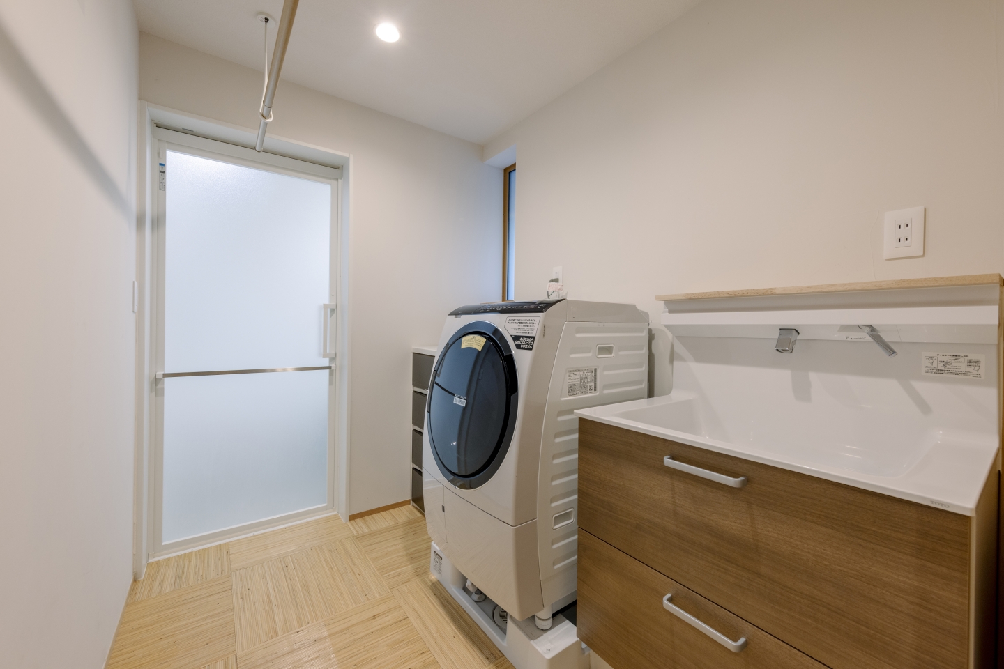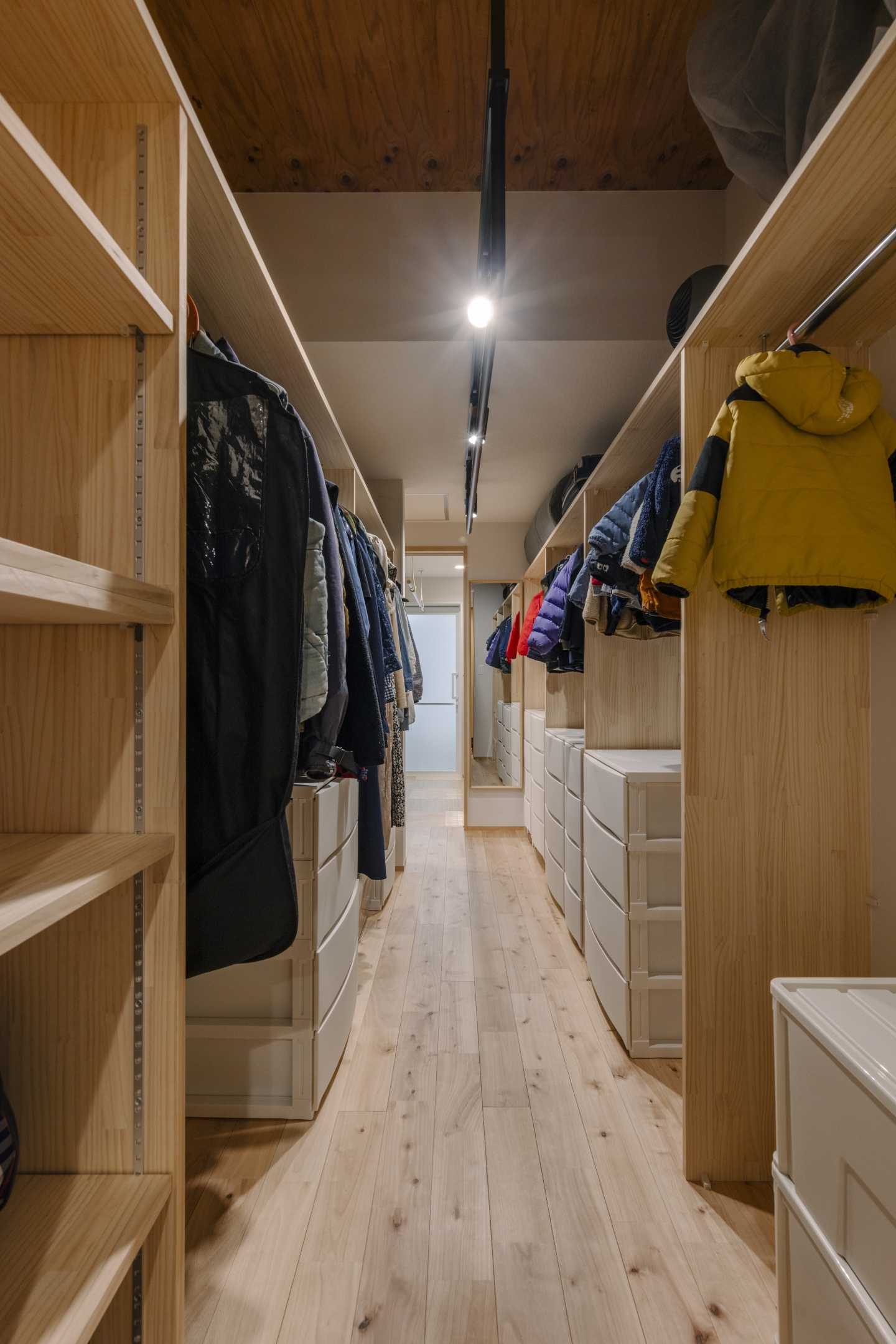 玄関に隣接して設けた大きなファミリーロッカーは、ご家族の服や小物を一か所にまとめておくことができ、朝の準備や片付けにも便利なお部屋になっています。