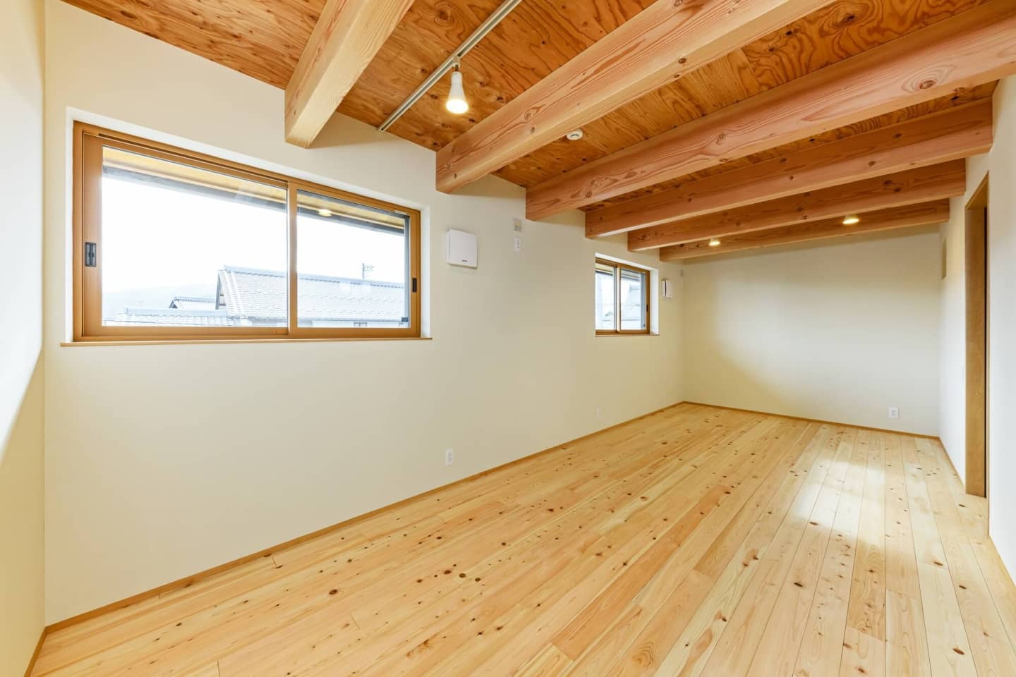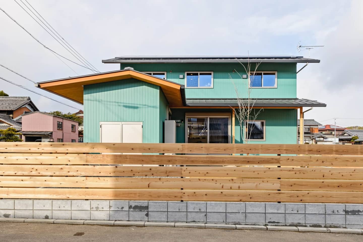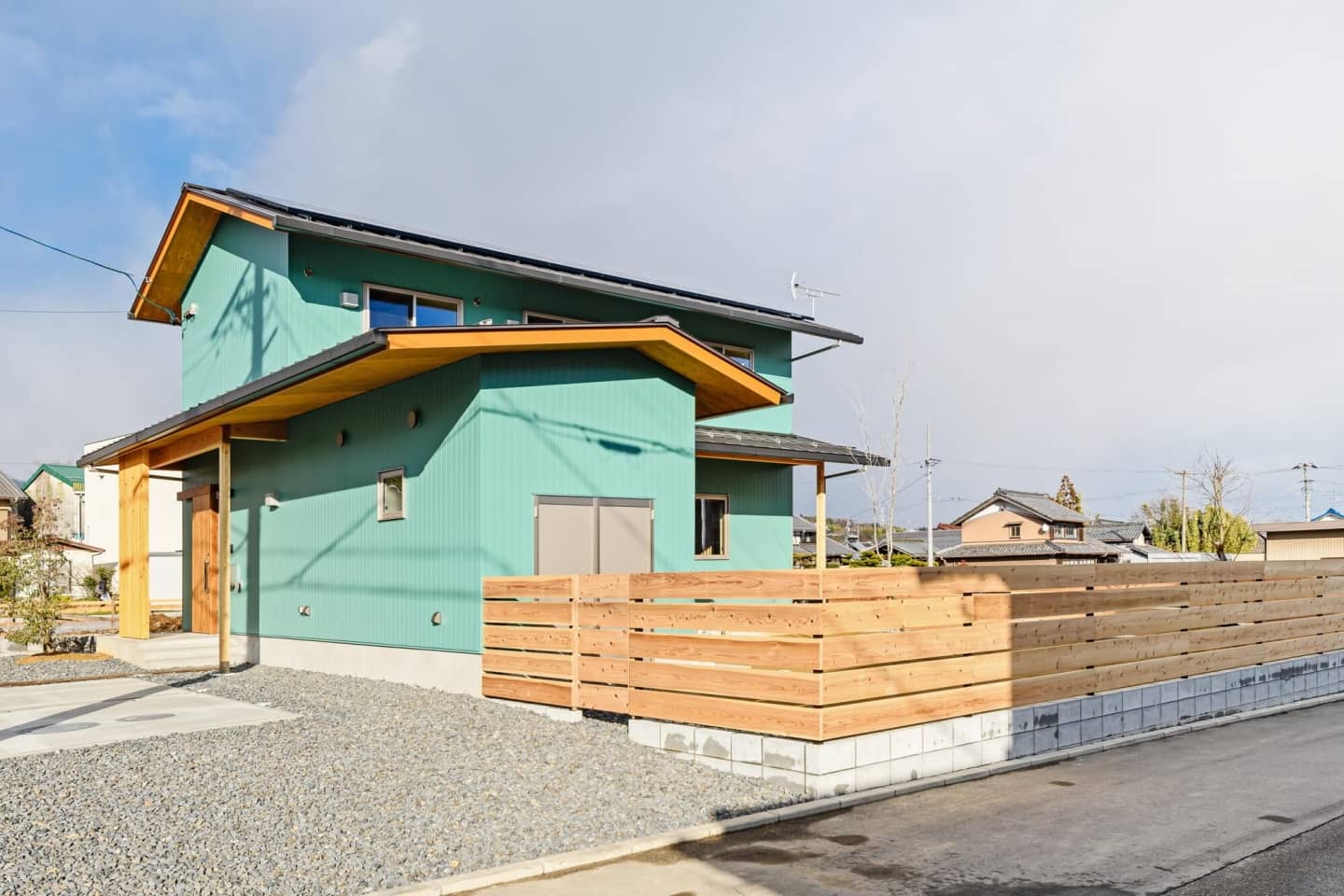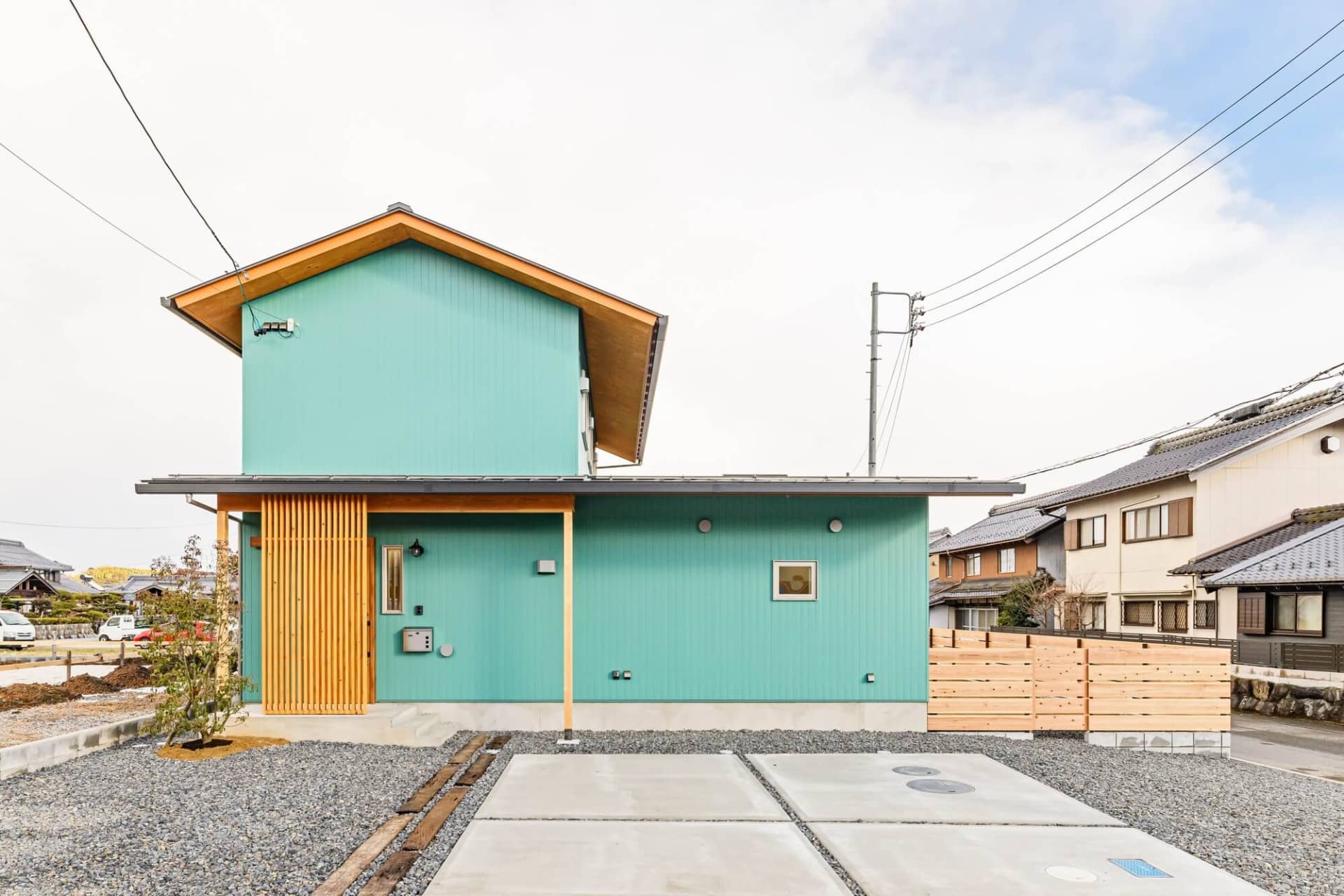 LDKの南面は屋根付きで、夏の日射をカット。パッシブ設計になっています。