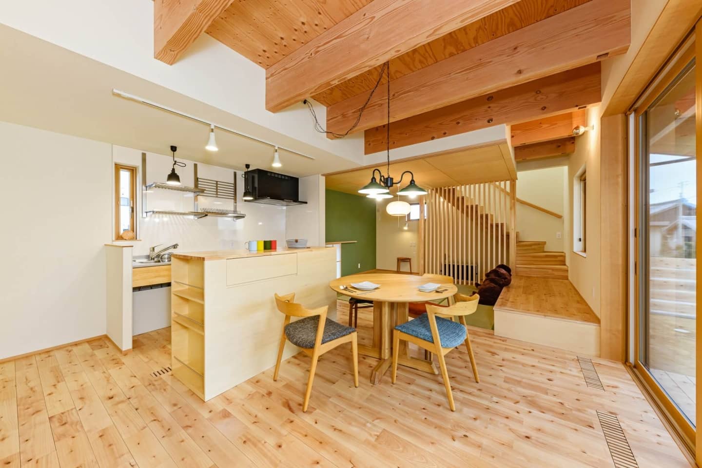 玄関からLDKへは入り口を2ヵ所設置し、動線を増やして動きやすくしました。