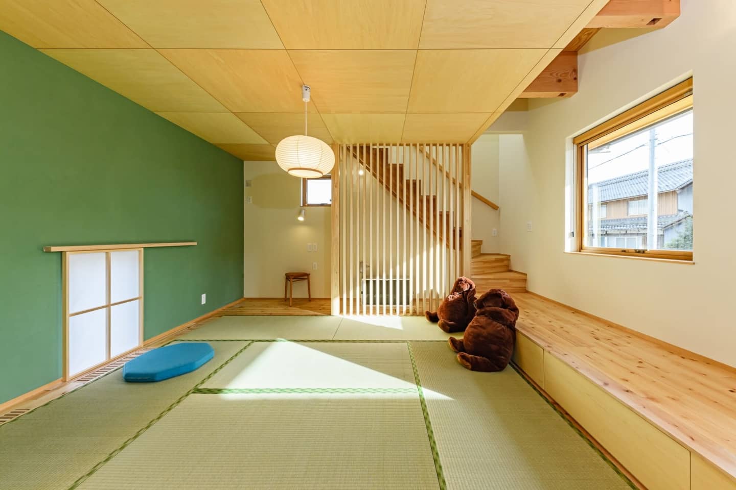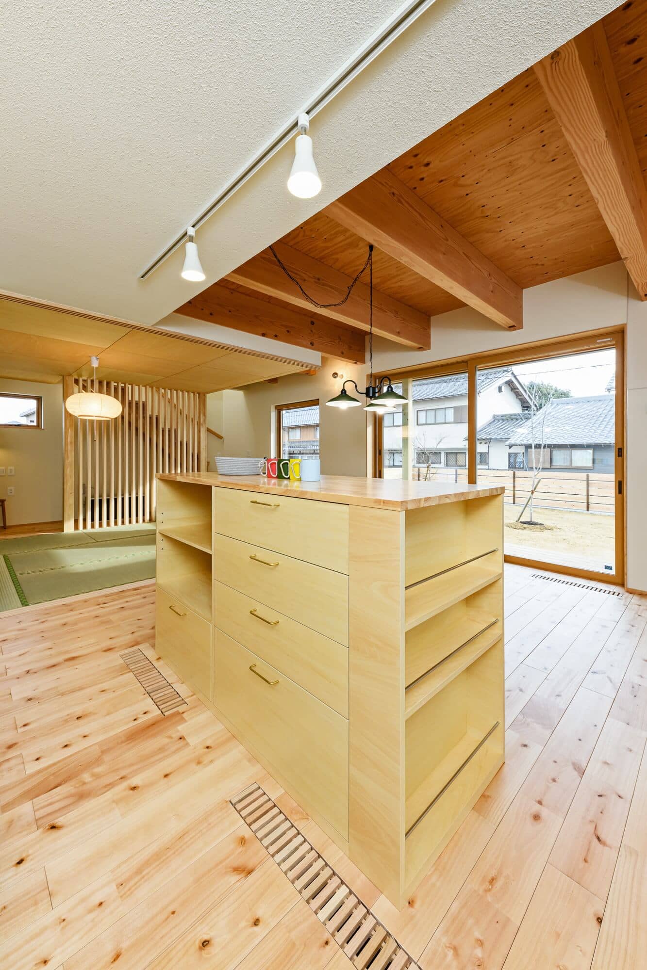 リビングはごろごろできる畳リビング。書斎や小上がりで居場所も確保しました。