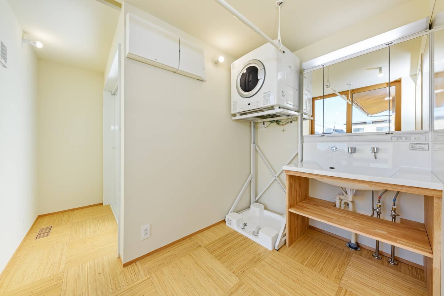 洗面脱衣室は洗濯・片付けが楽な配置。乾太くんもついています。