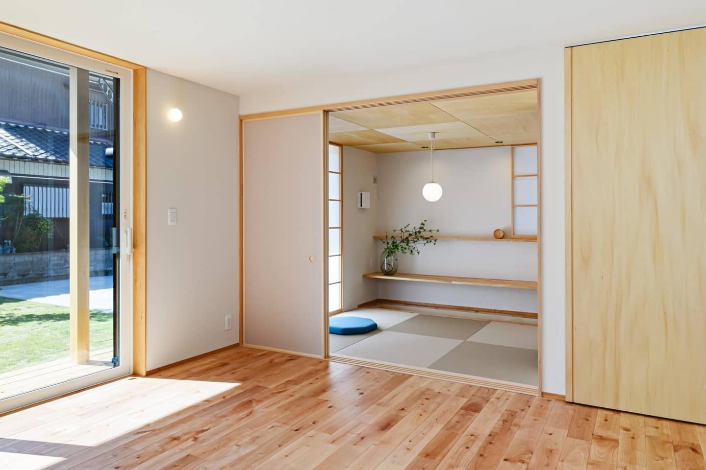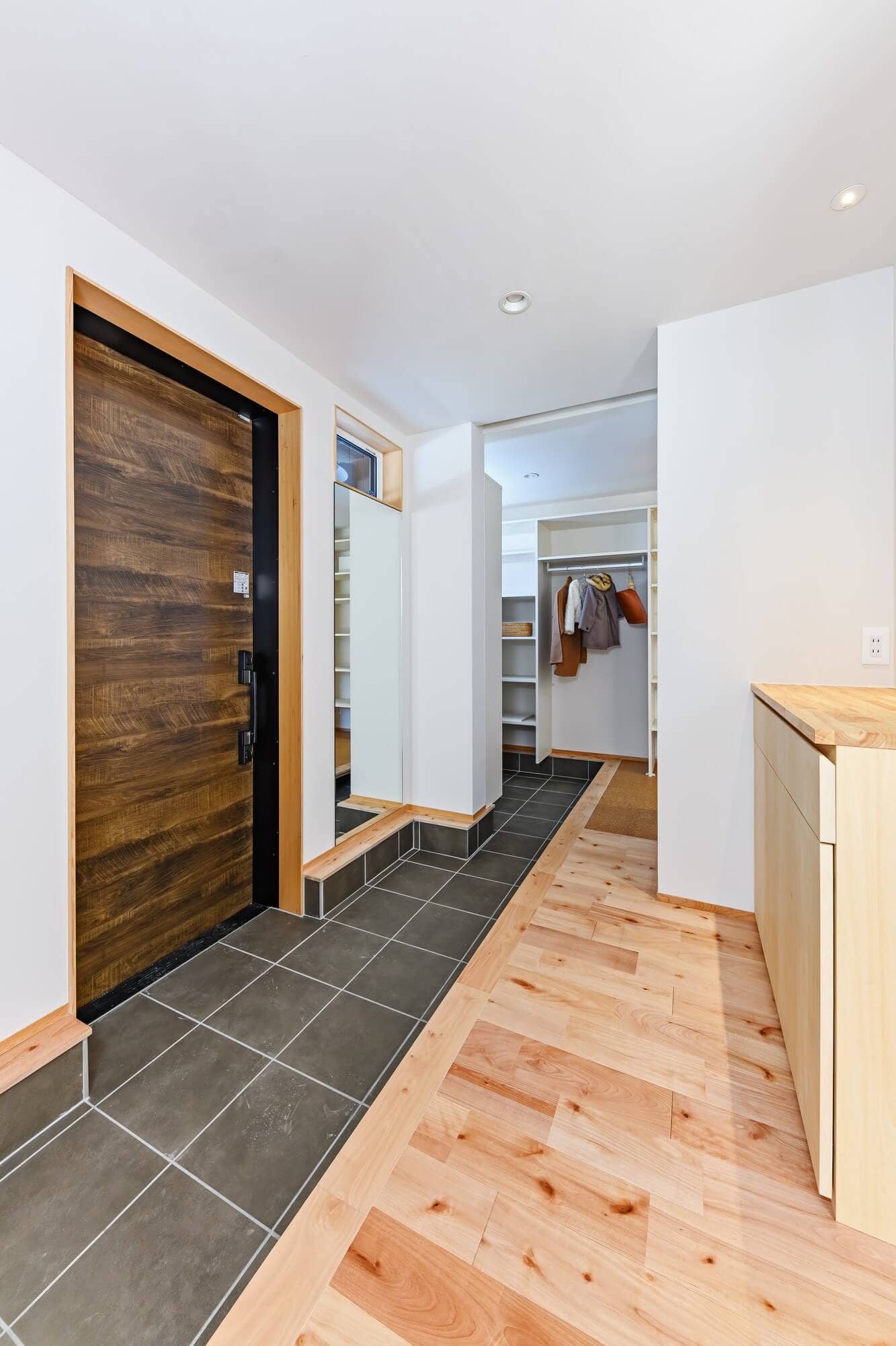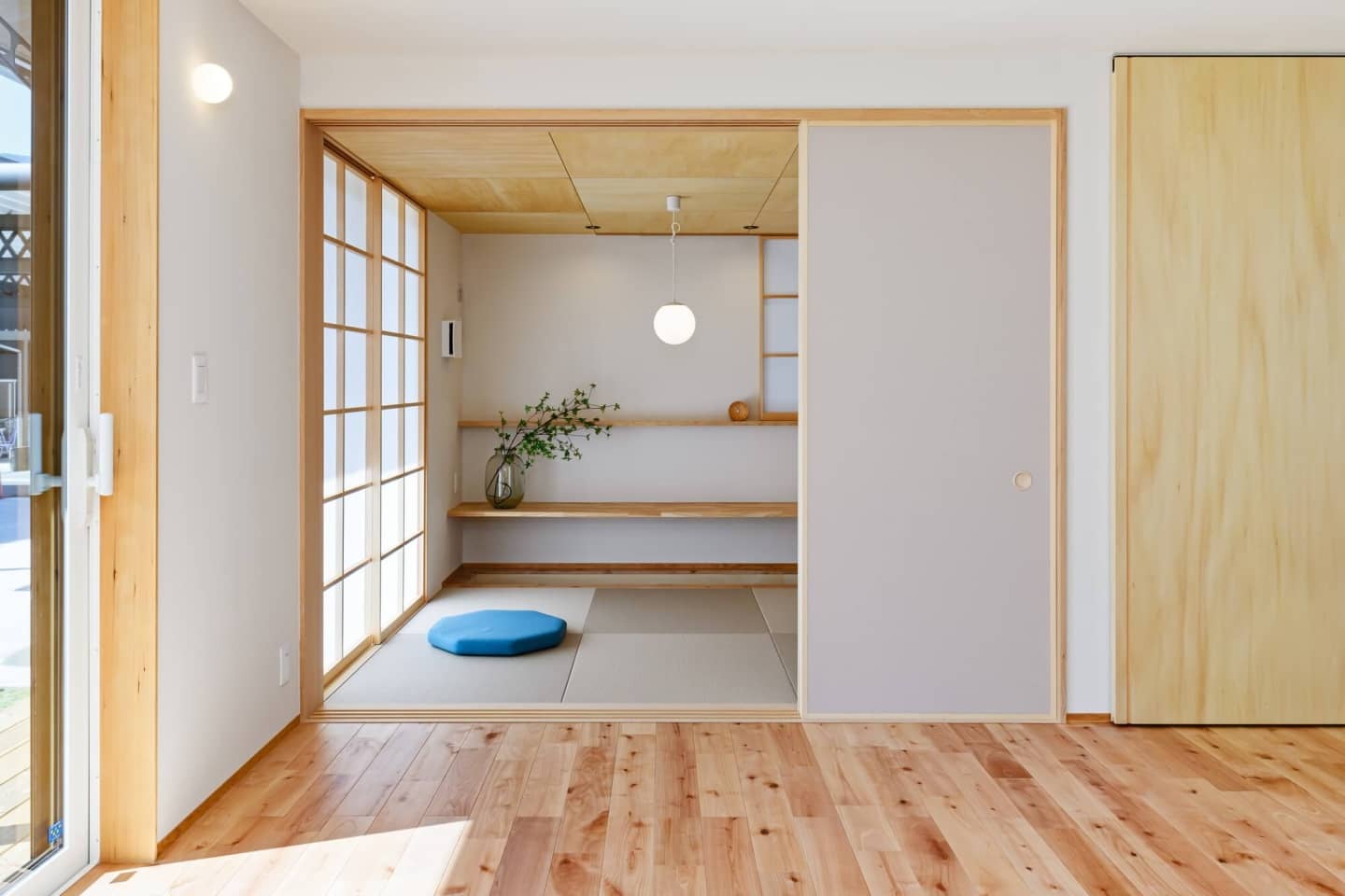 玄関はキッチンとLDK、そして和室への3way動線。特に和室は、玄関から直接お客様がアクセスできるので、来客時には何かと便利な配置です。家族みんなが使えるお篭り部屋としても活用可能です。