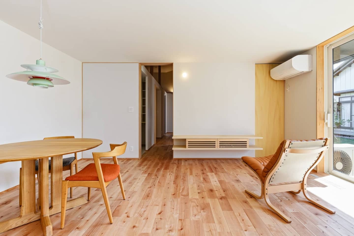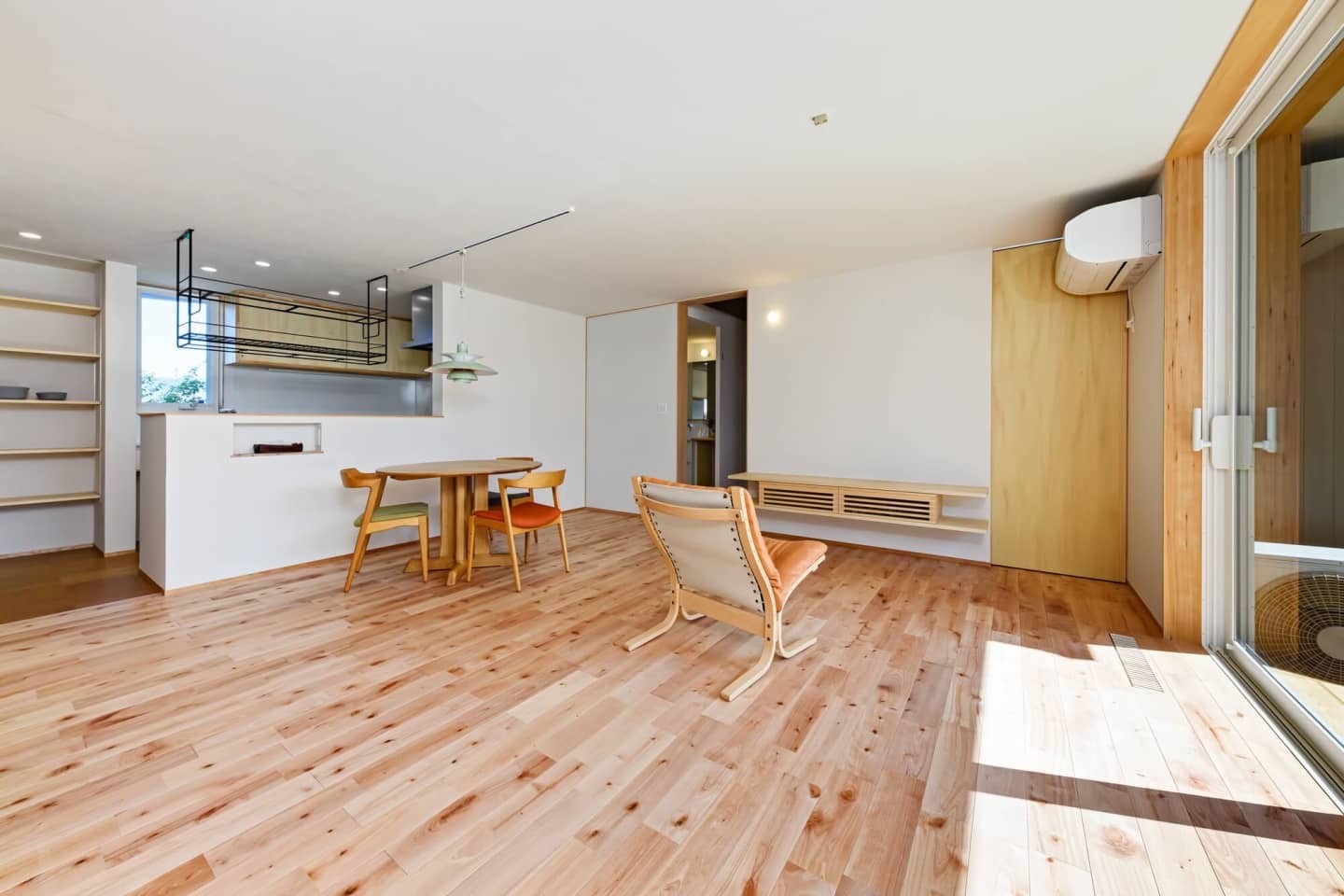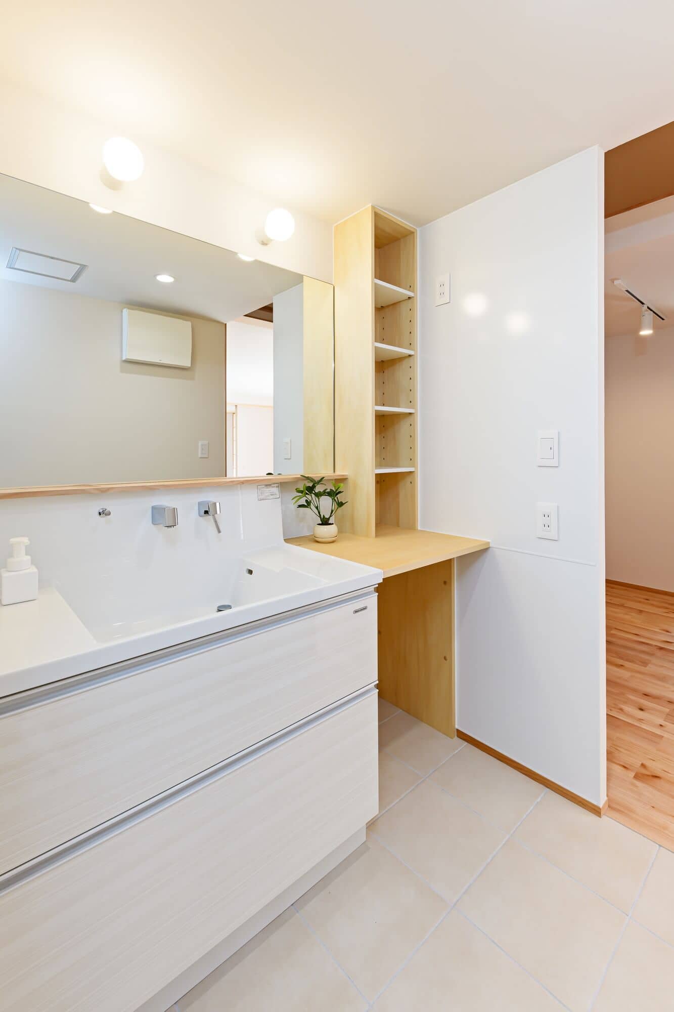 リビングには、家族の気配を感じつつ作業に集中できるワークスペースを配置。リモートワークに大活躍です。