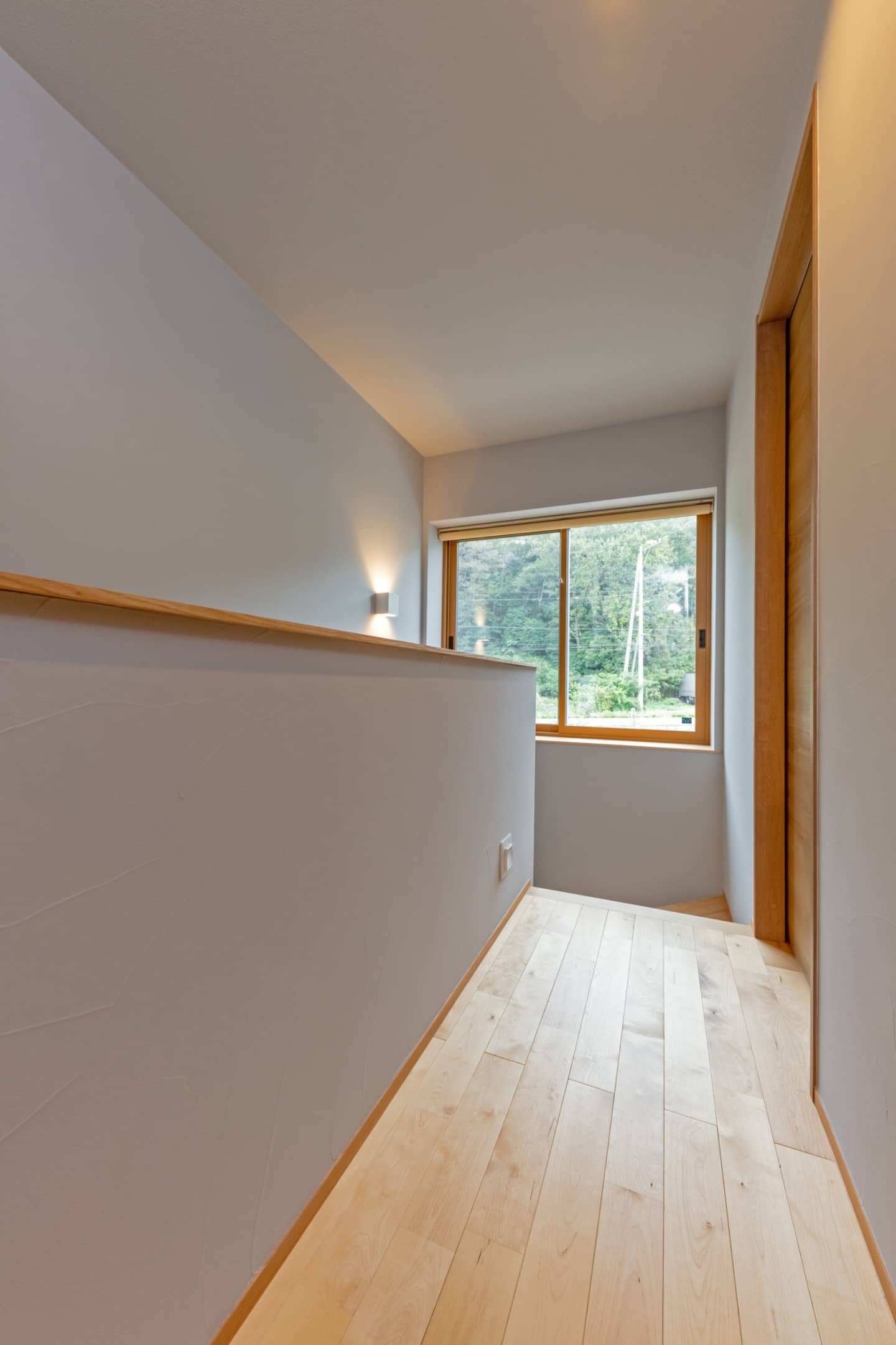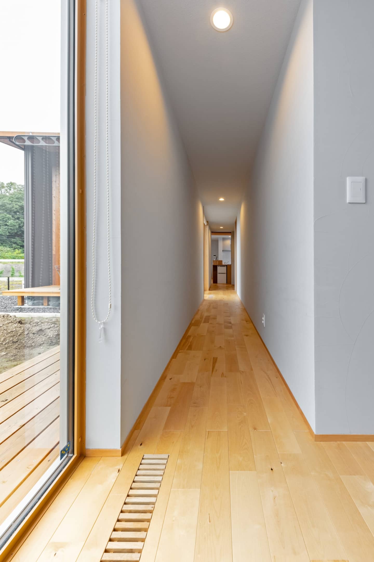 この長い部分に水廻りを配置することで、プライベートな空間と距離が保たれ、生活時間の異なる家族同士が気を遣わずに住まうことができます。