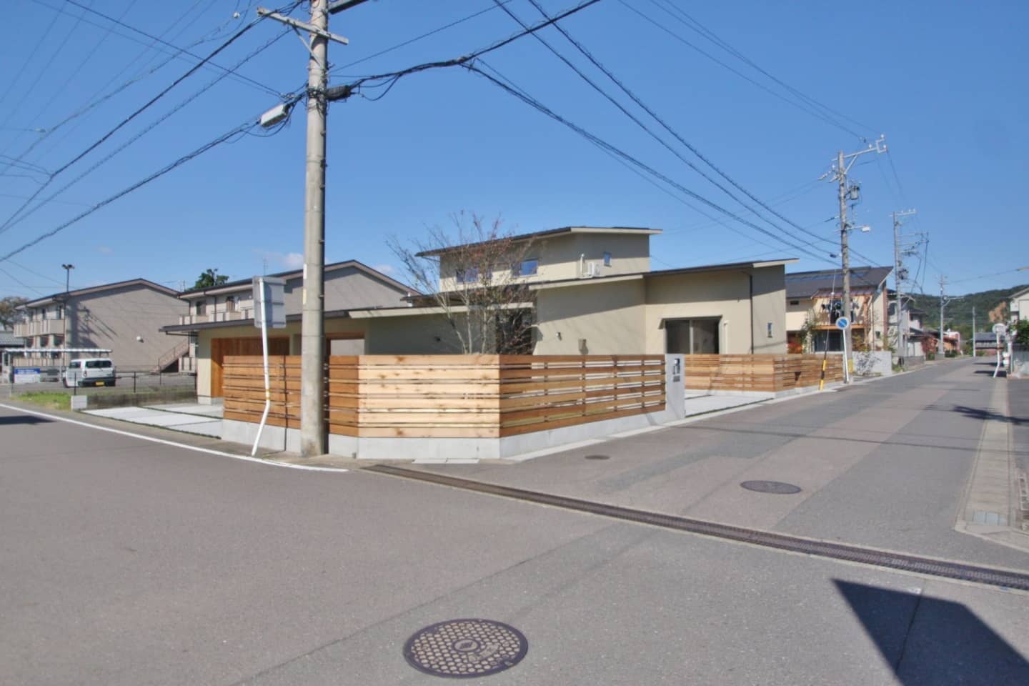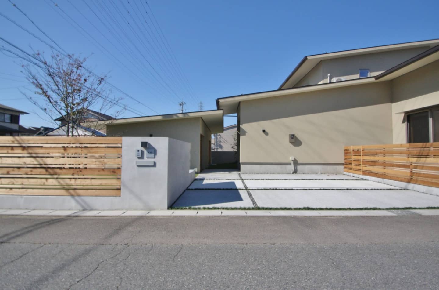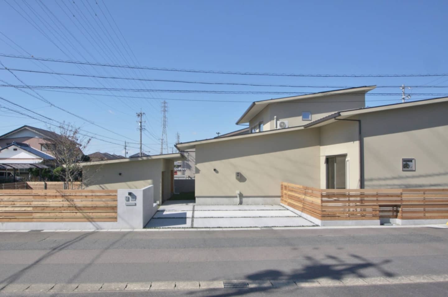 外壁は塗り壁オメガアクロフレックス9248のマリブ仕上げ。