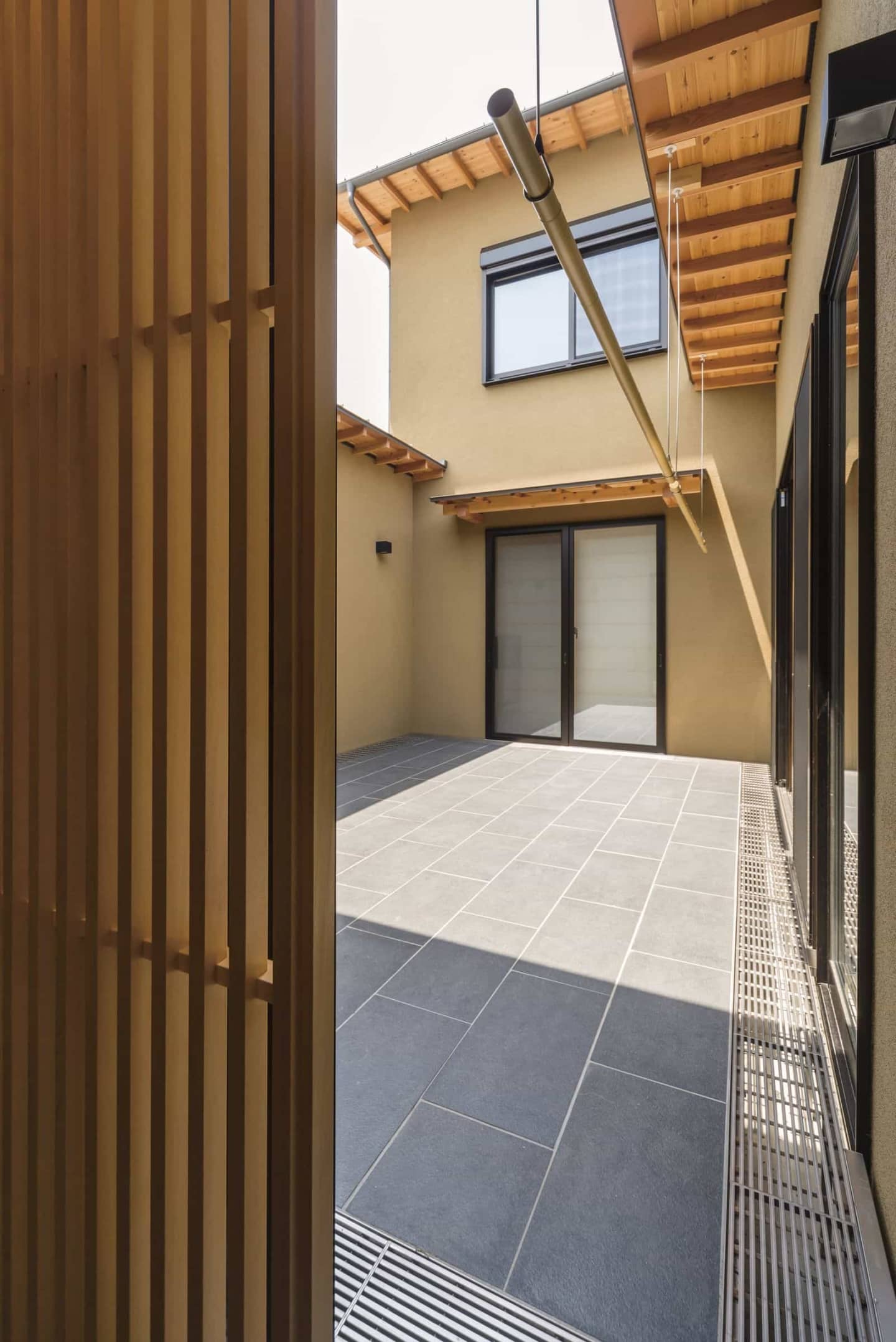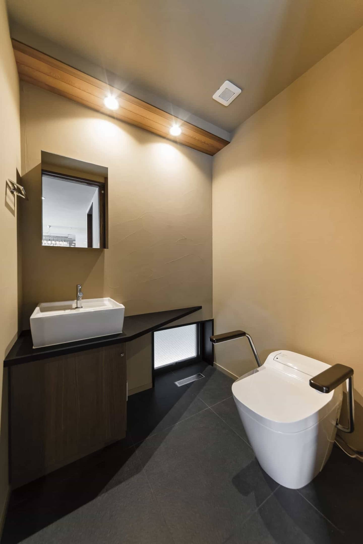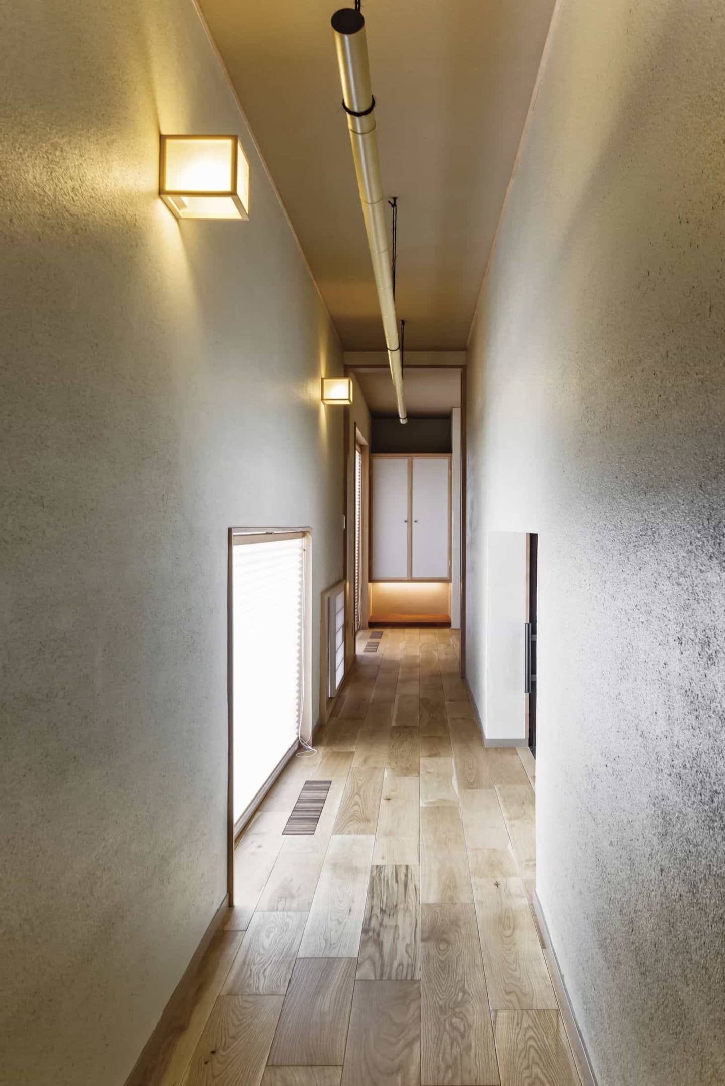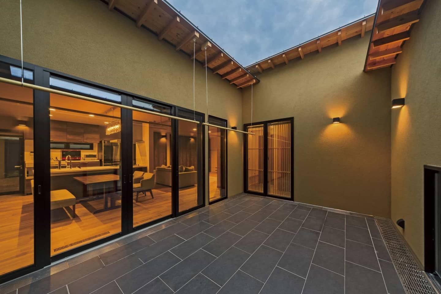 内外部、扉や家具に至るまで、色のバランスに配慮。明るすぎず、落ち着きのある絶妙な色合いを出しました。高気密高断熱、一体打ち基礎による床下蓄熱冷暖房を装備しました。1月のお引き渡しでしたが、冬の間はとても暖かく過ごせたとのことです。また、日本独特の陰影の美しさ、「陰翳礼賛」の世界を引用し、障子や格子を使って日射と視線・空気をコントロールすることで、ただ明るいだけの空間ではなく、陰影の美しさを演出できる空間としました。