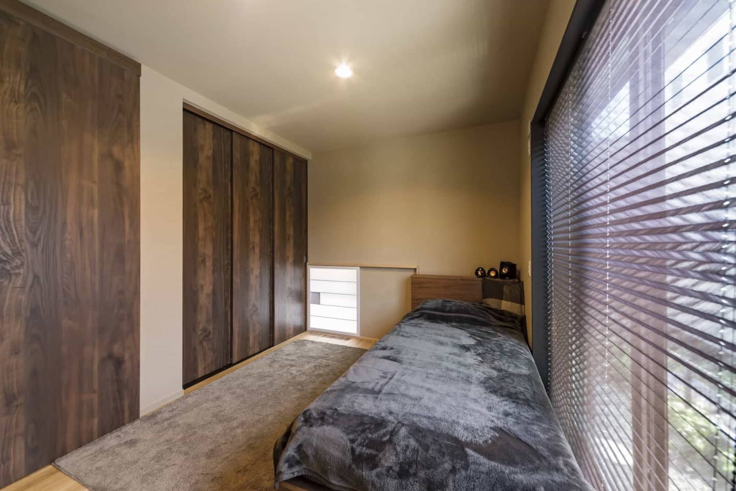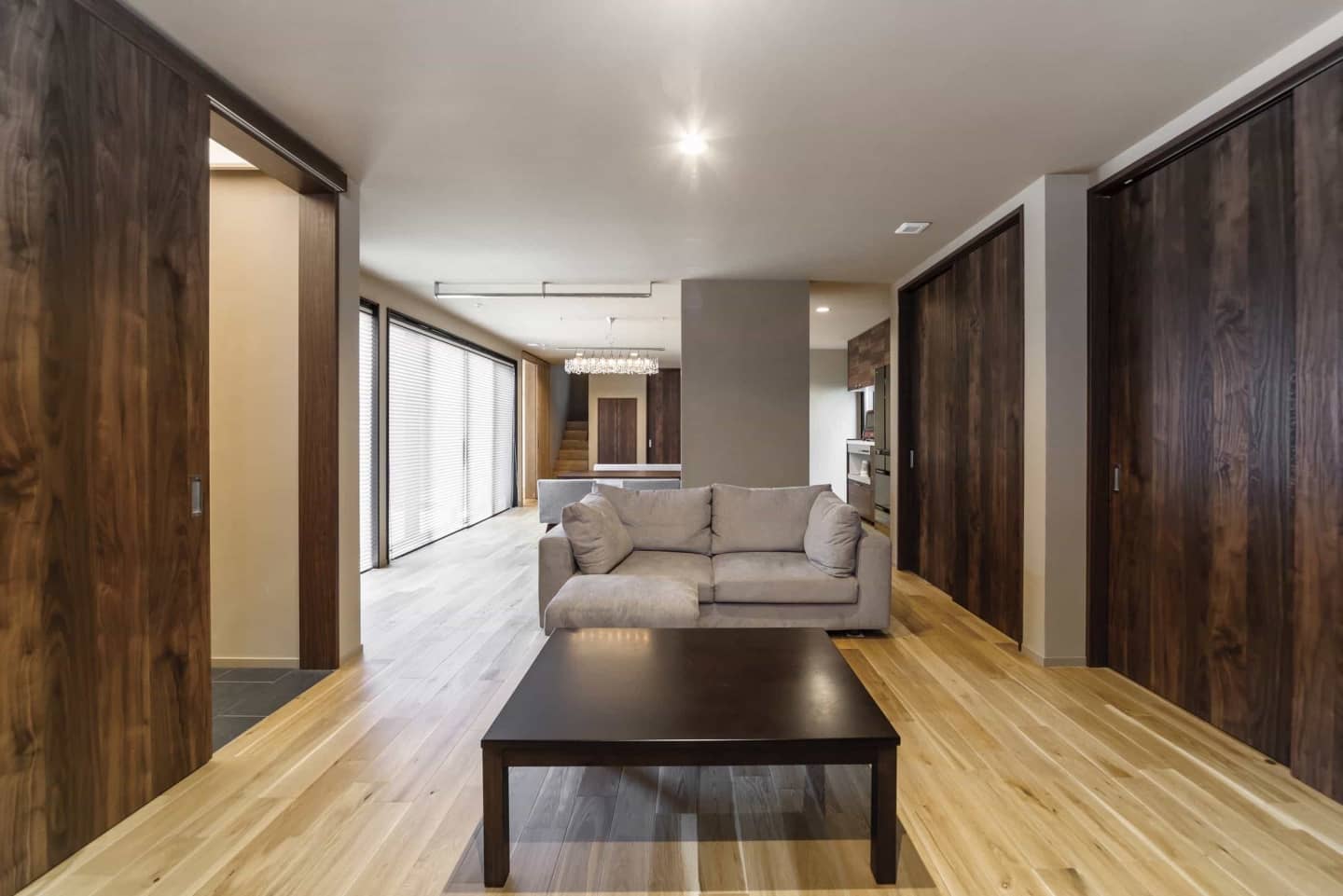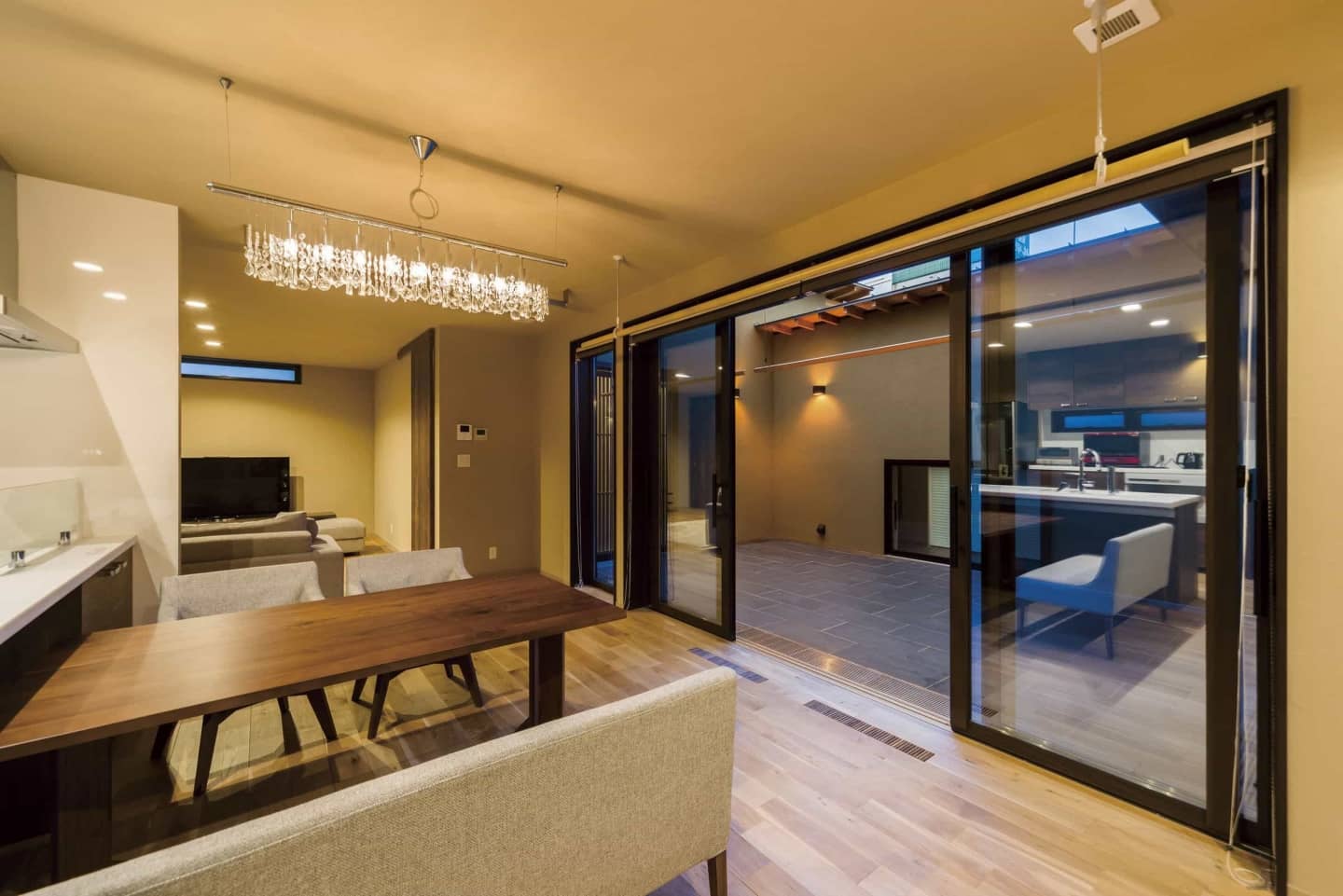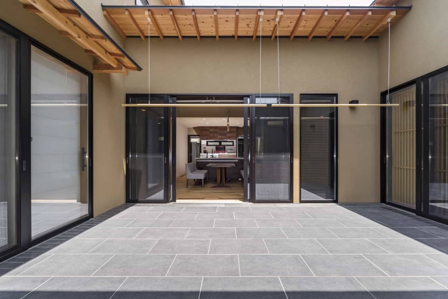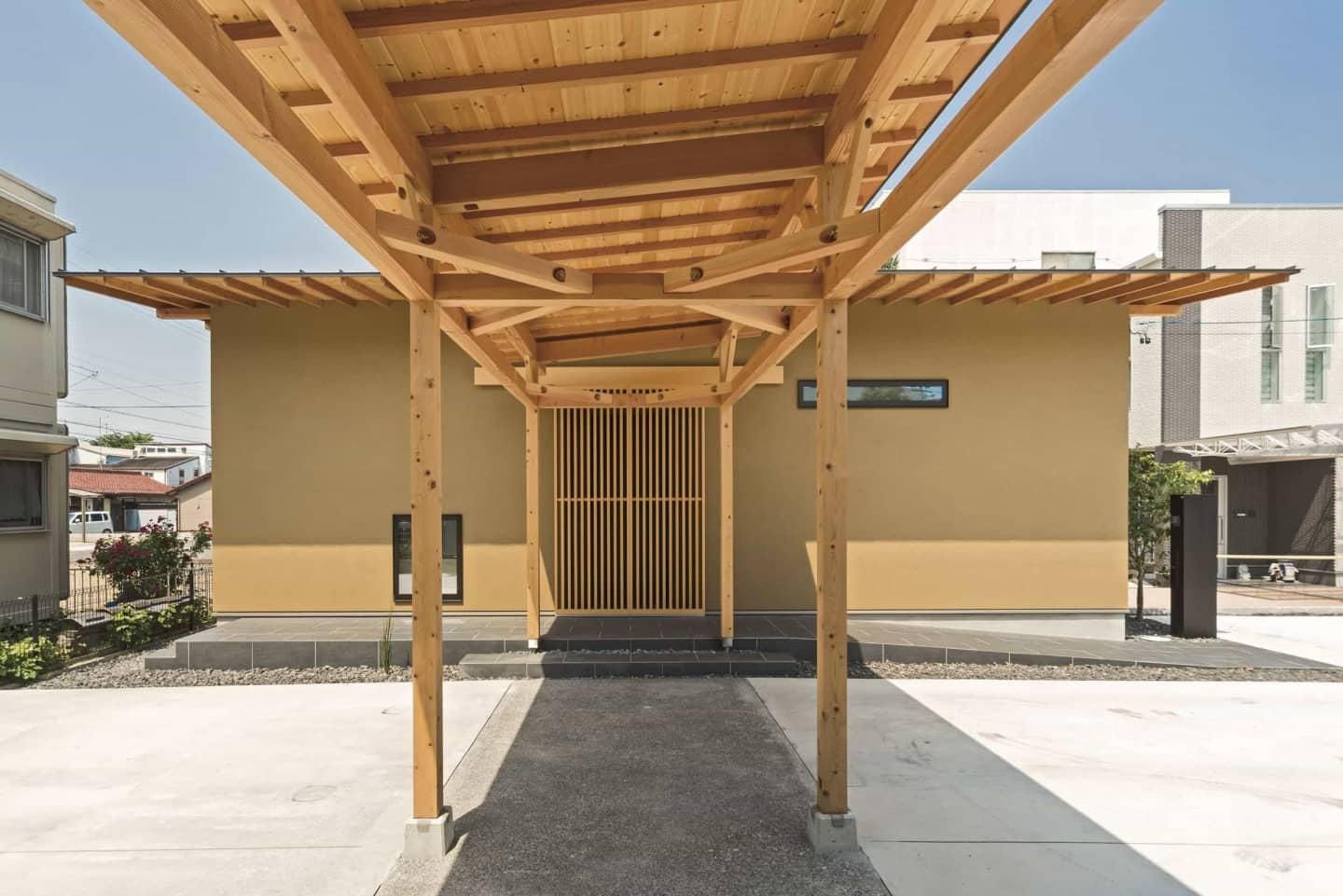 内外部、扉や家具に至るまで、色のバランスに配慮。明るすぎず、落ち着きのある絶妙な色合いを出しました。高気密高断熱、一体打ち基礎による床下蓄熱冷暖房を装備しました。1月のお引き渡しでしたが、冬の間はとても暖かく過ごせたとのことです。また、日本独特の陰影の美しさ、「陰翳礼賛」の世界を引用し、障子や格子を使って日射と視線・空気をコントロールすることで、ただ明るいだけの空間ではなく、陰影の美しさを演出できる空間としました。