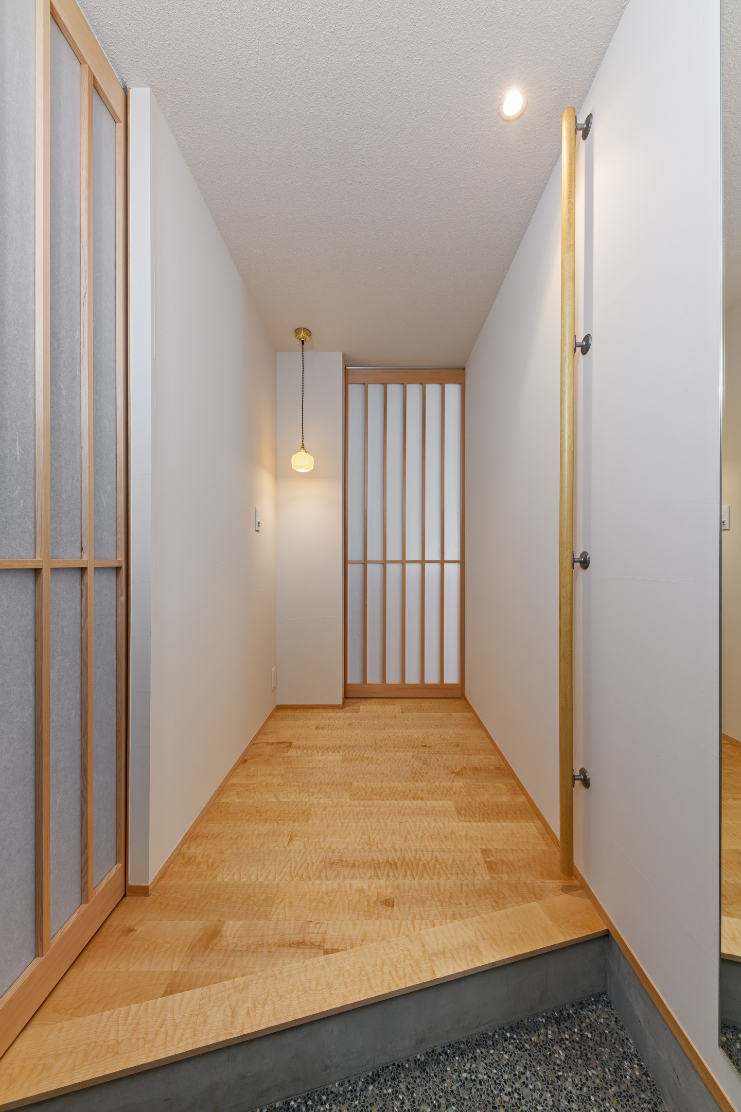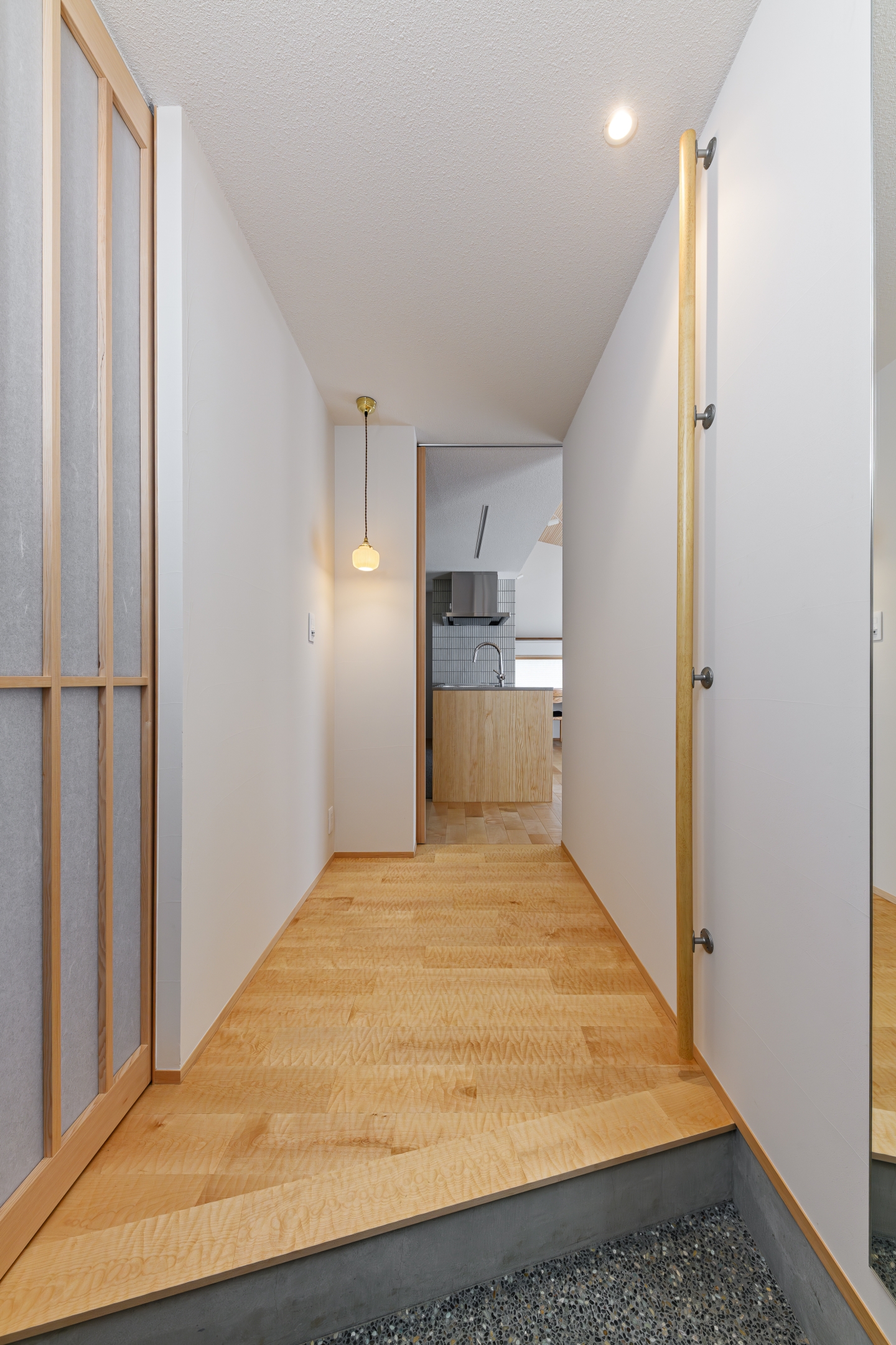廊下をあえて作ることでプライベートと個室空間を区切れるようにしました。