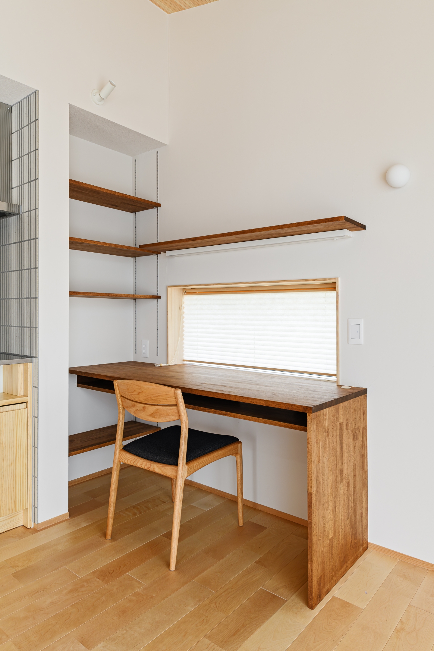 ダイニング横のスタディースペースからは借景で春には桜、夏には緑と季節を感じられ、作業スペースとしても、寛ぎの場としても活用できます。