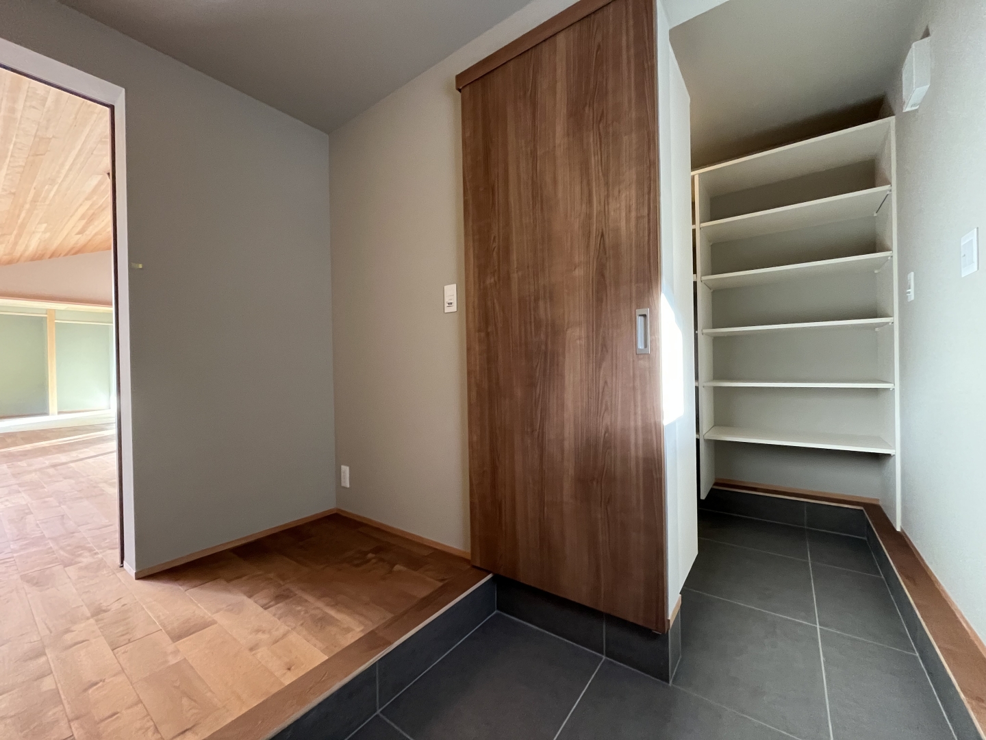 玄関には、便利に使える土間収納があり、動線は2wayになっています。