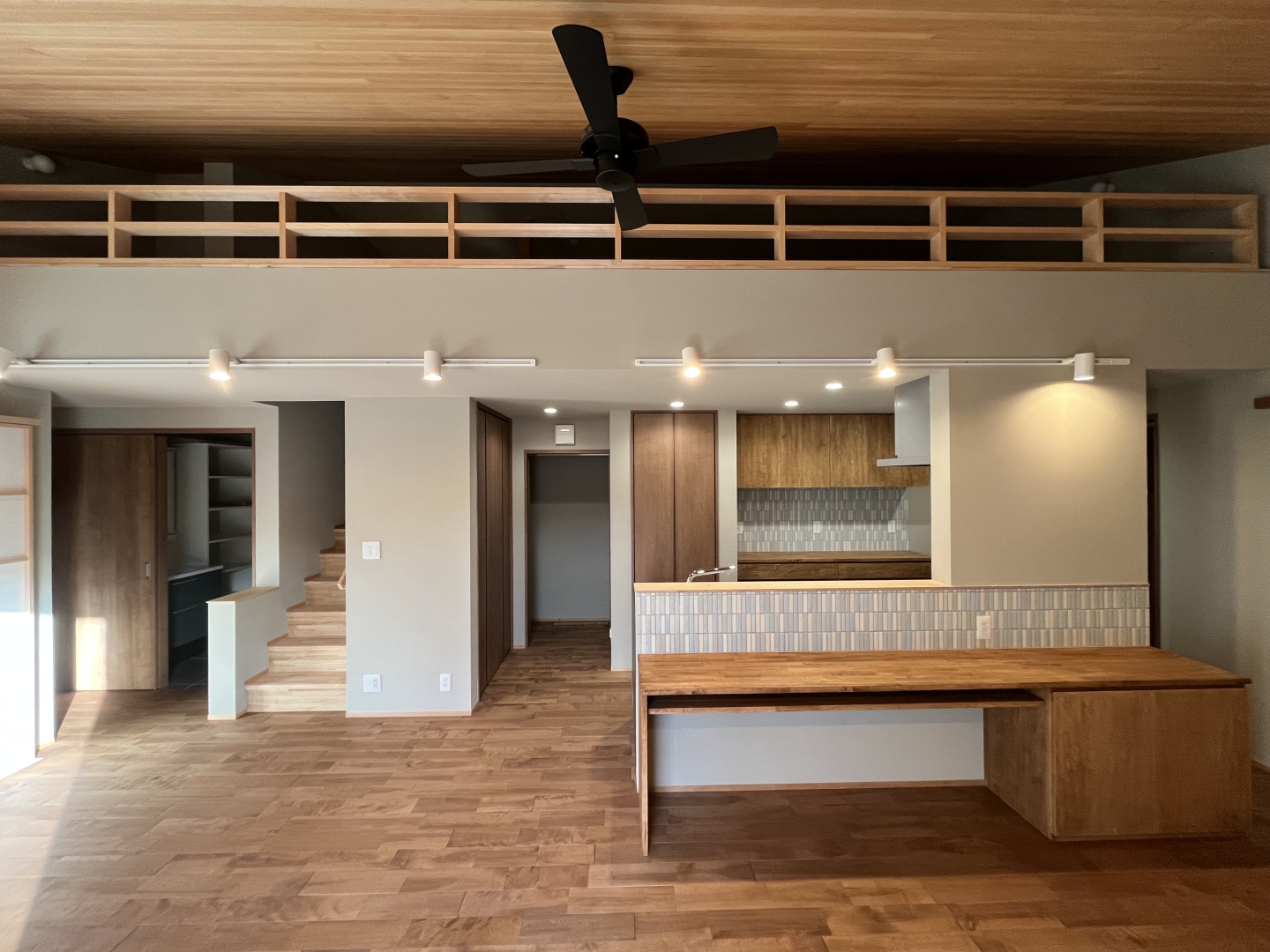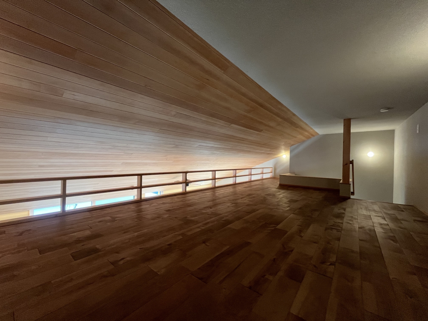 LDK上に設けたロフト空間は、収納として使うのがメインなので、階段でのぼりやすくしました。