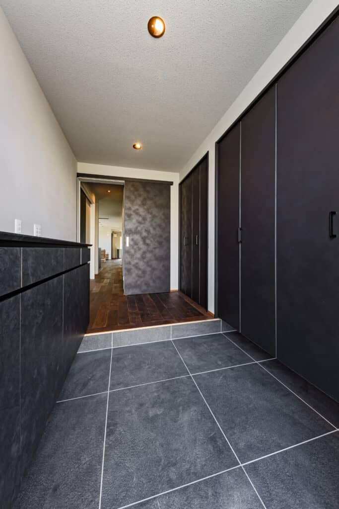 玄関にはすっきり納まる扉付きの土間収納を設置。