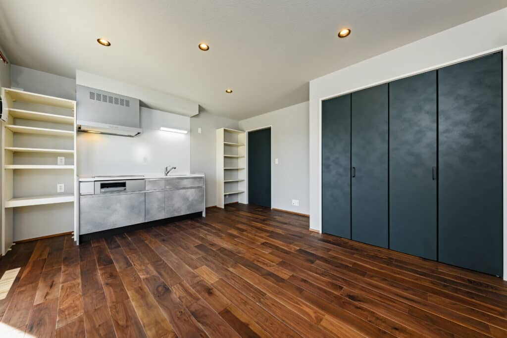 玄関に近い親世帯の部屋にはキッチンのみの設備で、水廻りは共用で使用します。