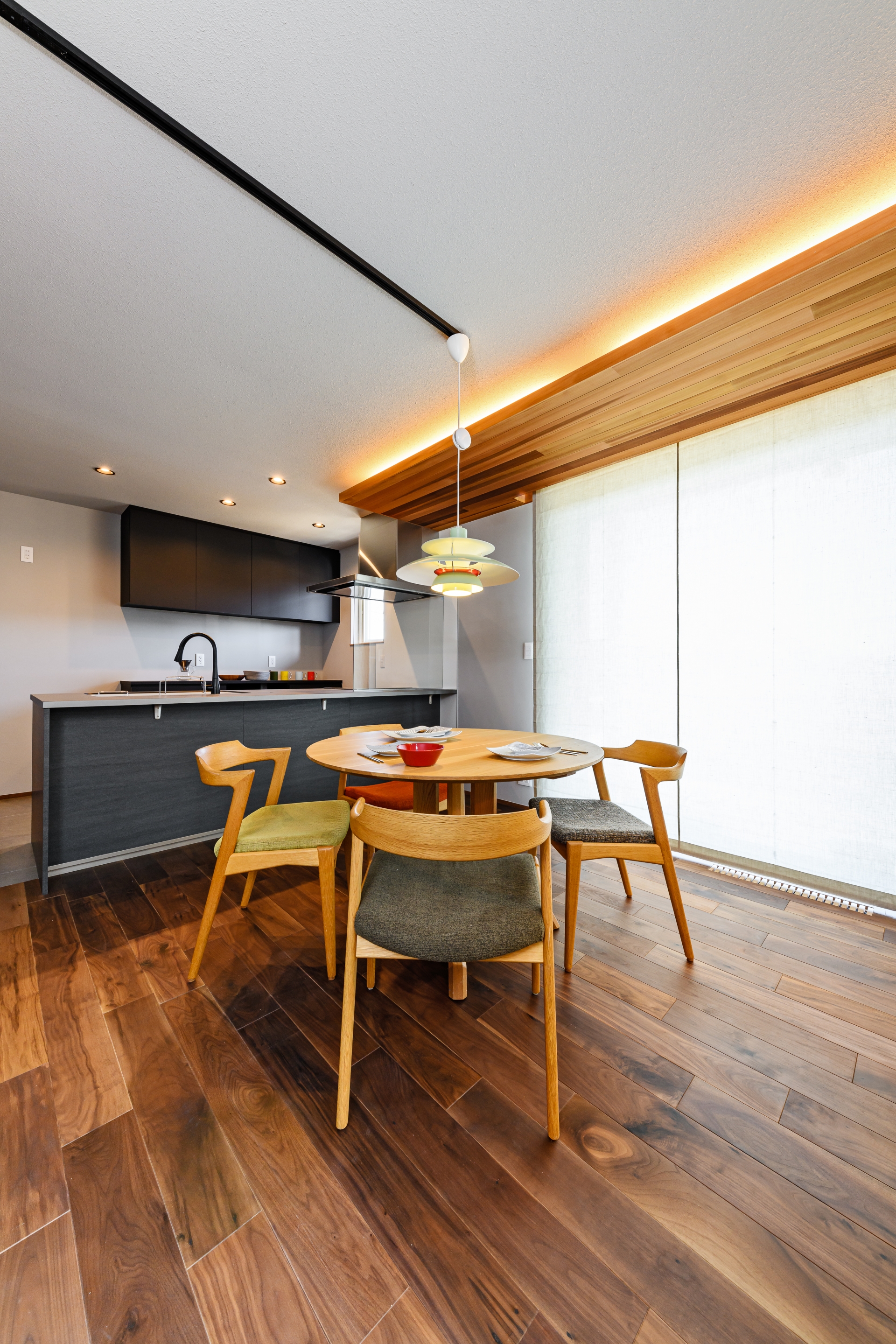 キッチンにはパントリーが隣接しており、小さな机を設置する事でワークスペースも兼ねています。他にも独立のこもれる書斎もあり、居場所をたくさんつくることが出来ました。