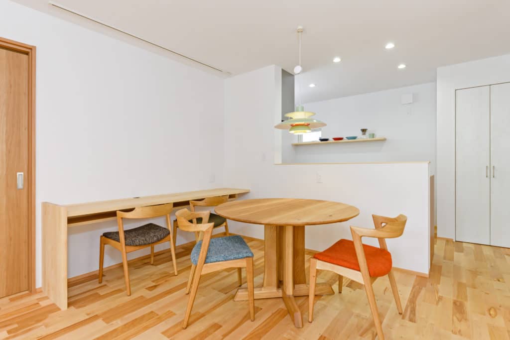 ダイニングの横にあるスタディコーナーは3人掛けの充実な長さ。