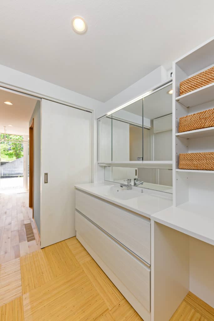 階段下にも収納を設け、目立たせず大容量の収納スペースを確保しました。