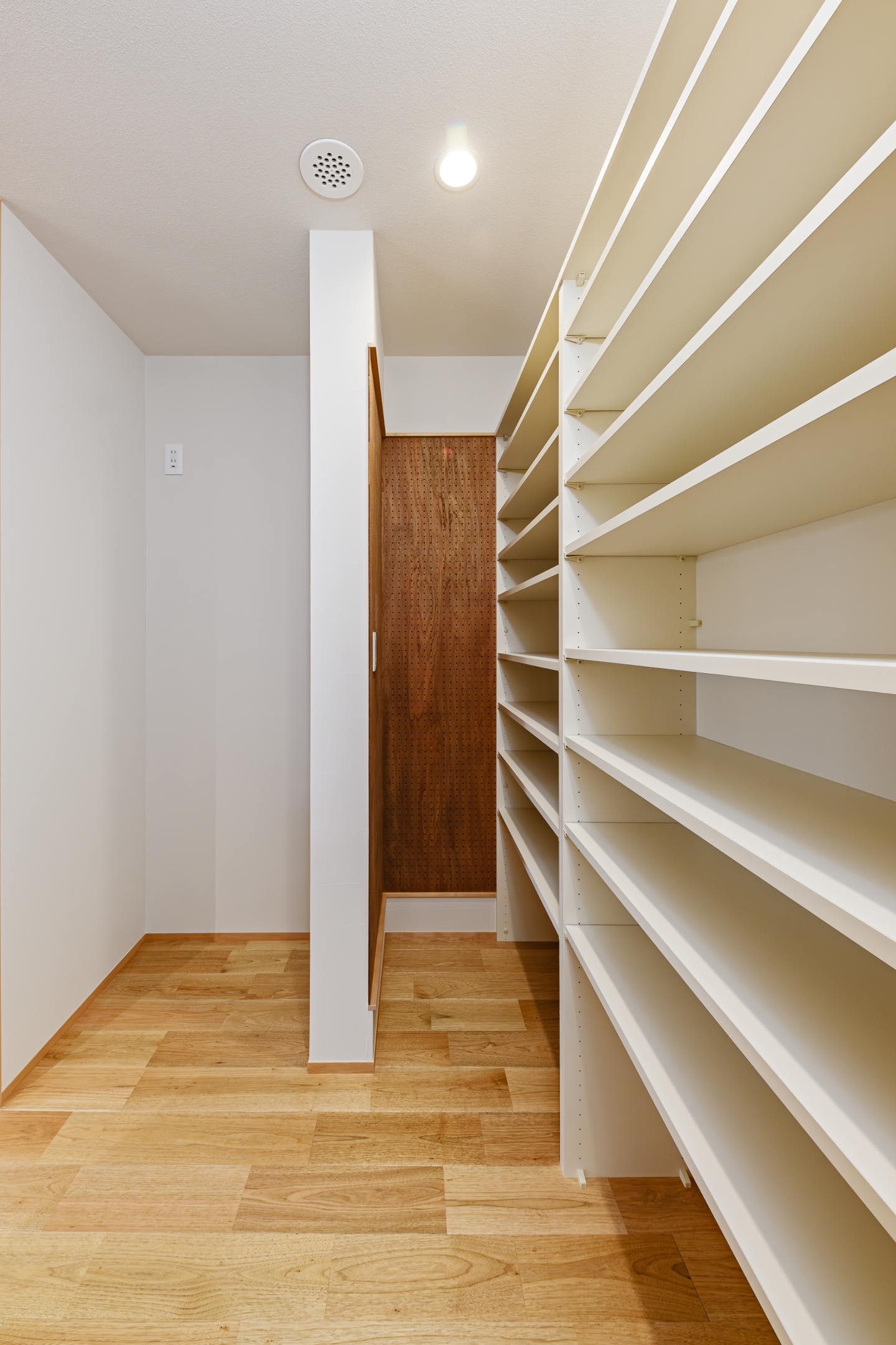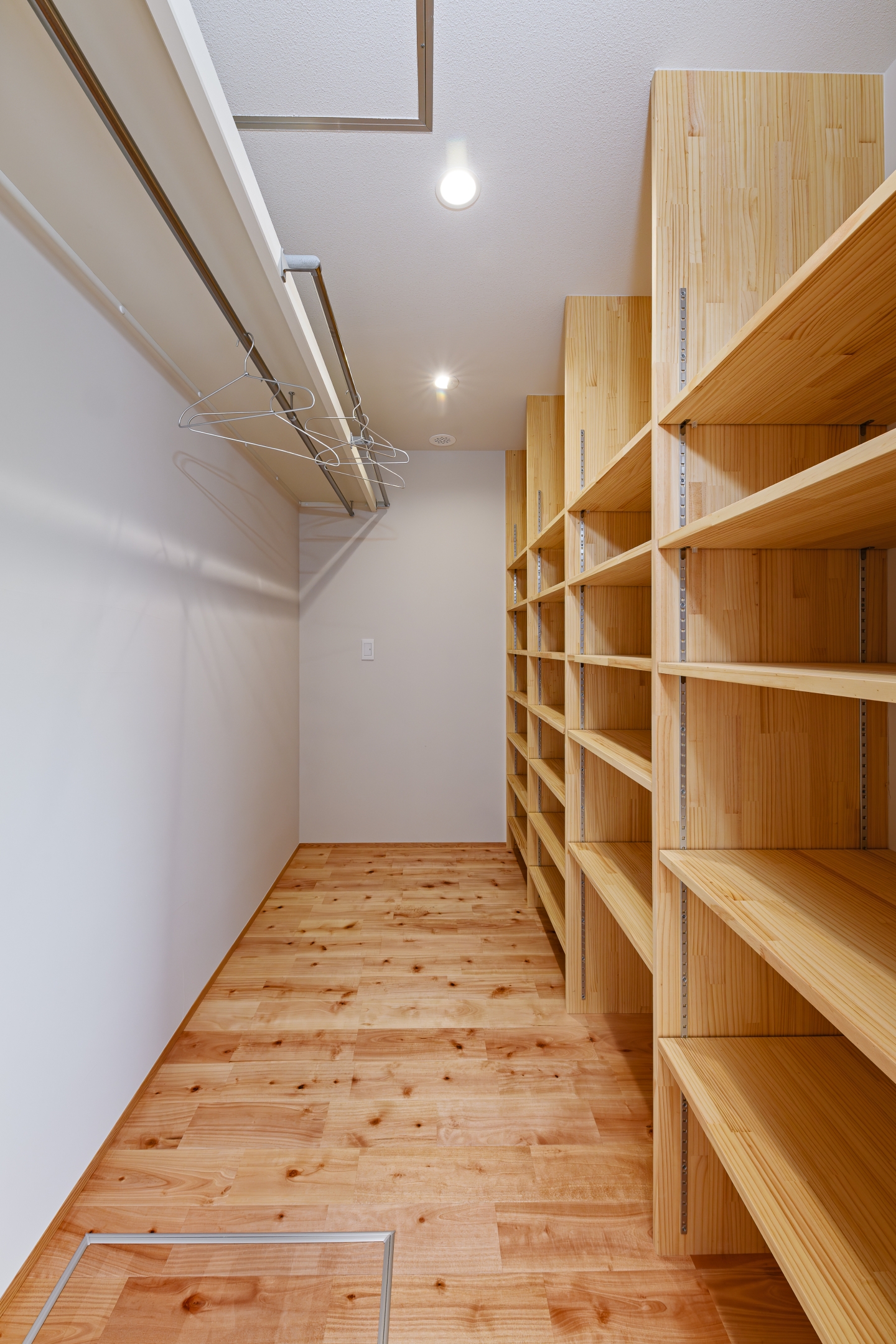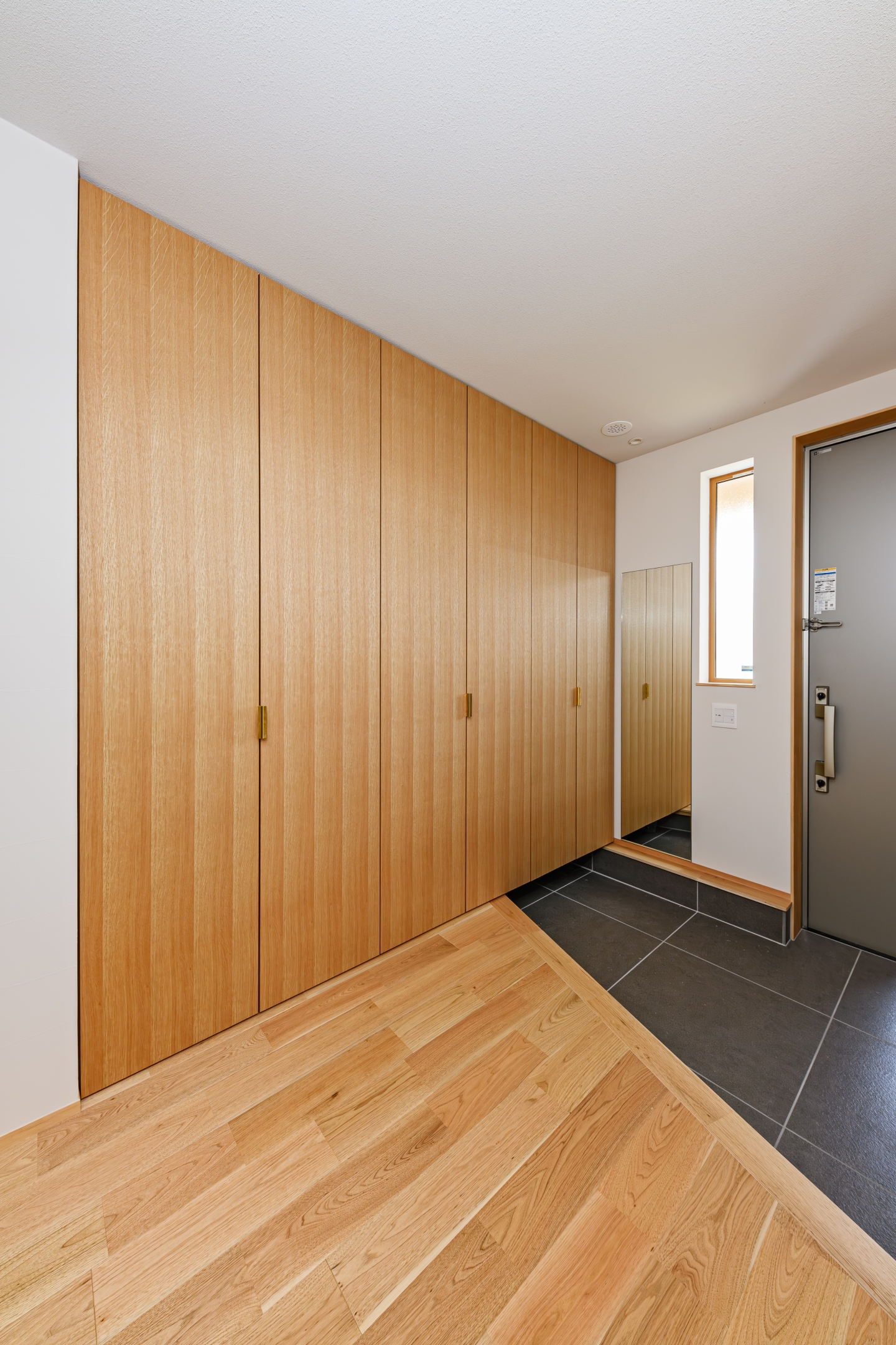みんなが使う水まわりや収納、玄関は広々するとともに、時間がかぶっても使いやすい回遊動線を各所に計画。