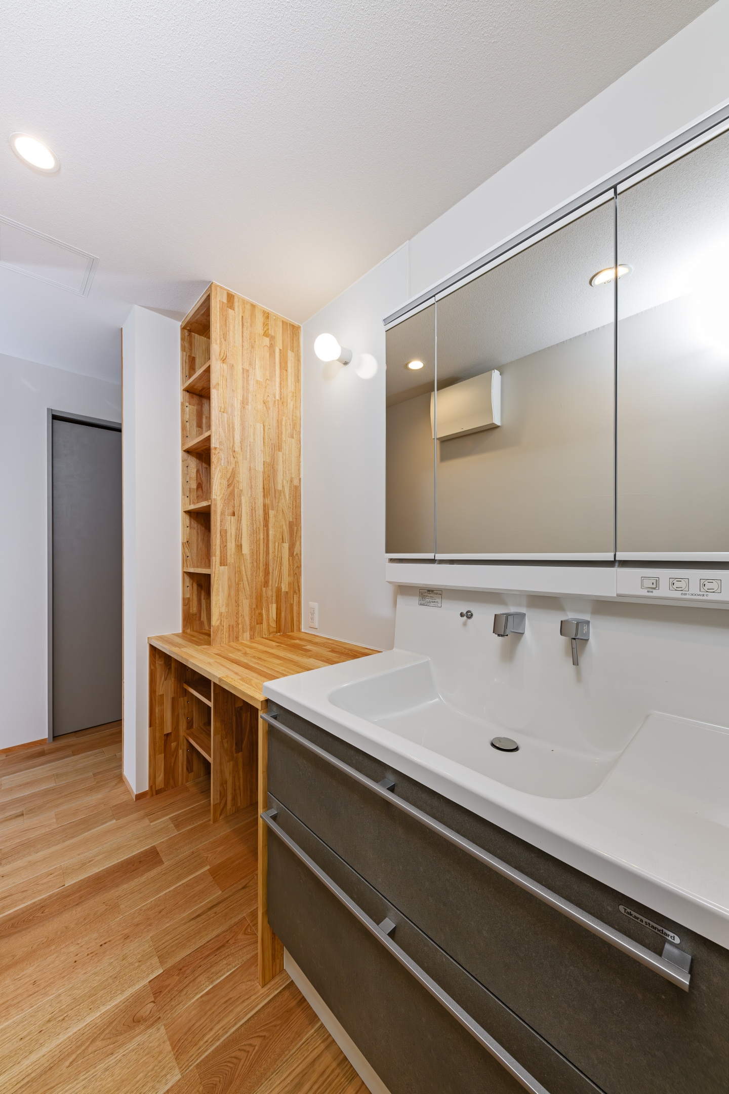洗面はあえて脱衣と分離し、大家族でも渋滞せずに使えるようにしました。