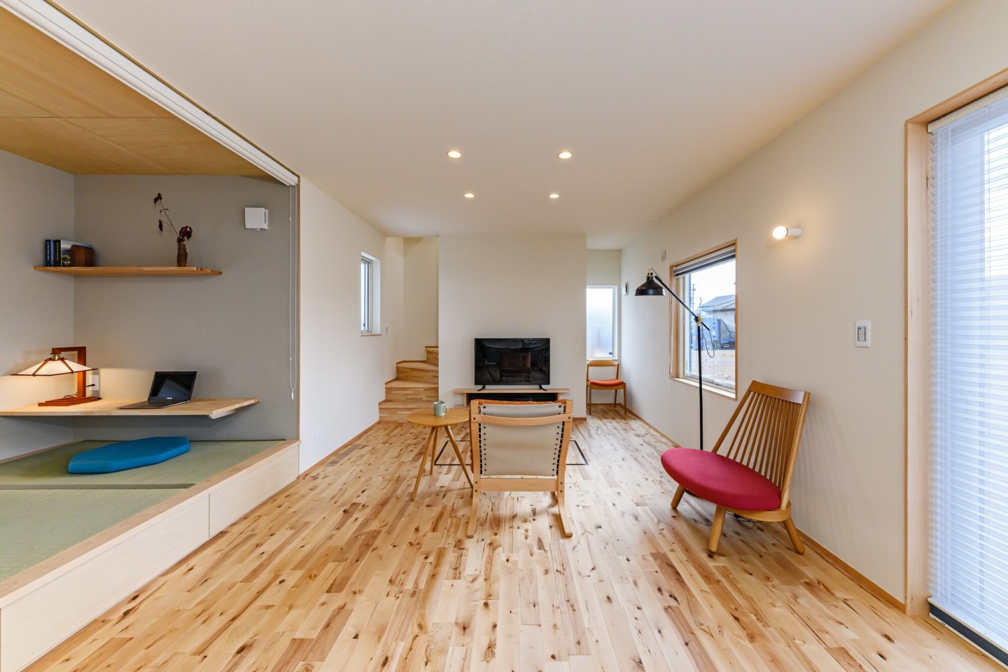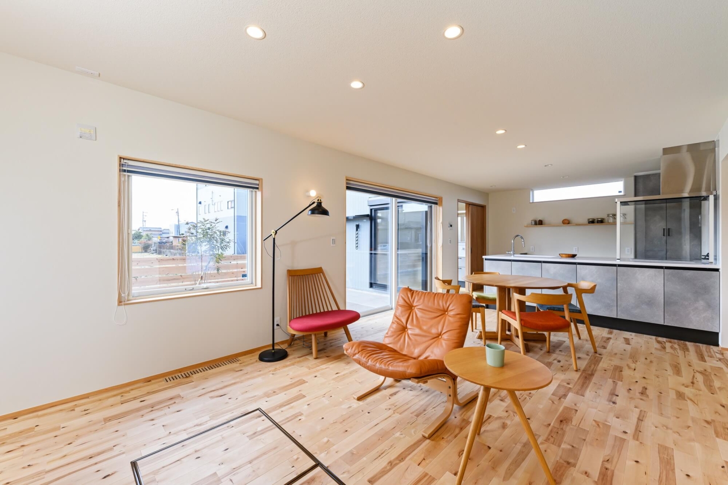 内装もスッキリ、白い塗り壁をベースに、どんなインテリアにも合わせられるデザインです。