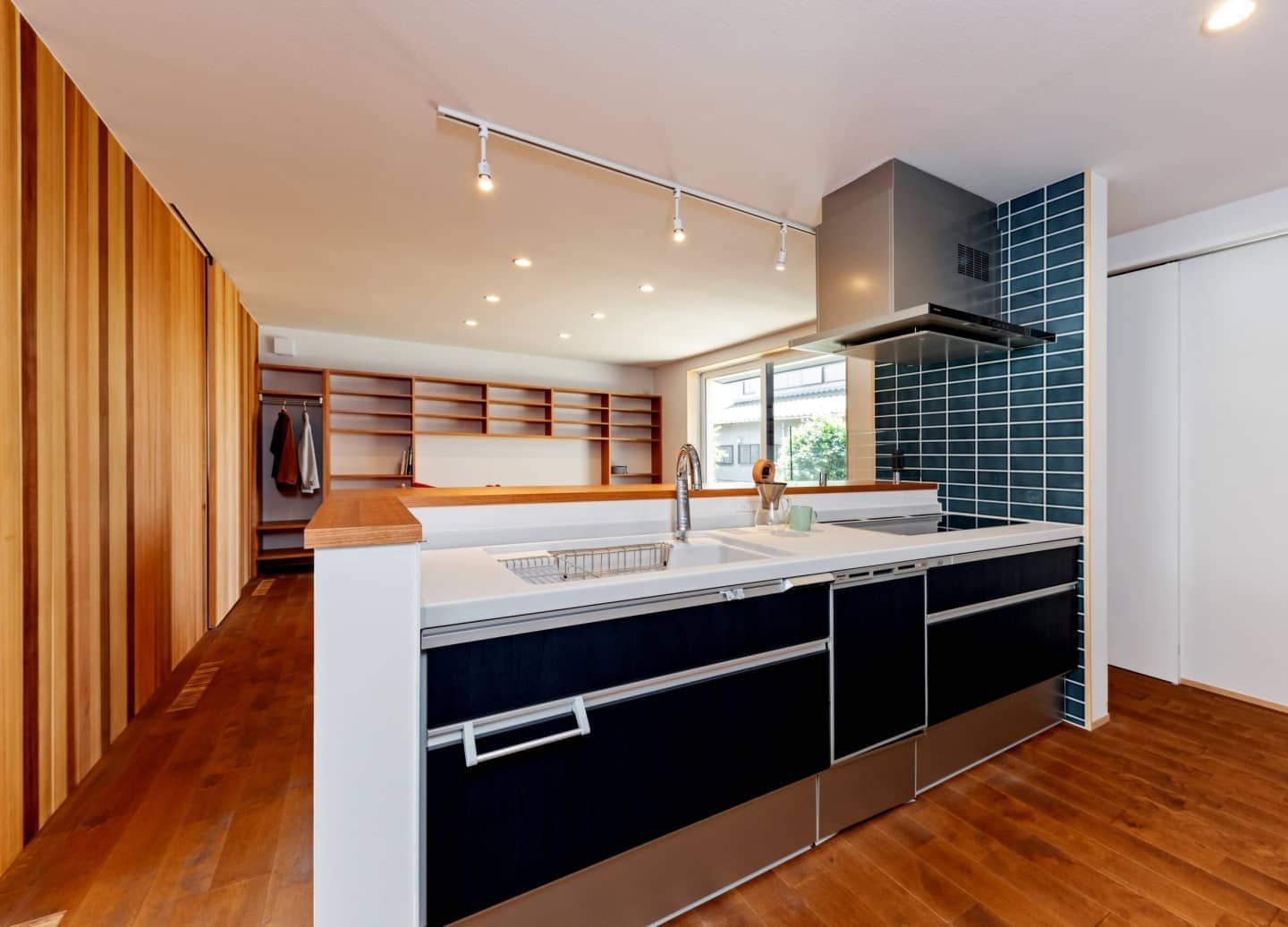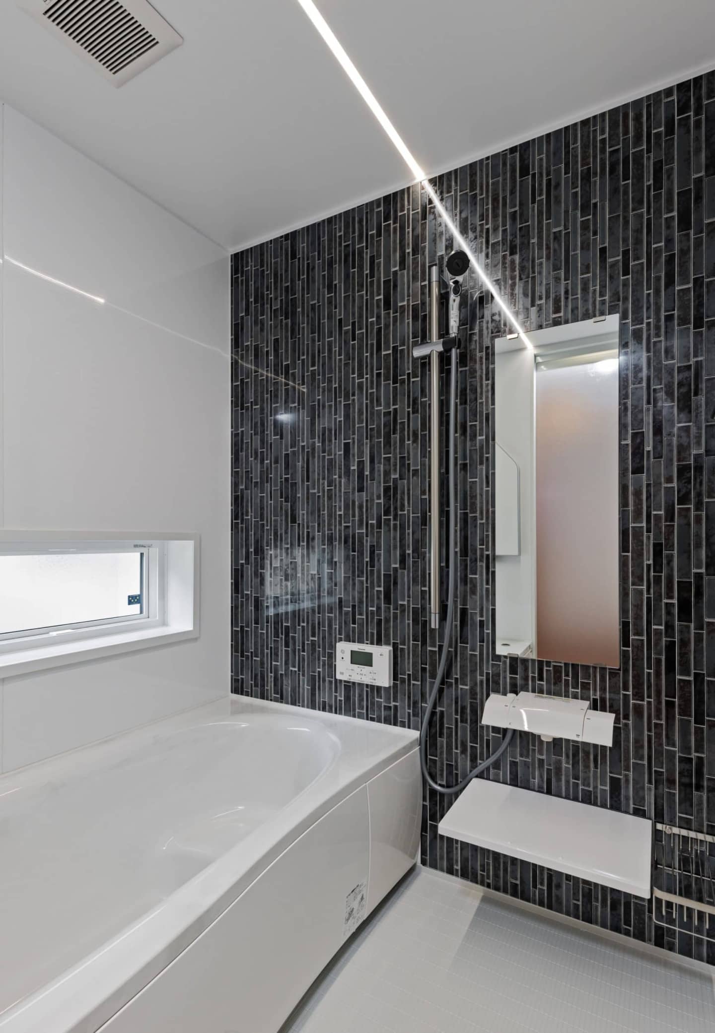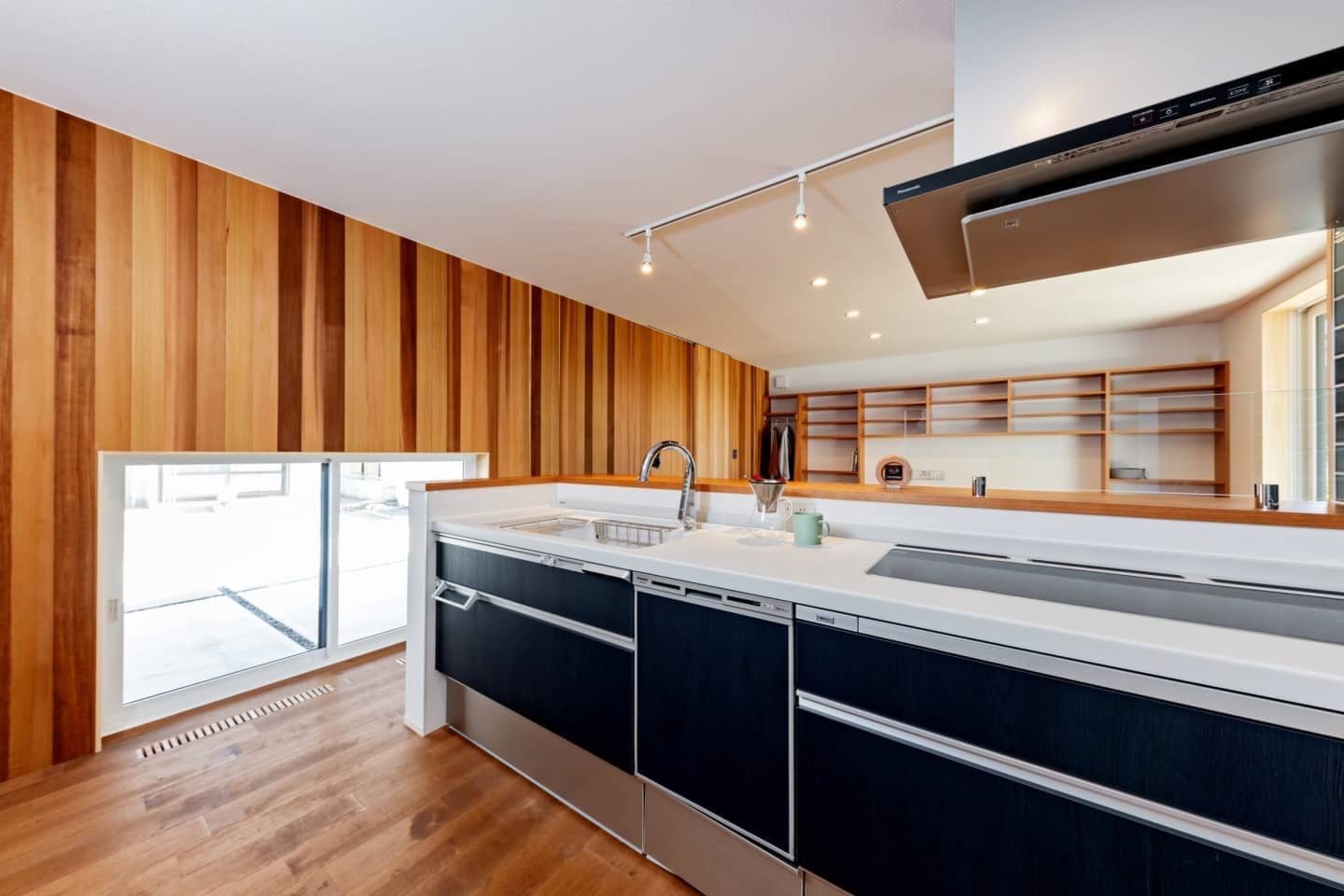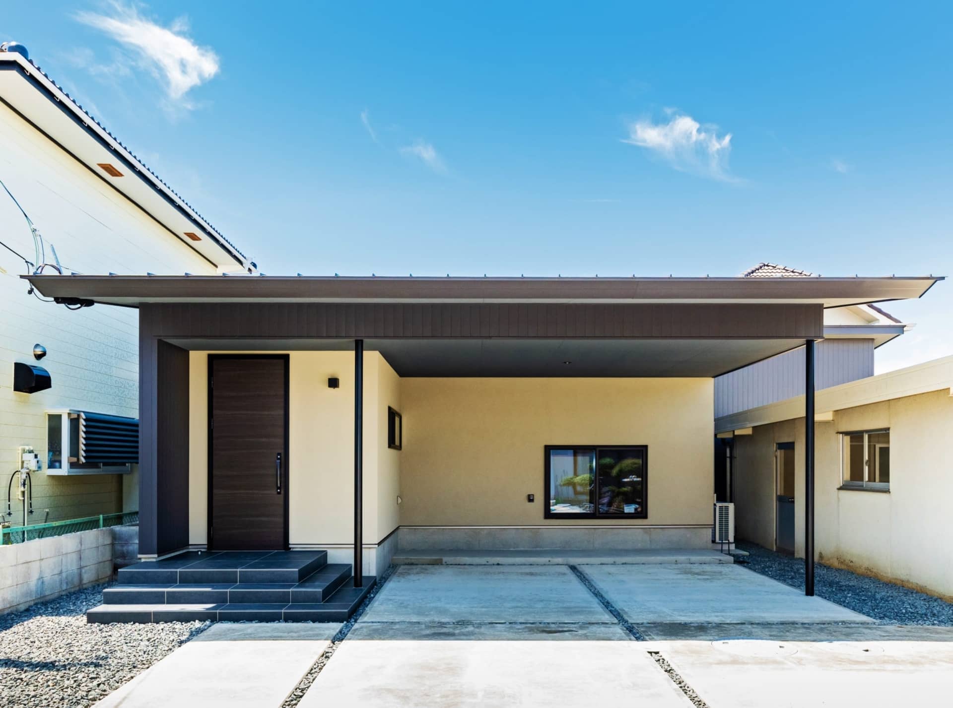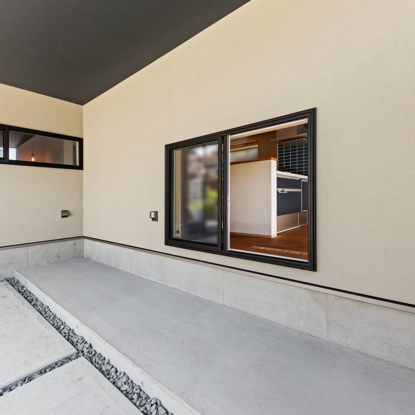 また、外壁は黒ガルバと塗り壁のコラボにより、シックで飽きのこない仕上がりに。更に外観デザインにこだわった結果、雨樋の無いデザインとなりました。