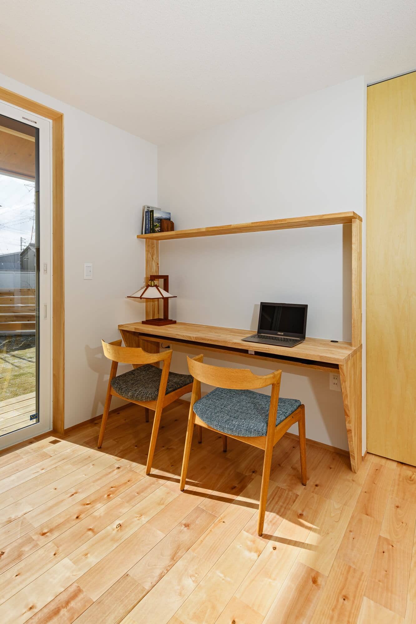 ダイニング横にはスタディコーナーも兼ねた二人掛けのカウンターを設置。外を眺めながらお茶や読書を楽しむことが出来るスペースになりました。