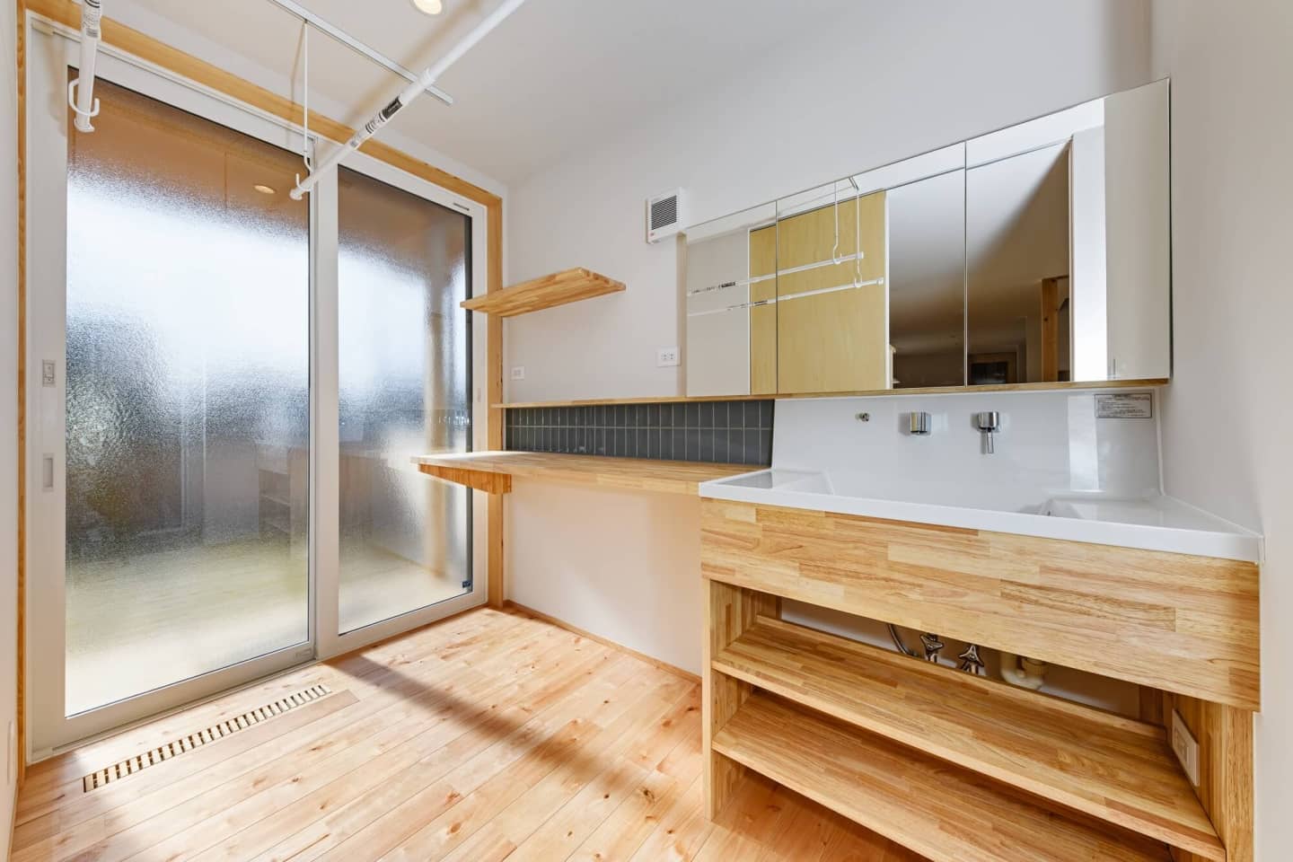 LDKとつながる洗面室は、南側に設置したので明るい空間に。室内干しでもしっかりと洗濯物を乾かすことができます。