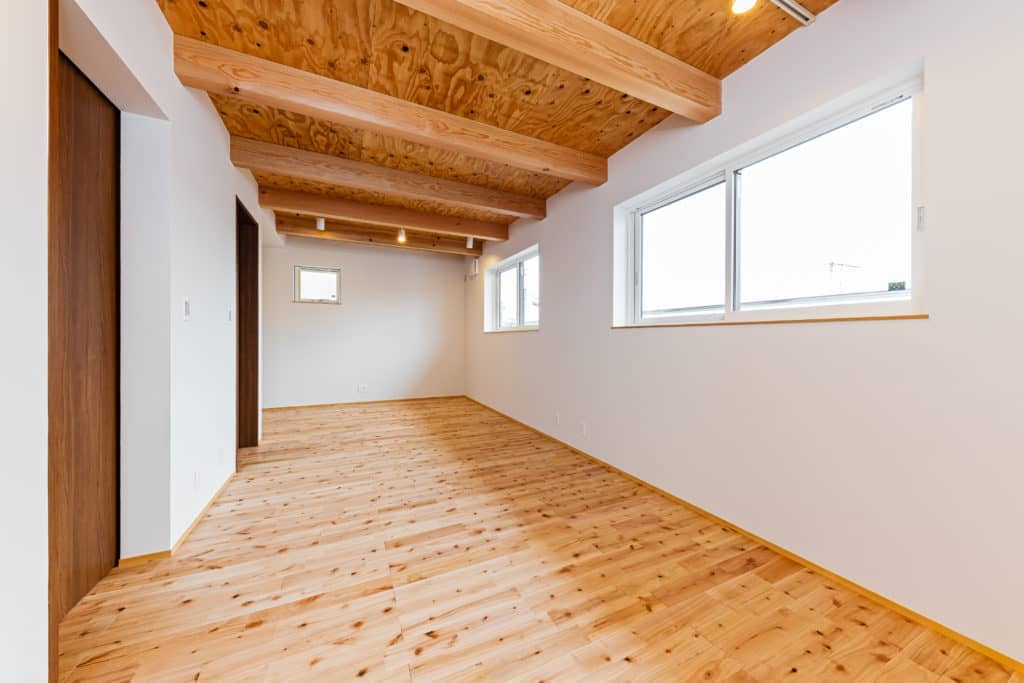 こちらの住まいは平屋暮らしの想定で2Fは子ども室のみ。将来間仕切りをして2部屋にします。