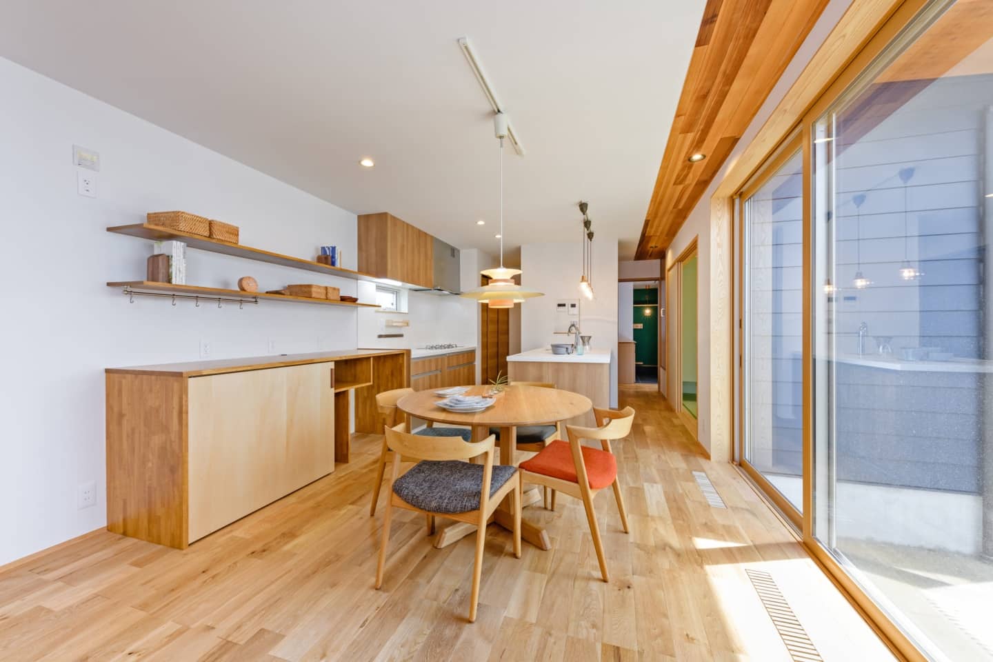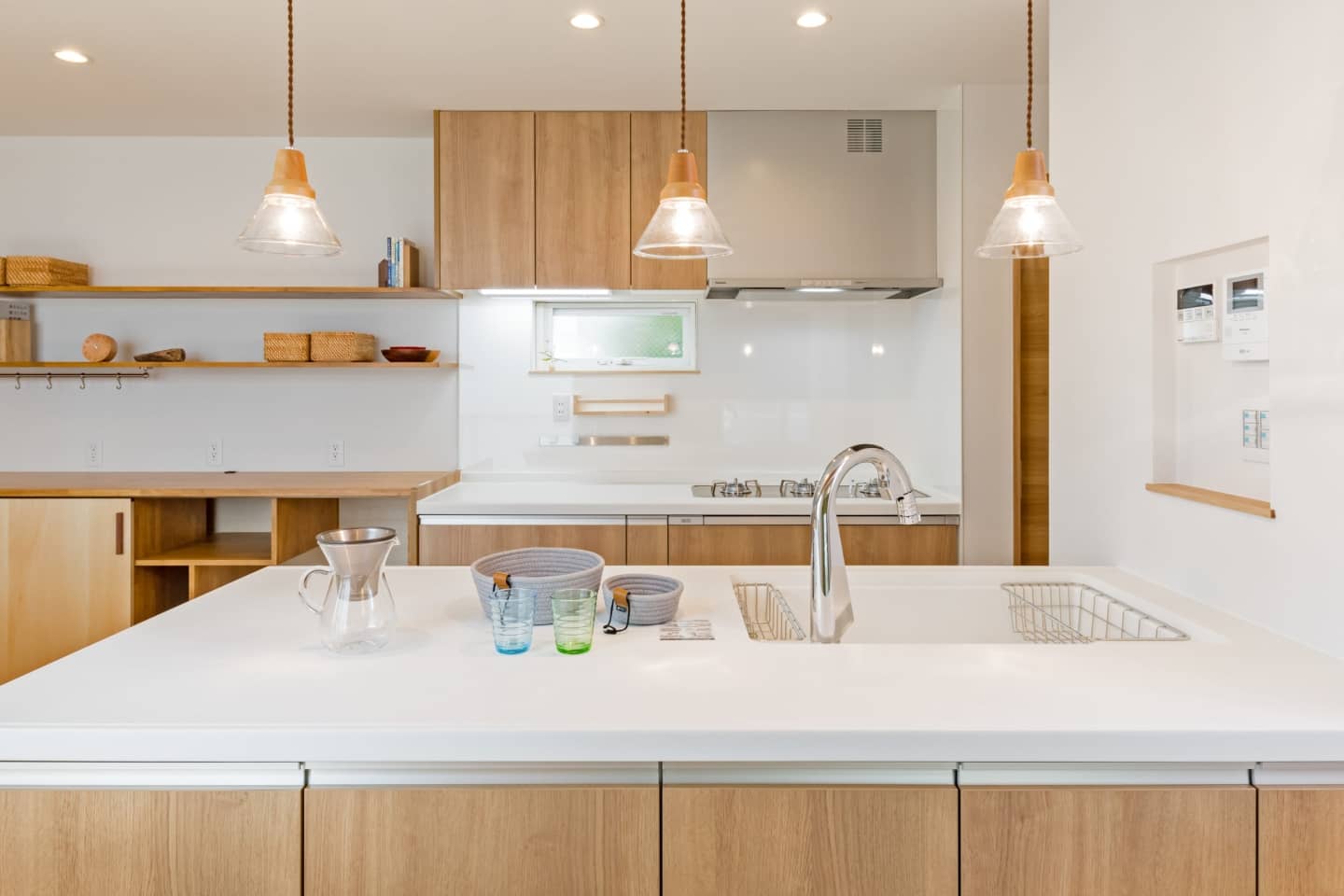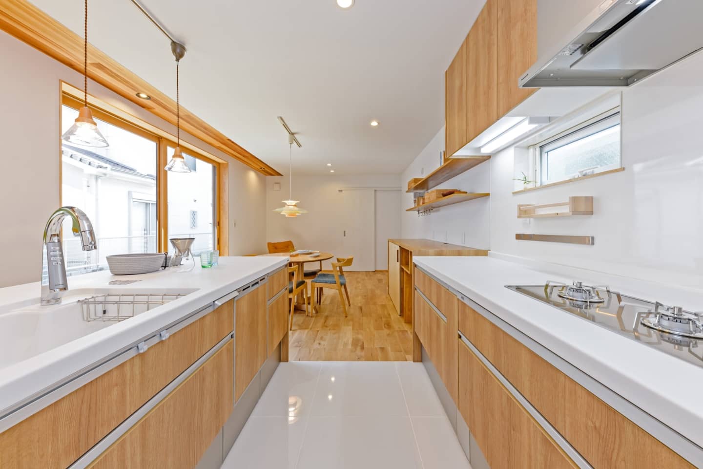 キッチンにもディスプレイ型の収納と隠したいものを収納できるパントリーがあり、こだわりのキッチン用具も使い分けて収納することができます。