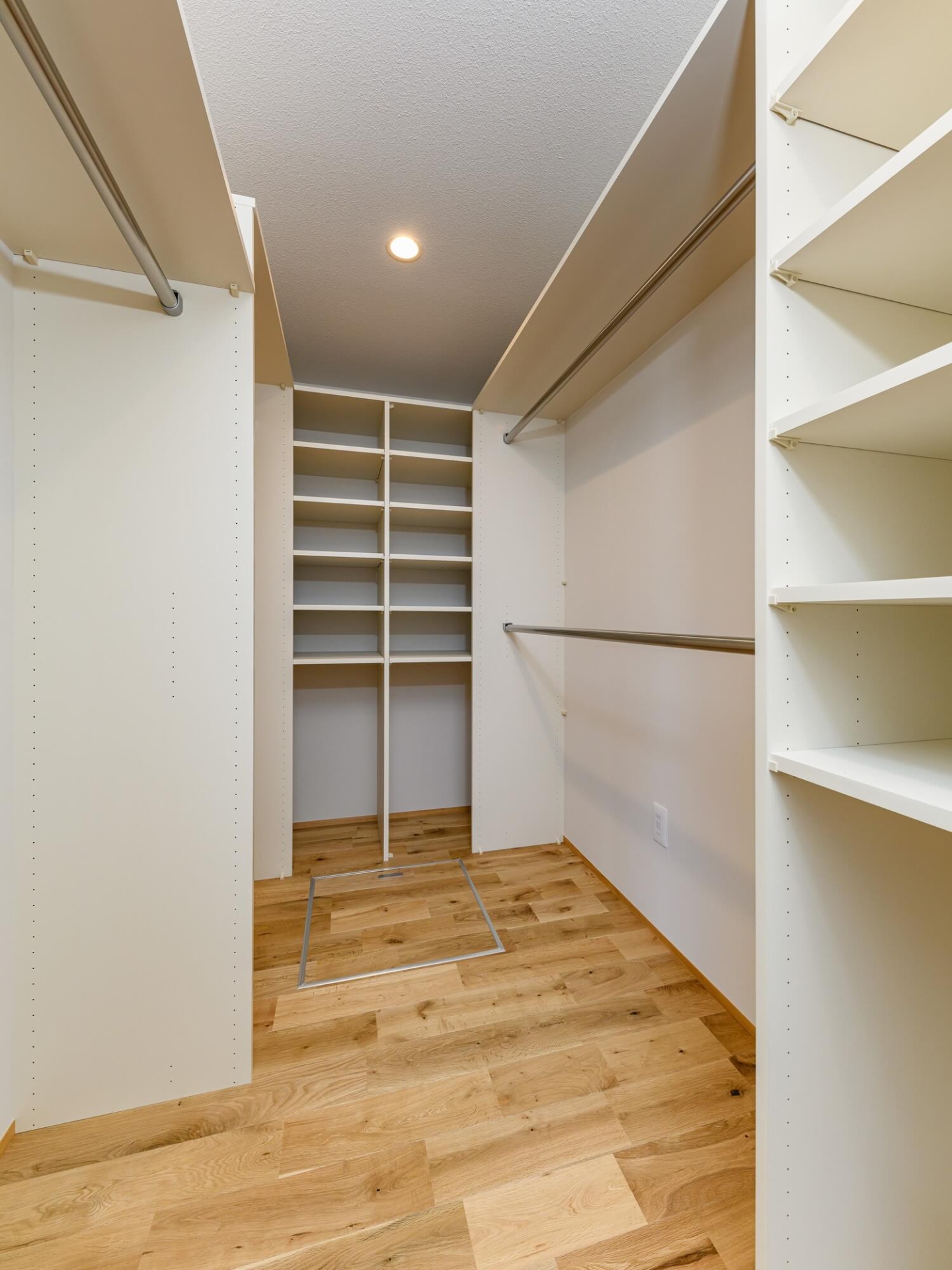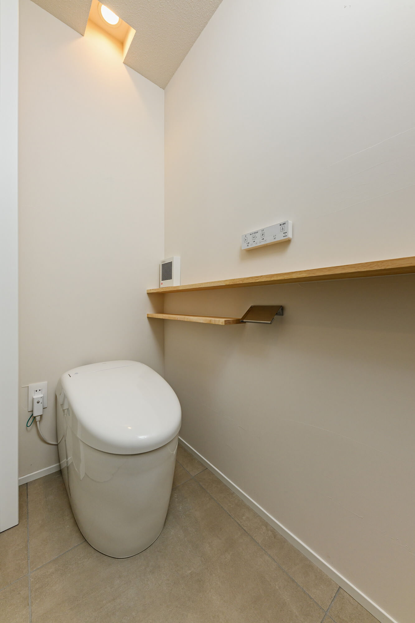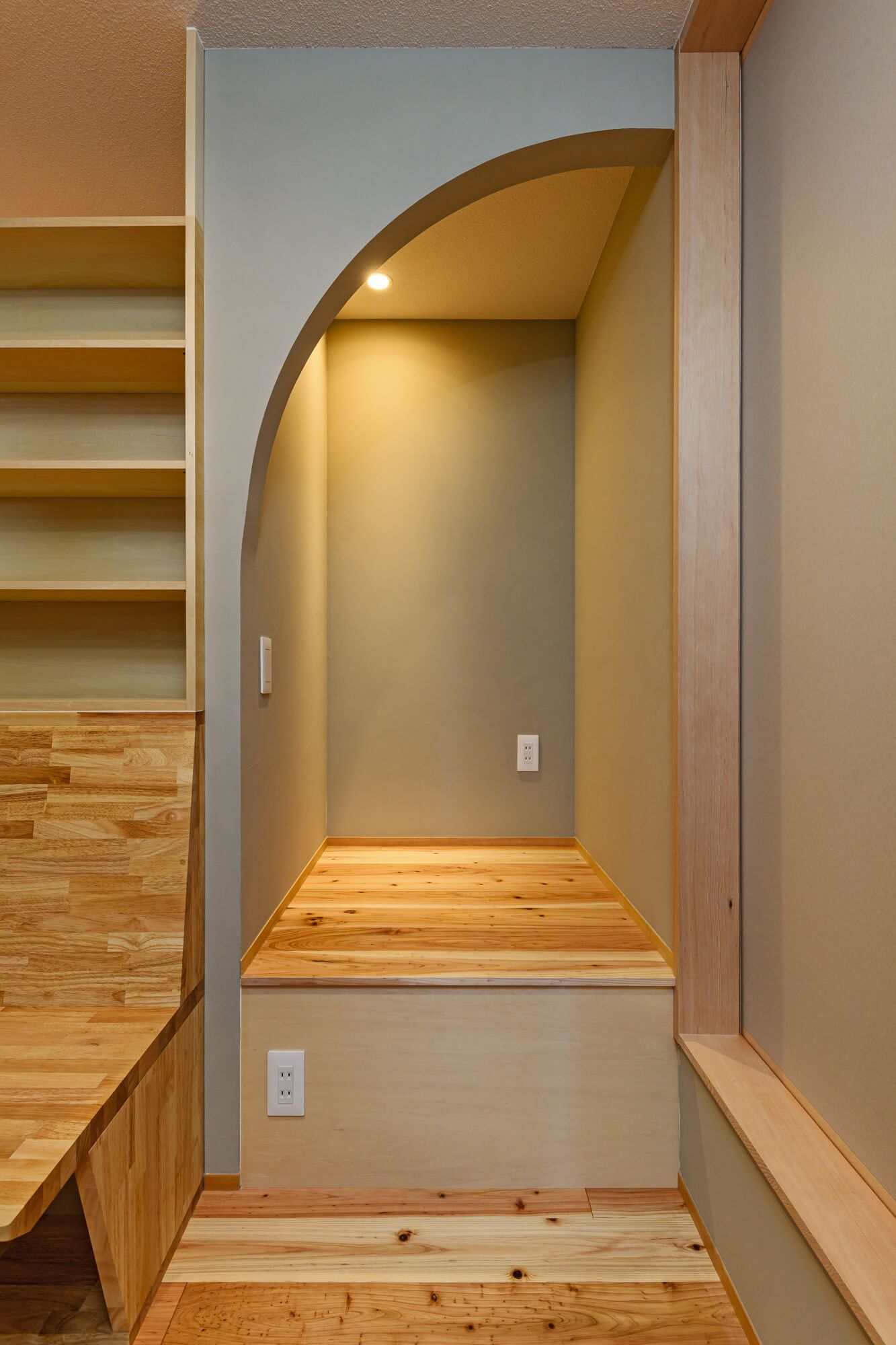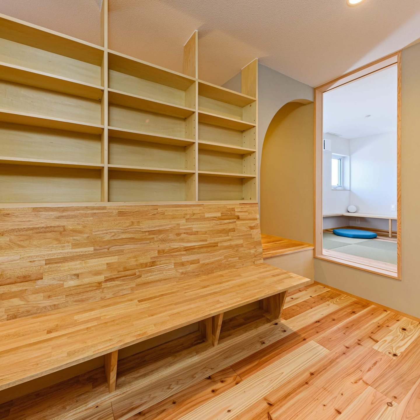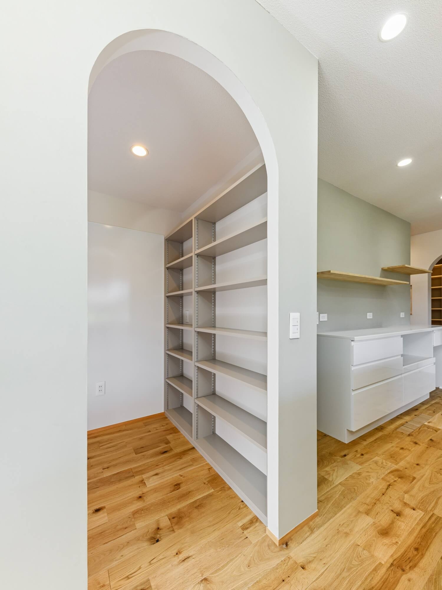 四角くシンプルな間取りのお住まいです。1階は18帖のLDKを中心にファミリークローゼットやパントリーの収納スペースに加え、ゆったり4.5帖の洗濯・脱衣室など数字以上にゆったりとした空間です。2階は寝室や個室以外にご主人さまと奥さまそれぞれ籠れる個室もあり、階段ホールを利用した家族ライブラリー:大きな本棚+小上がりヌックも備え居場所もたっぷり!家族みんながゆったり住まえる素敵なお住まいになりました。