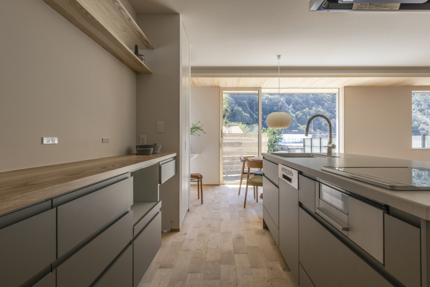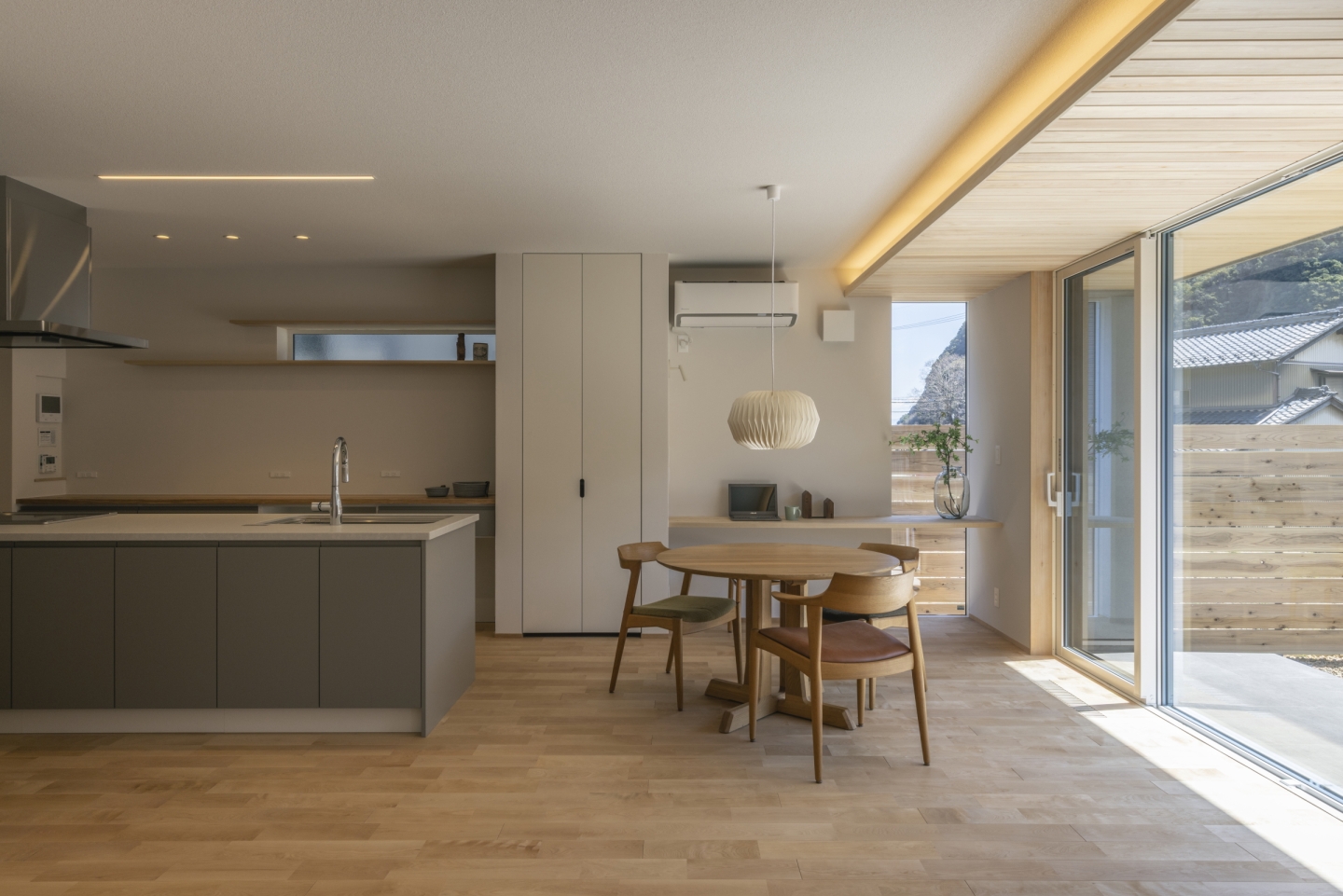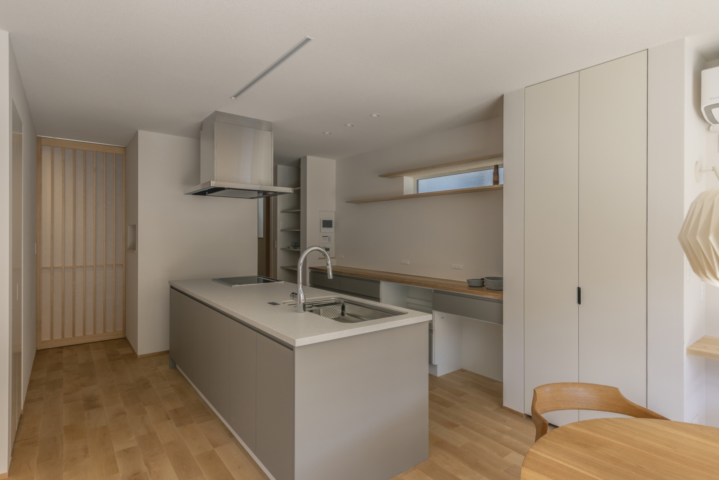 LDKの一角にはスタディコーナーを設け、家族の気配を感じながら過ごせる居場所になりました。