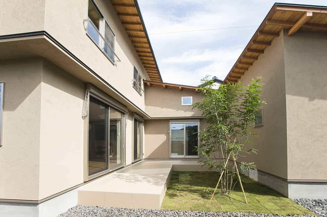 南側の日当たりがよい場所におばあ様の部屋、センターコートを挟んだ場所にリビングという、お互いに気を遣わず、けれども気配は感じられる間取りです。