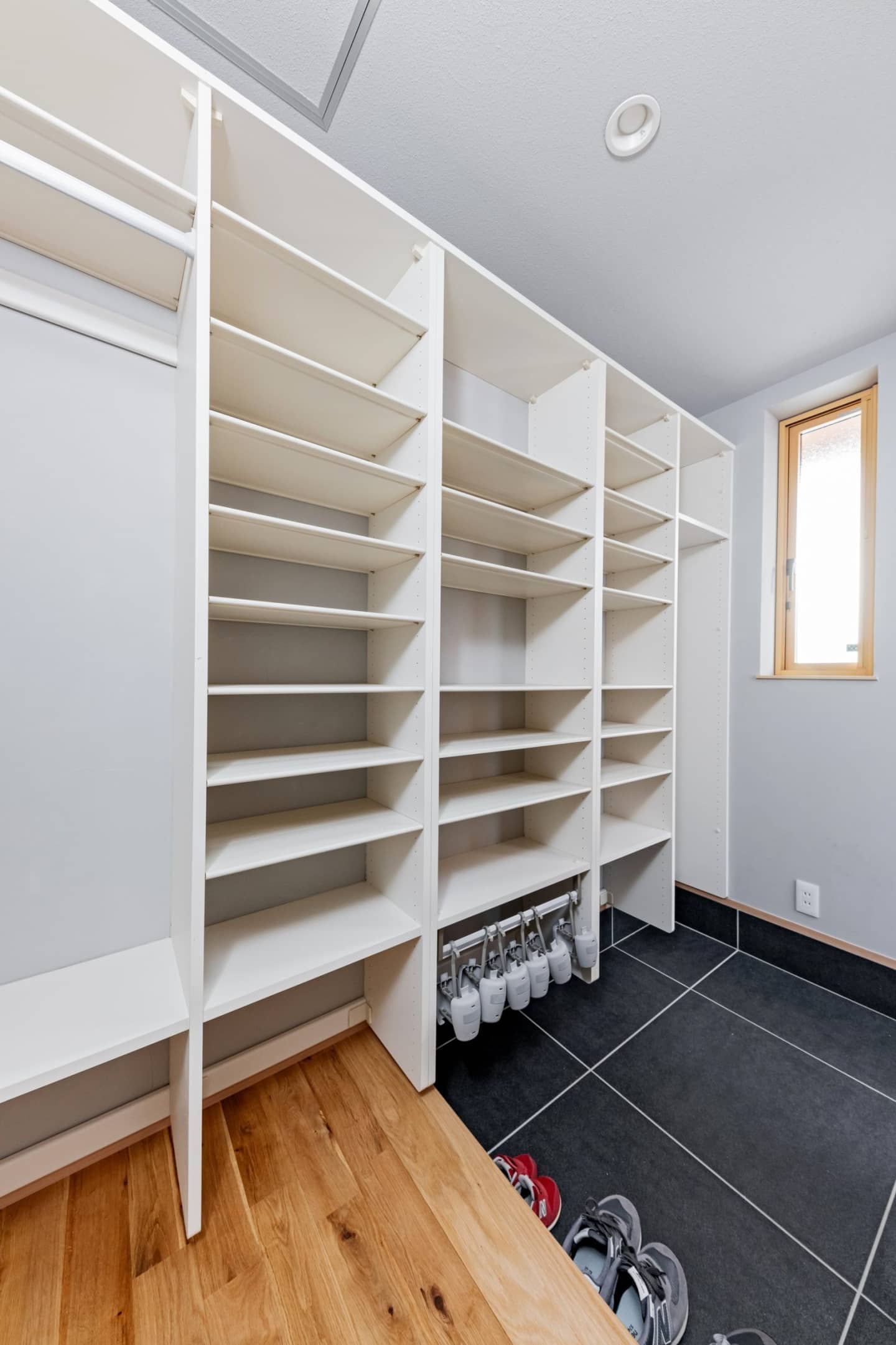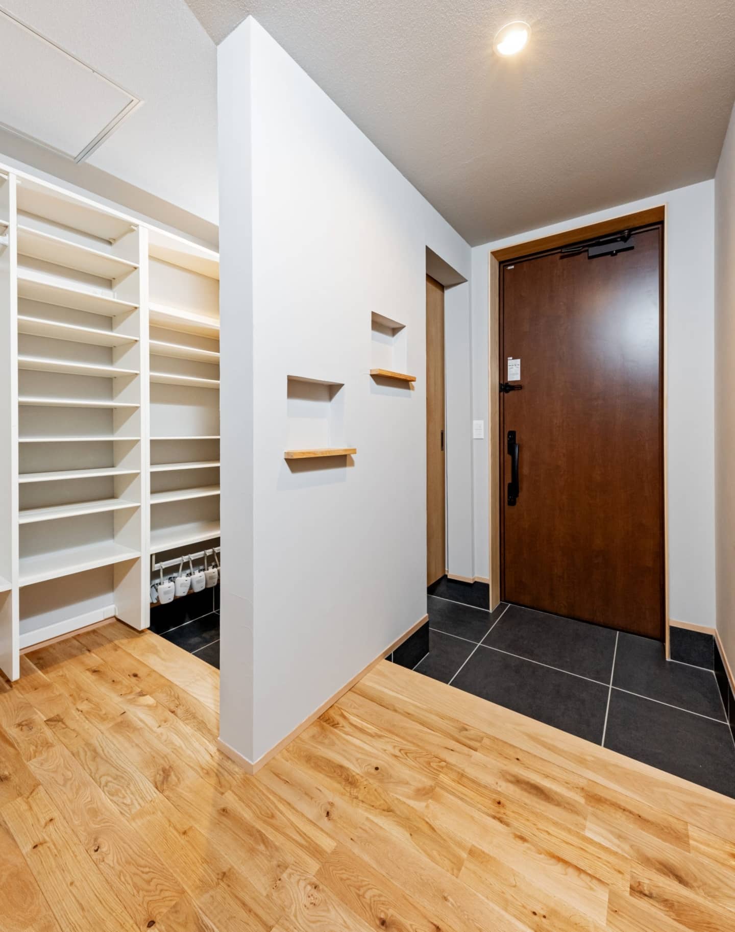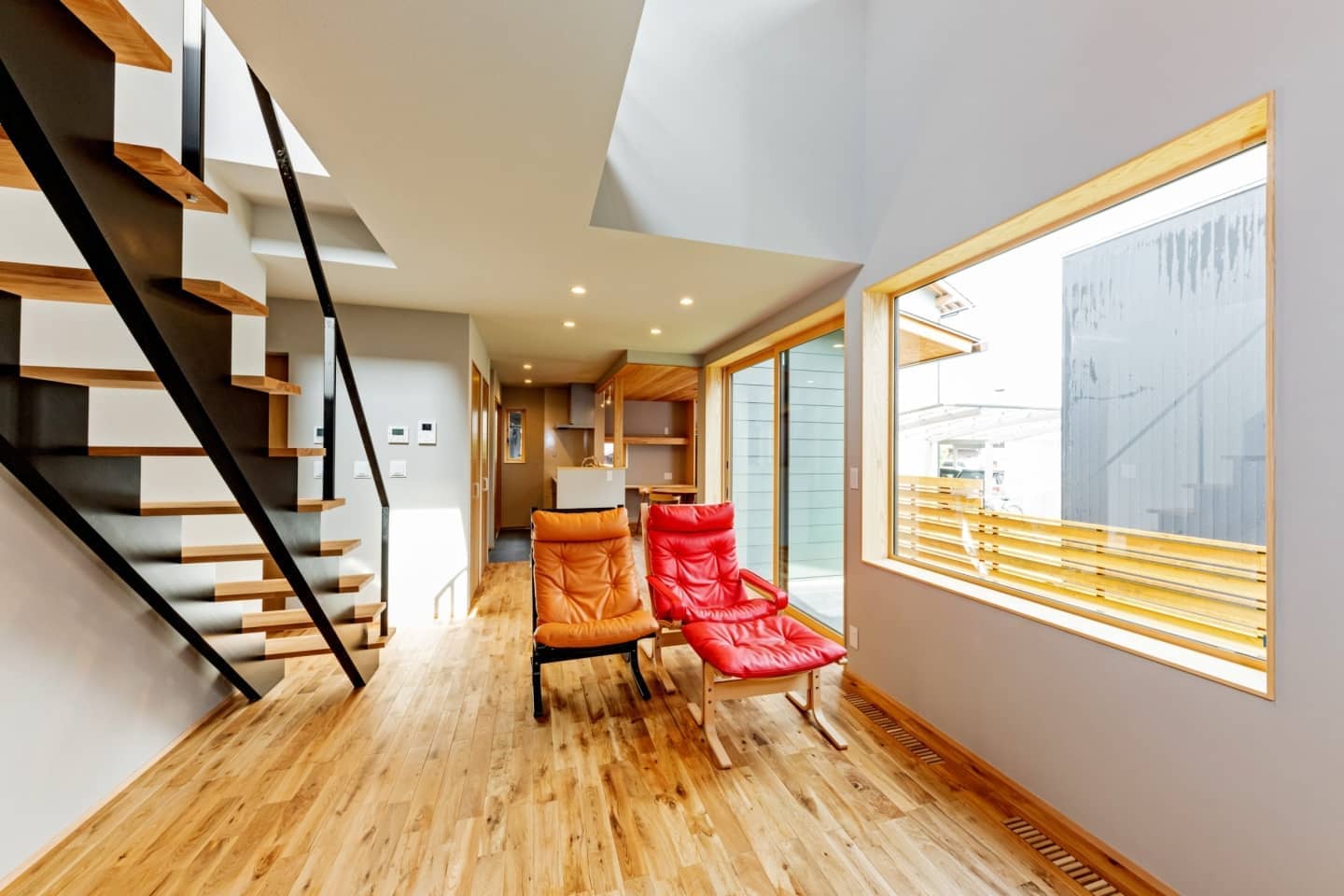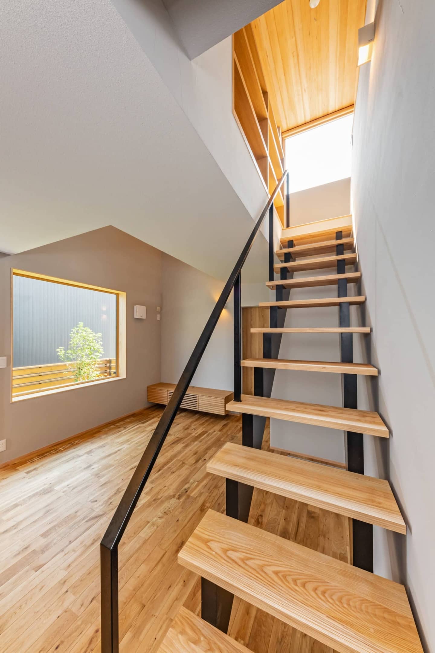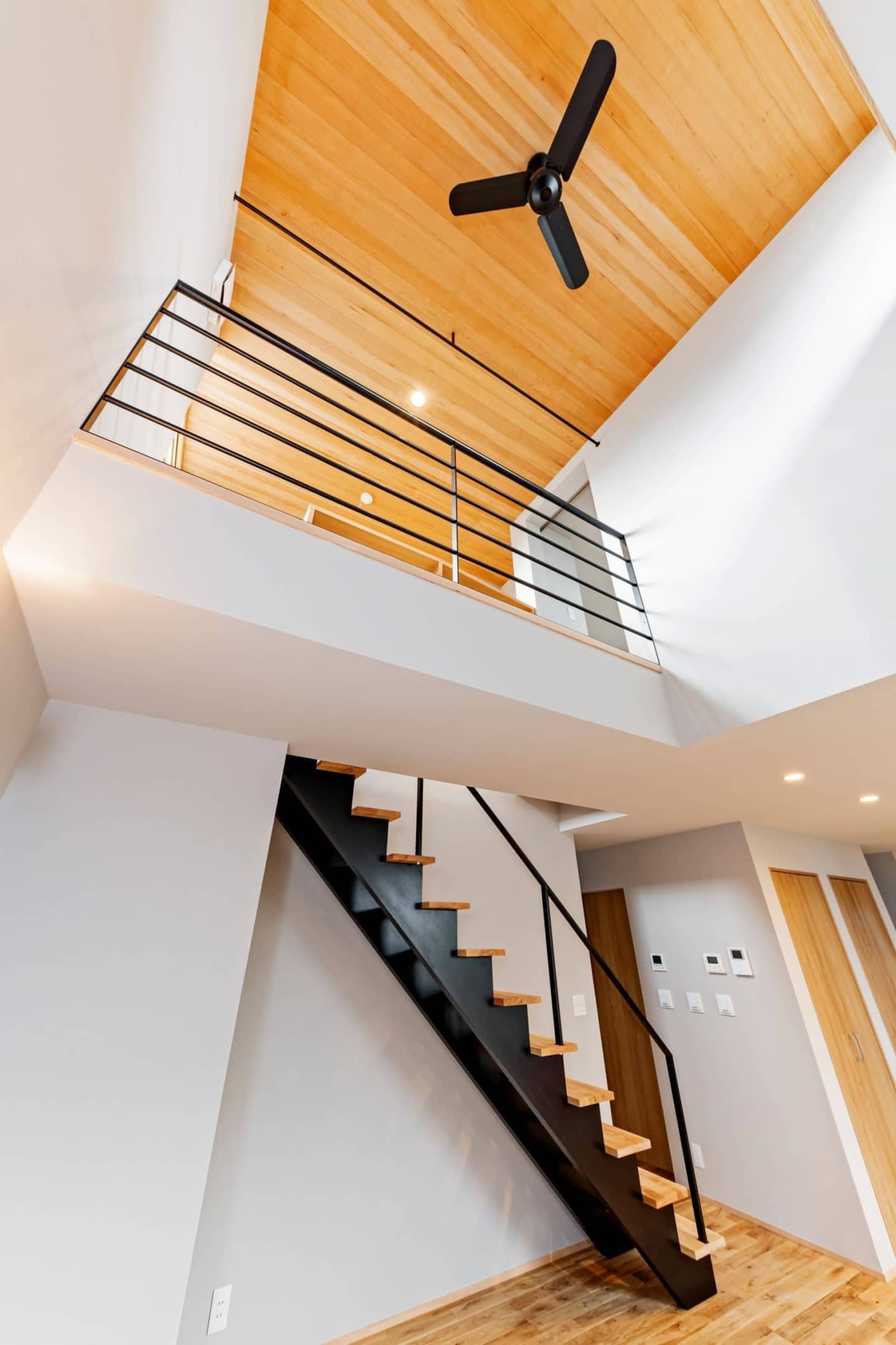 お客様と動線が分かれる人気のダブル玄関、LDKの階段はオープンで2階からも明かりが差し込みます。