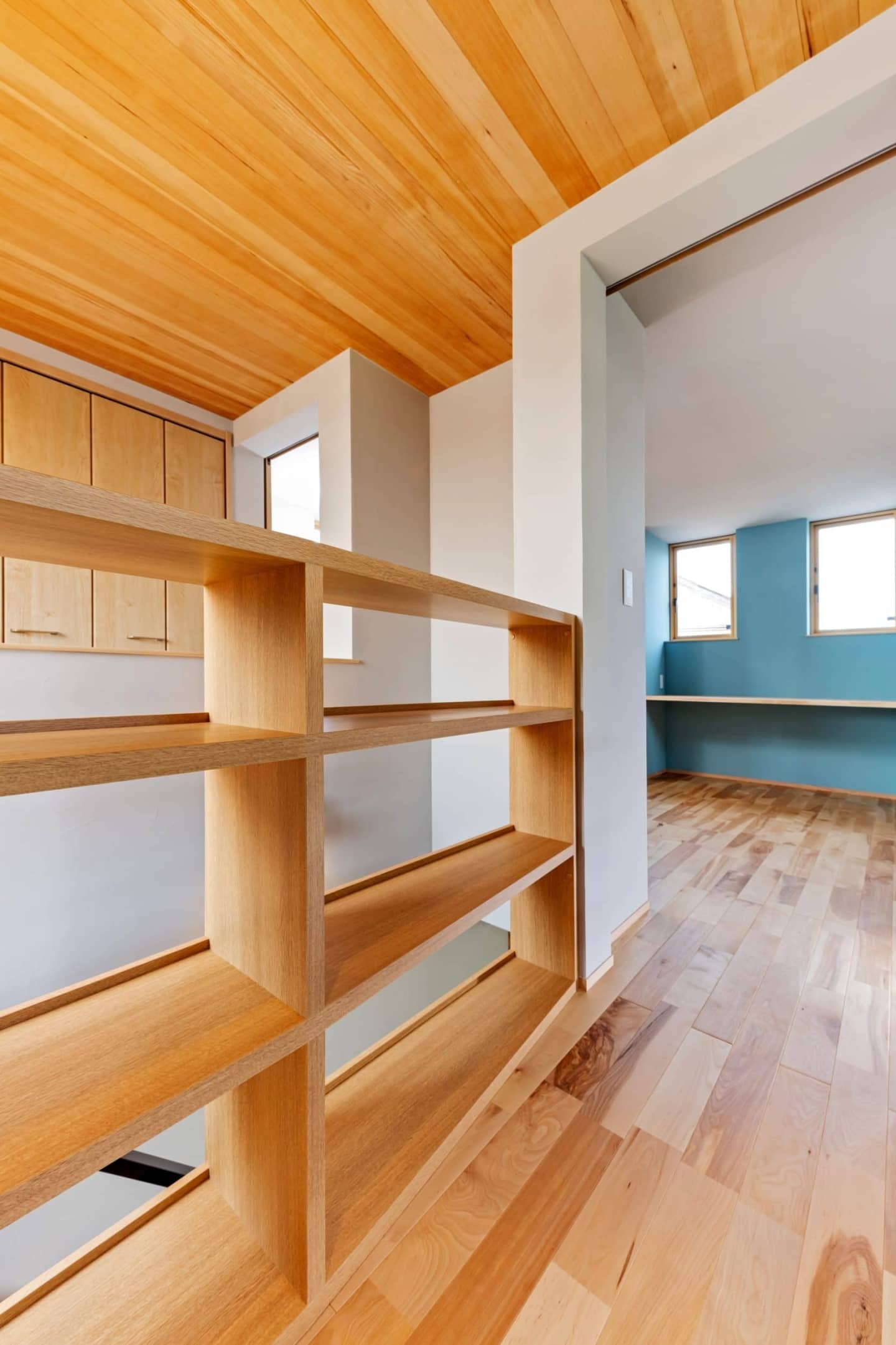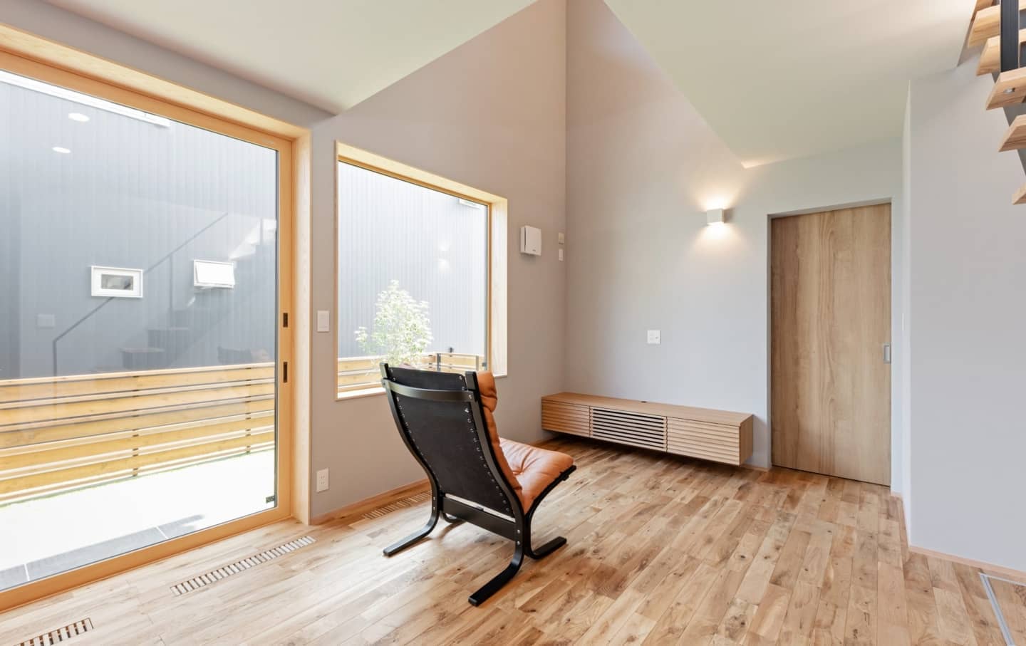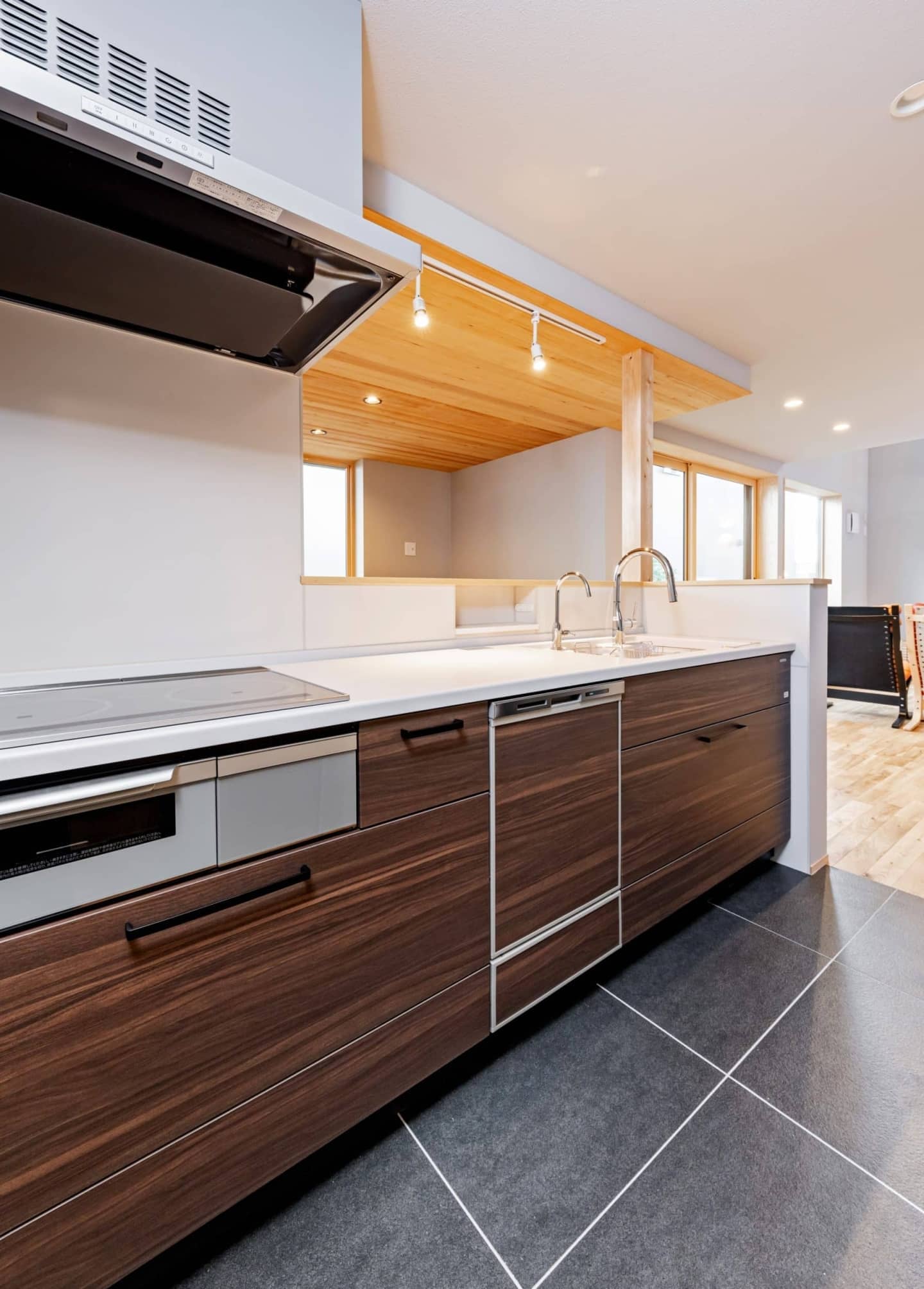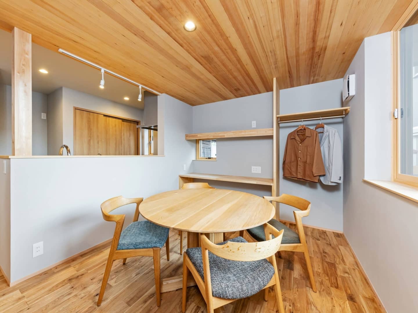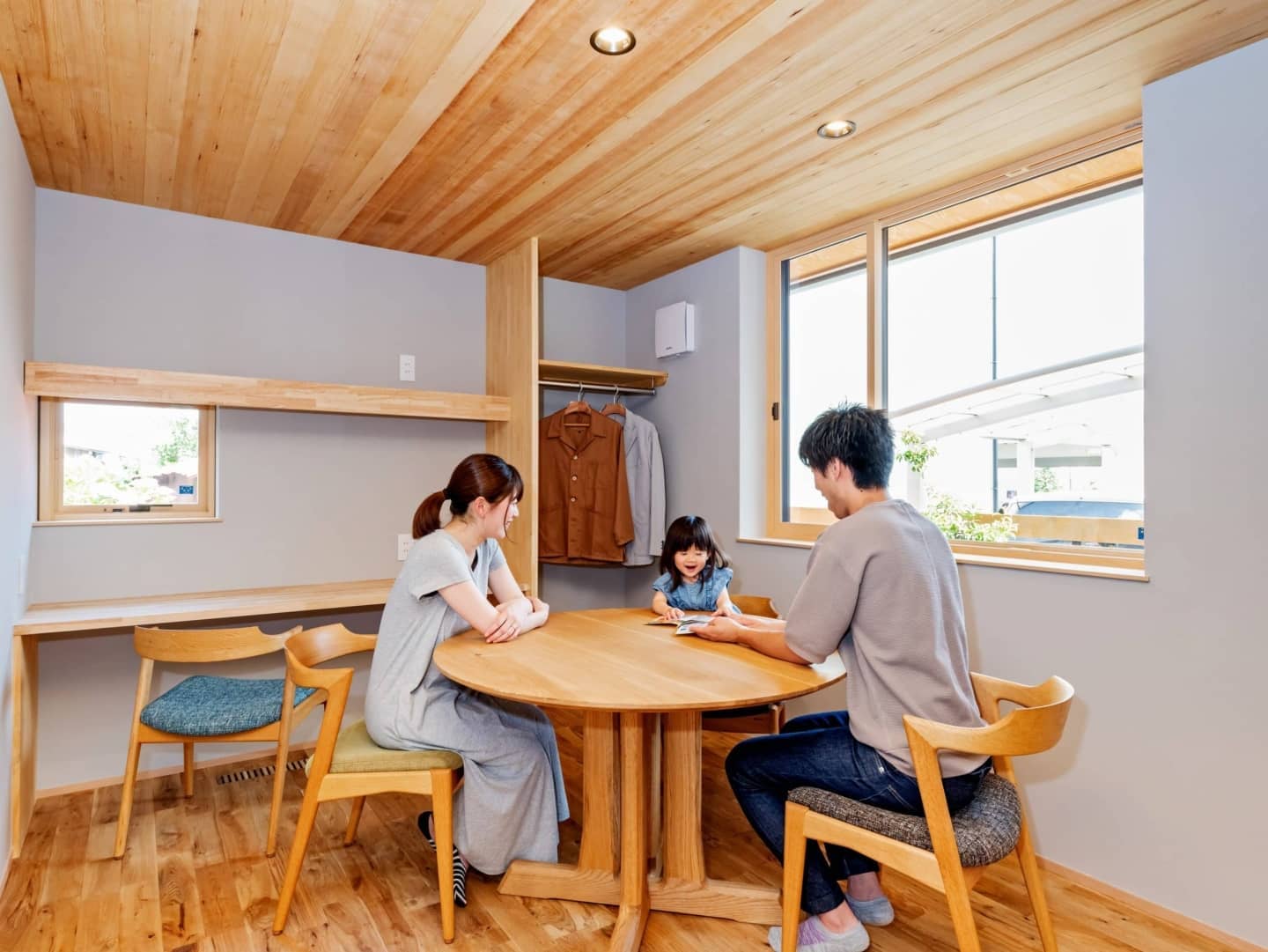 ダイニングは天井を低く、板張りとして、落ち着いた空間で家族団らんできます。